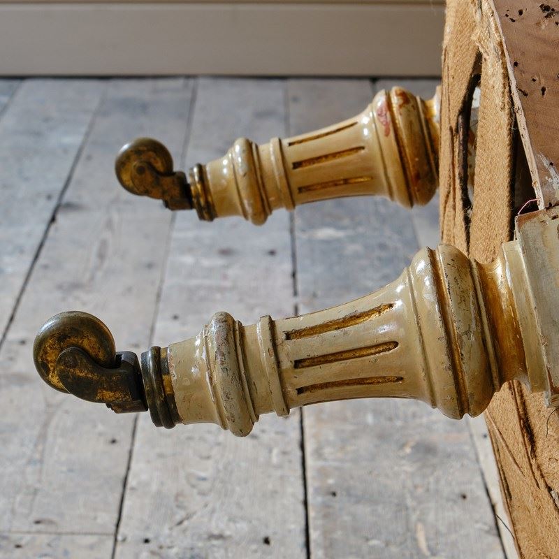 A good quality small 19th century slipper chair. Raised on white painted and gilt legs and the original casters.