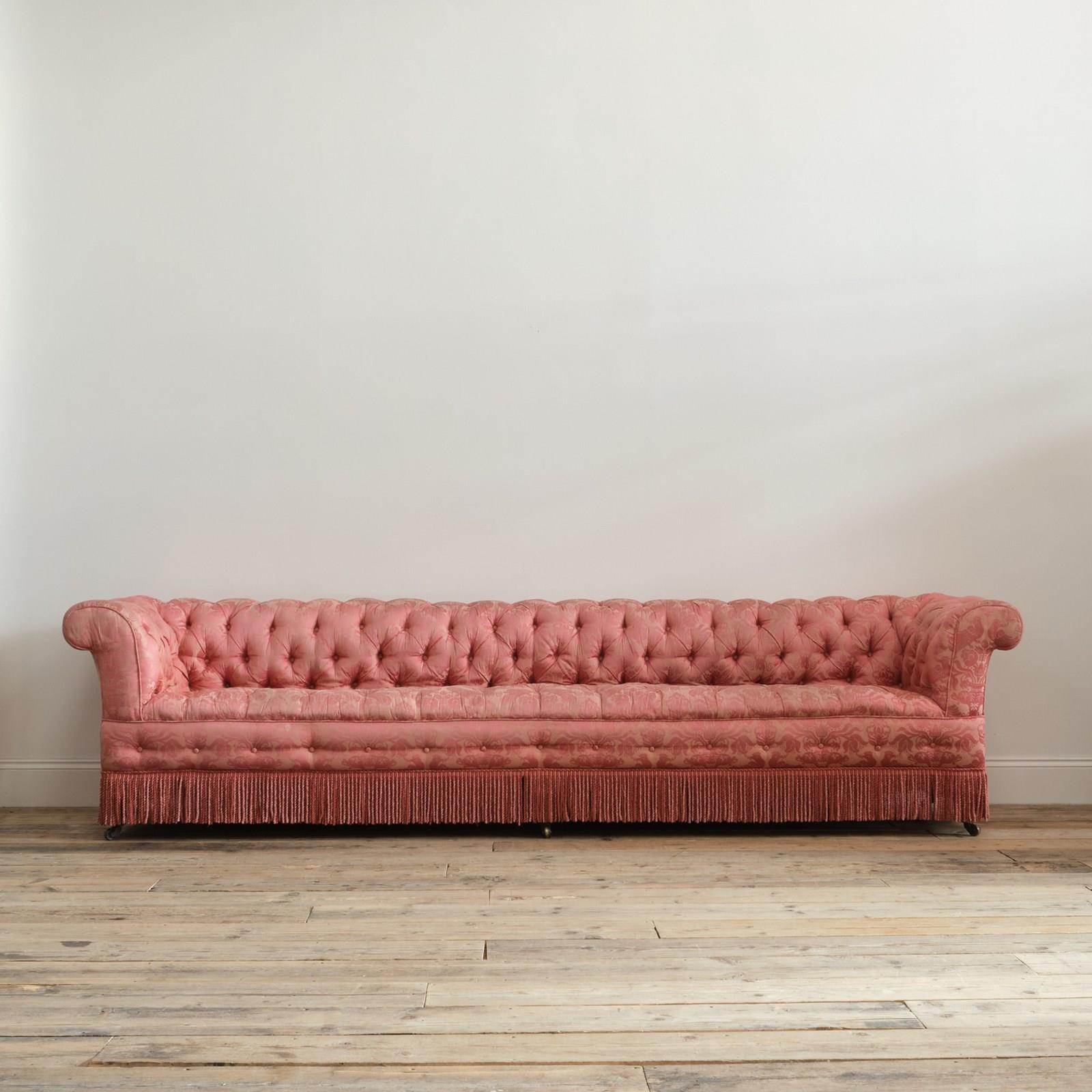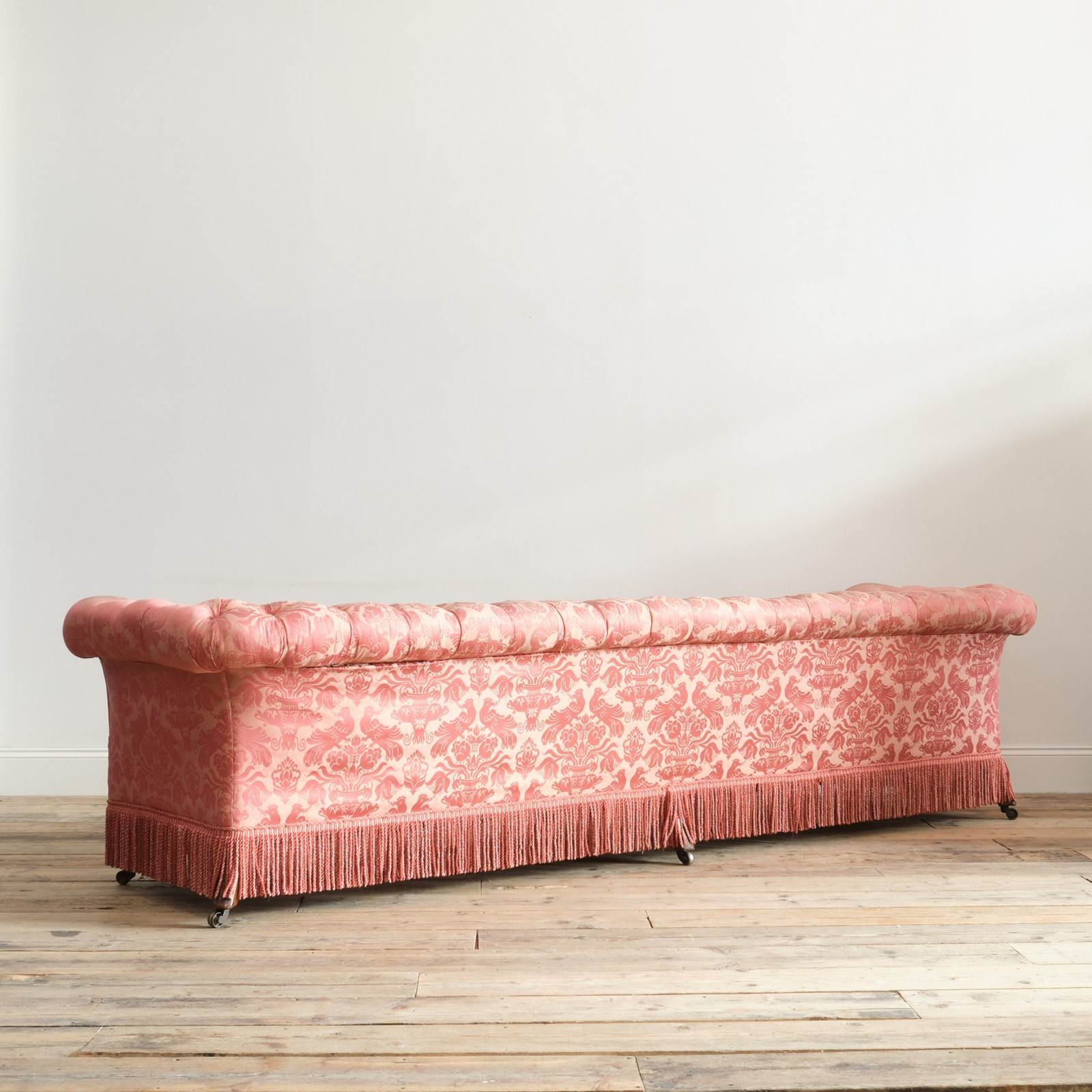 A highly unusual and impressive 19th century chesterfield sofa of monumental country house proportions. At over 3 meters wide this sofa is likely a one off bespoke made piece intended for a specific location is a large country house. English c1870