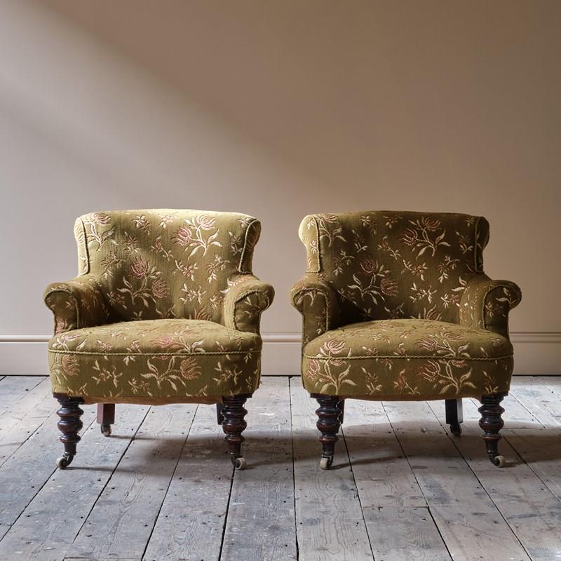 A Pair of compact Country House Tub Chairs. The highly versatile size is ideal for alcoves or bedroom/nursery setting.