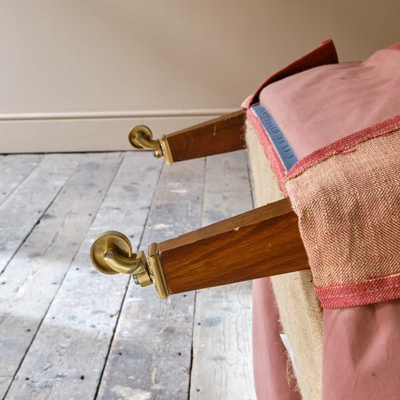 A pair of Howard and sons style 'Pickwell' model armchairs. Raised on square tapered beech legs and brass casters. Of recent manufacture and of the quality and materials of George smith and Howard chairs.