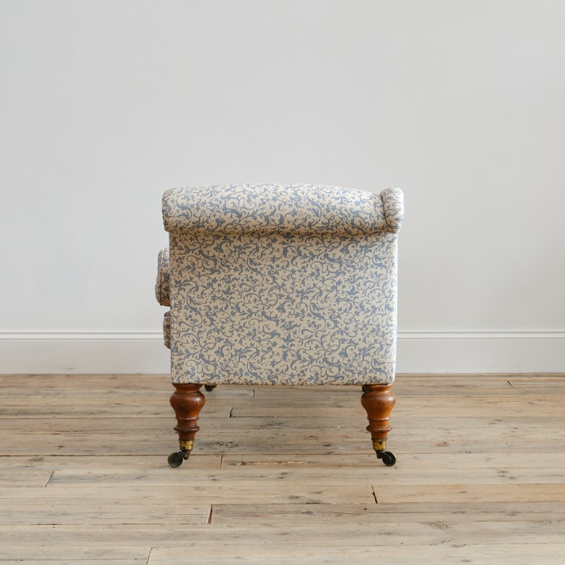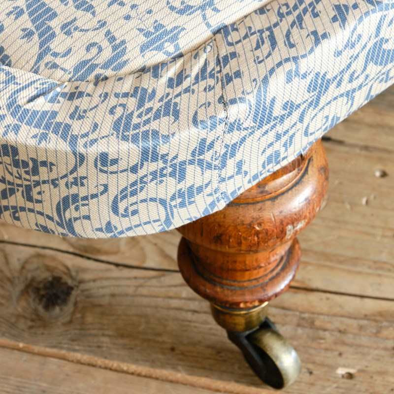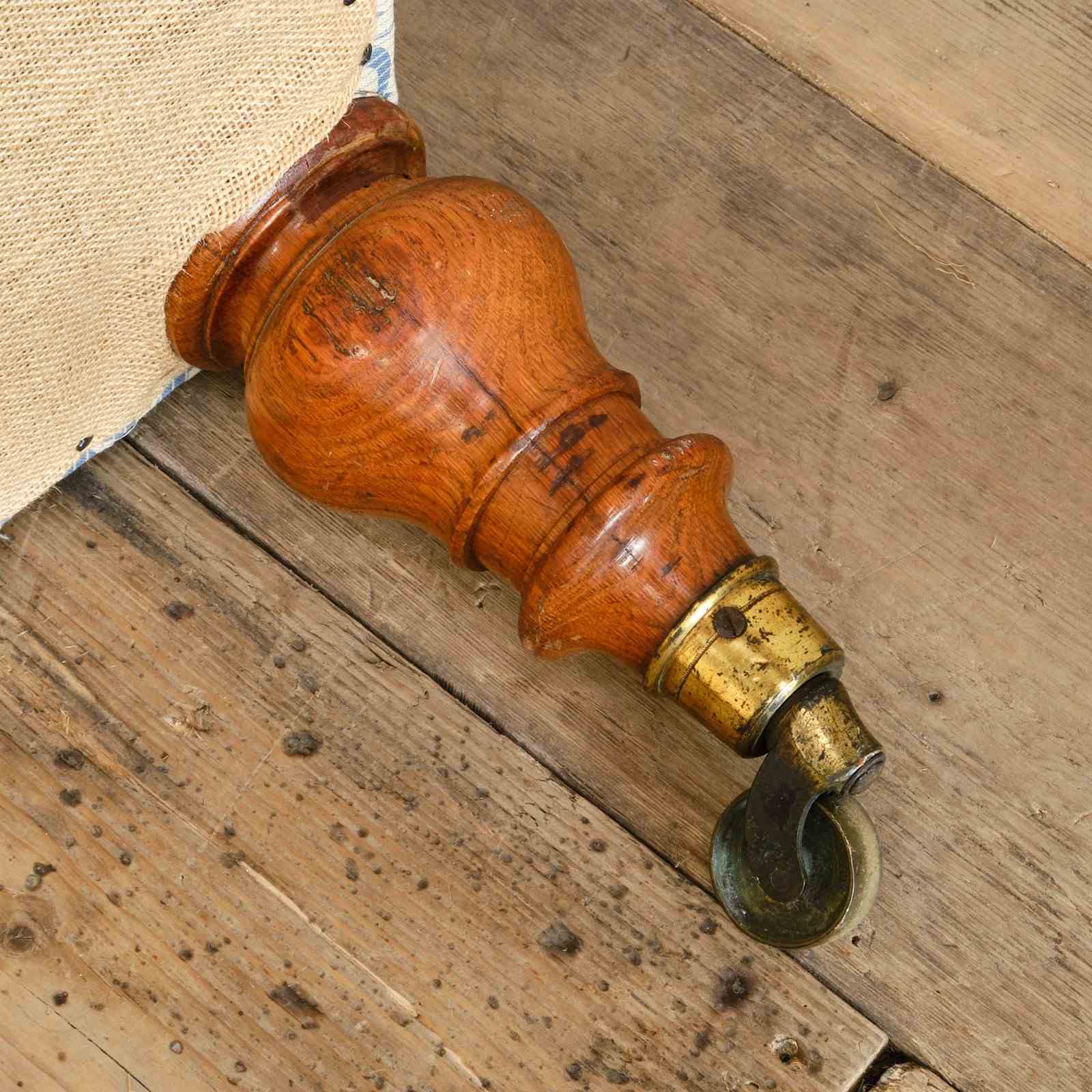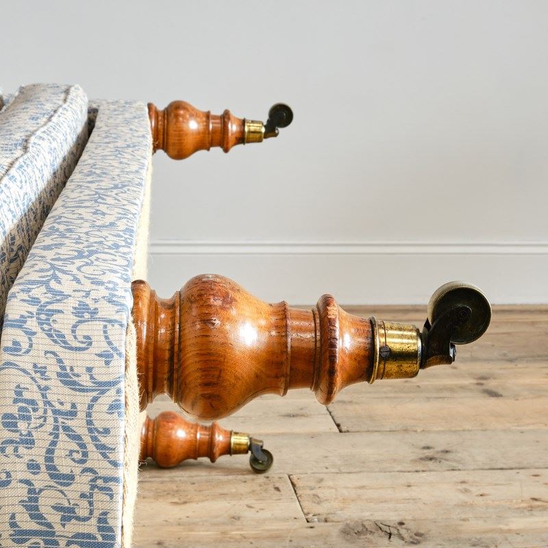 An early 19th century Regency period chaise lounge. Raised on 4 thick turned oak legs with the original Gilt brass Cope & Collinson brass casters. Retaining its original fillings and horse hair filled squab cushions. English c 1830-40 Attributed to Holland & Sons