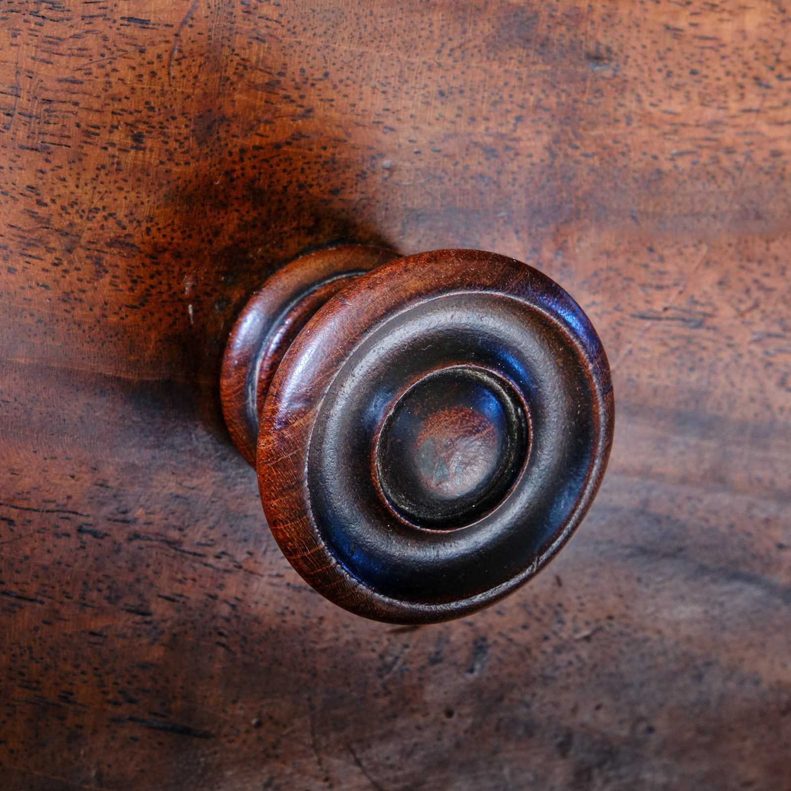 A single deep, long drawer with two decorative wooden knobs.