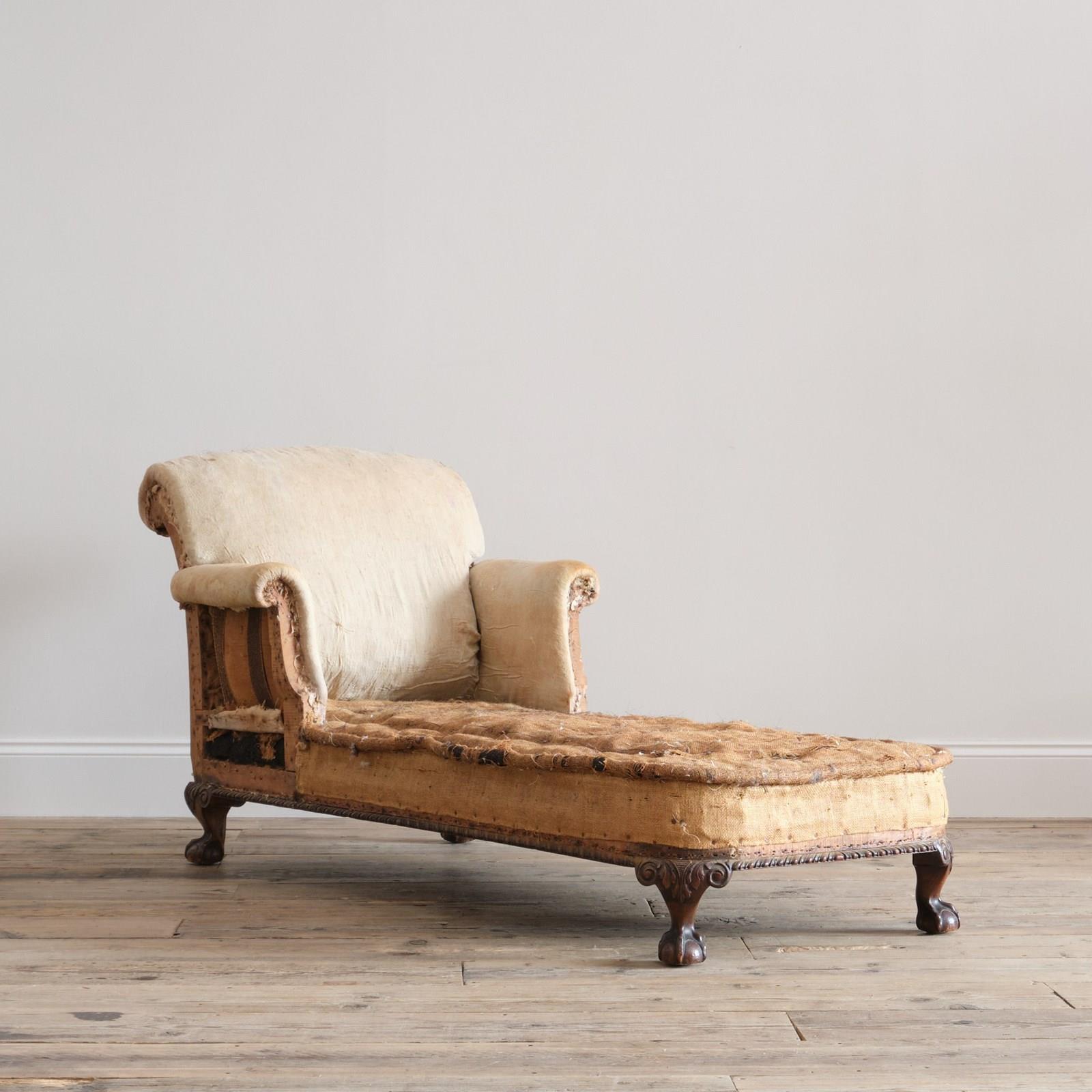 A good quality early 20th century country house scroll arm daybed. Raised on 4 short ball and claw carved legs.