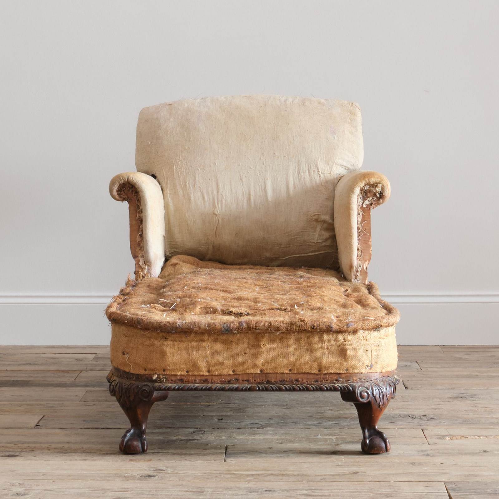 Structurally in good solid order and requiring upholstery and a feather seat cushion.