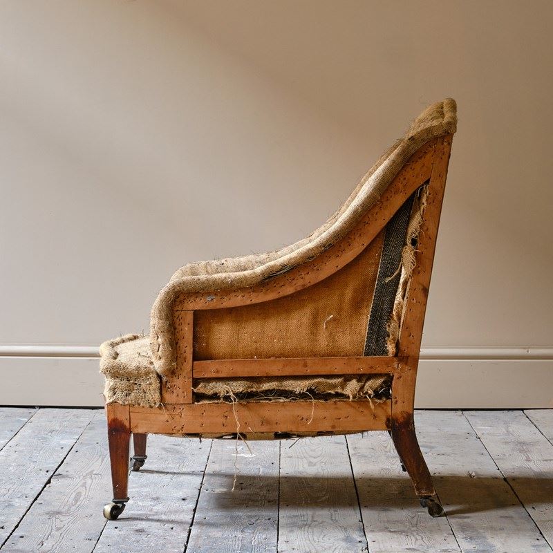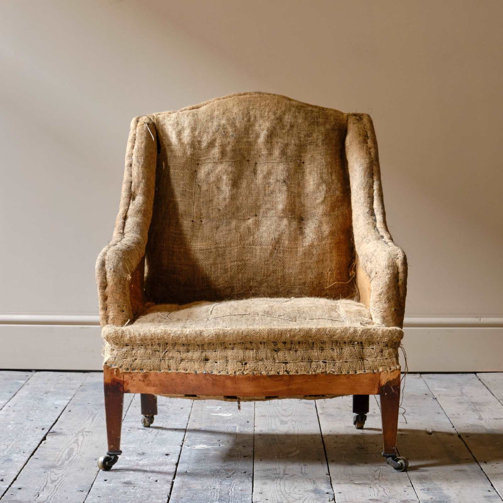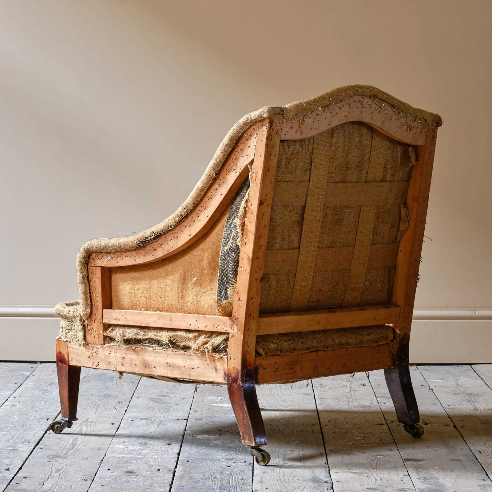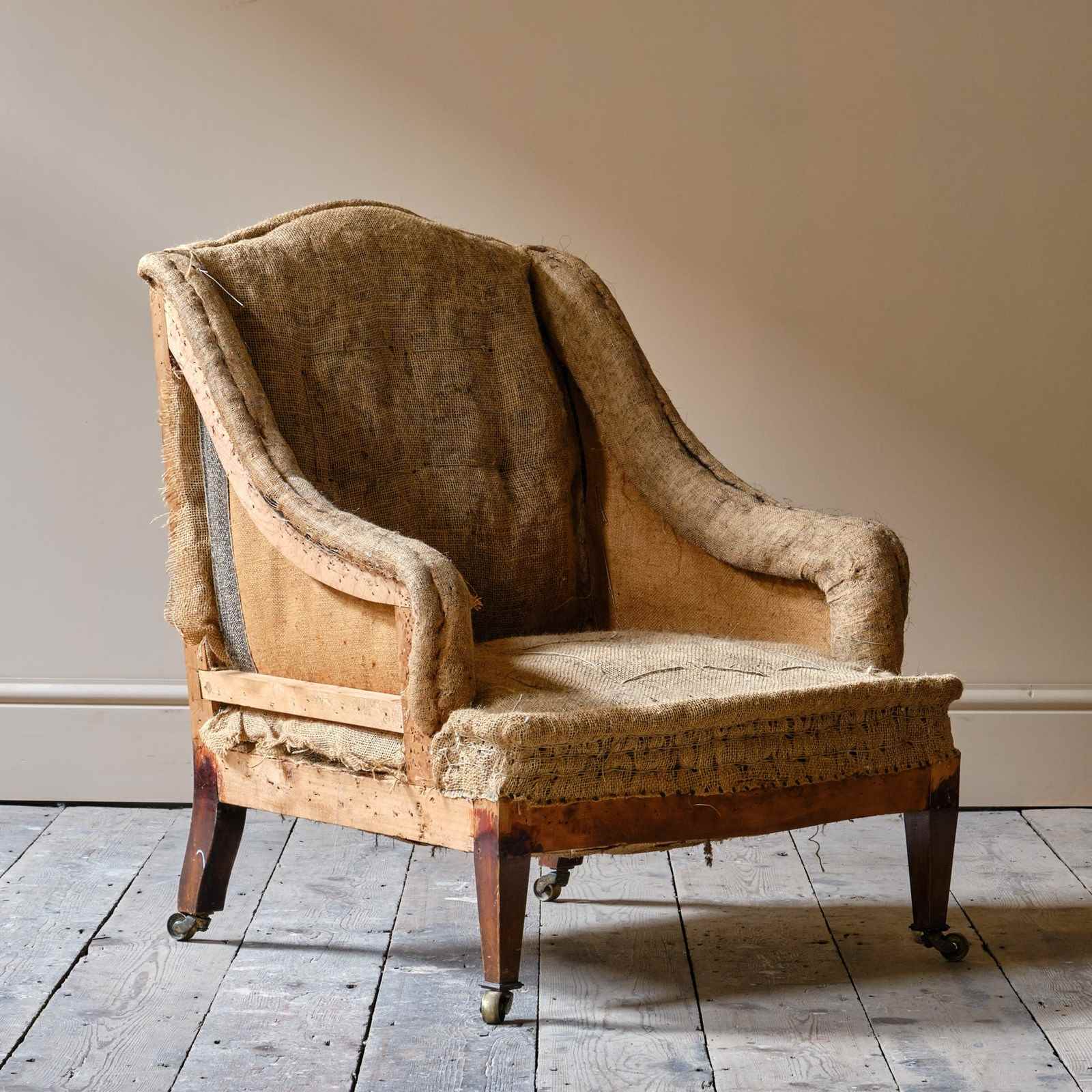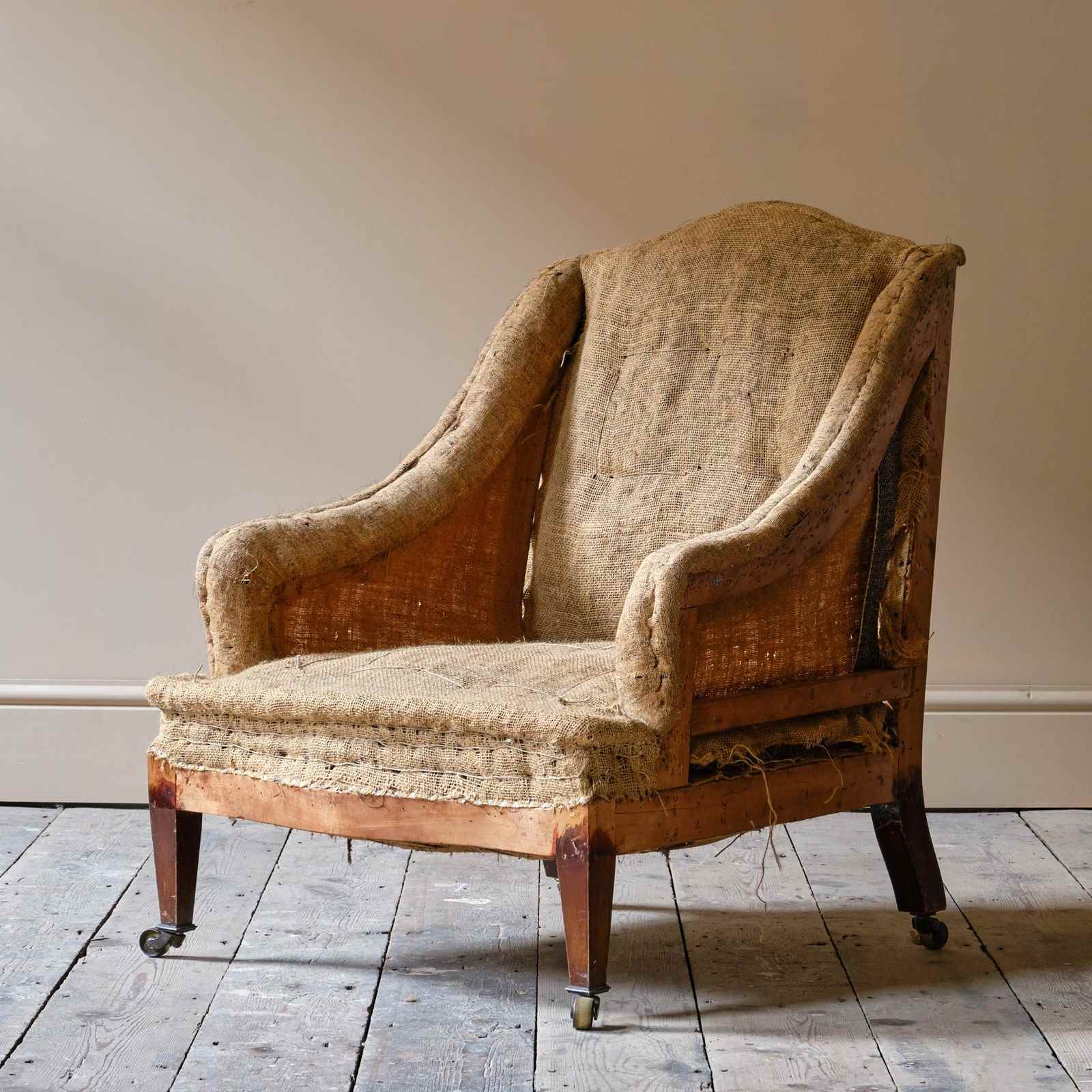 A good little c1900 armchair raised on square tapered legs and the original brass casters.