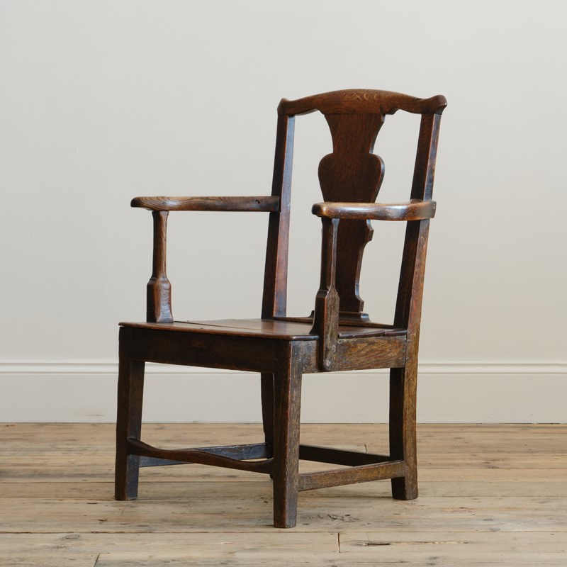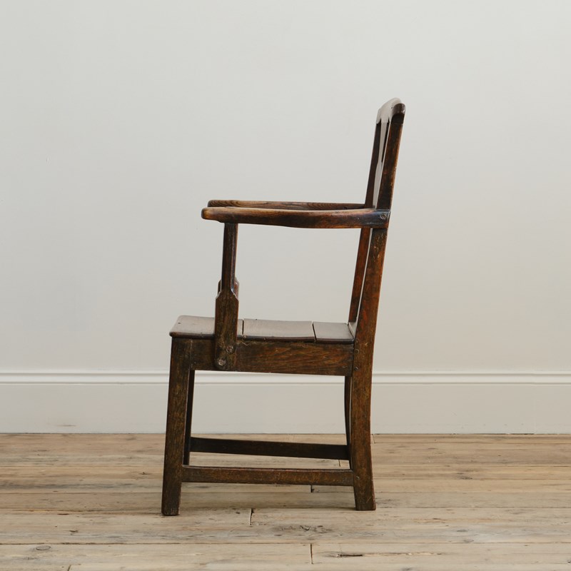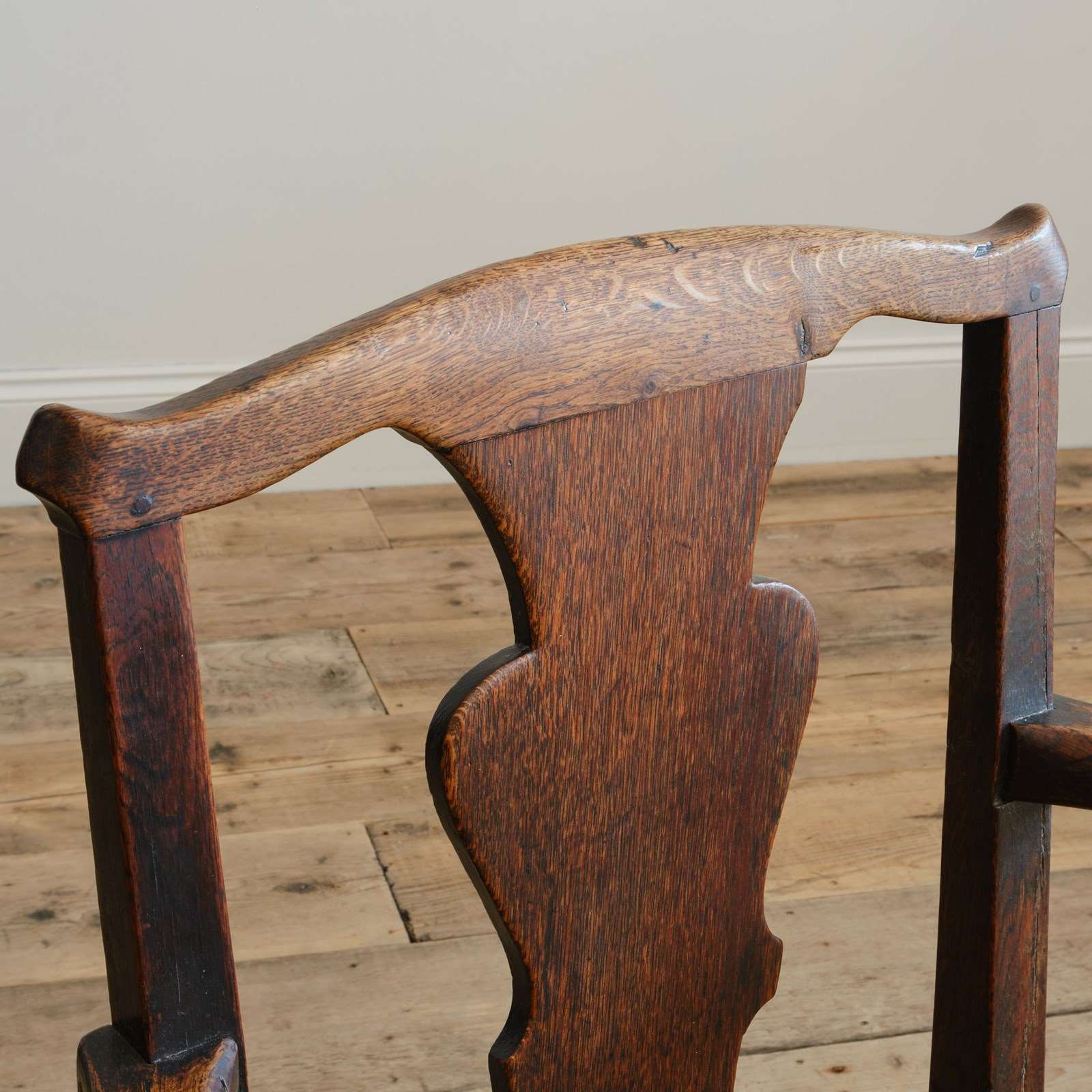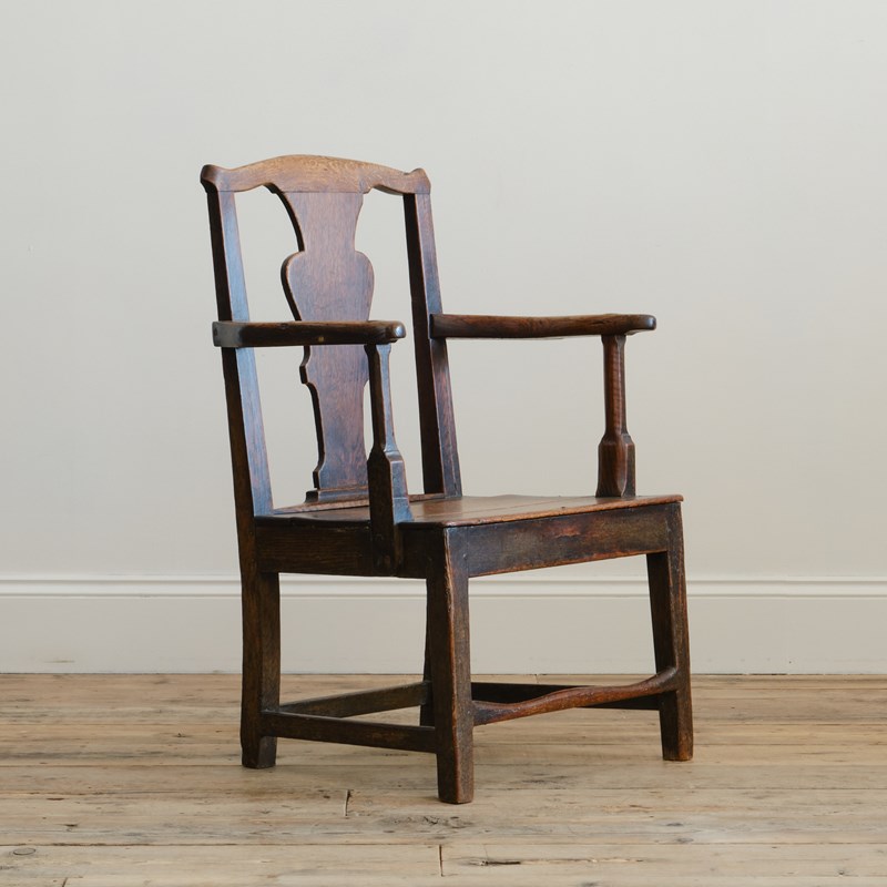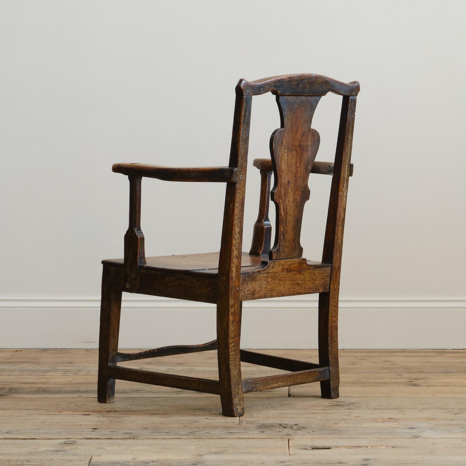 A nice and simple Georgian splat back armchair in oak with plenty of patina and remnants of its original painted finish.