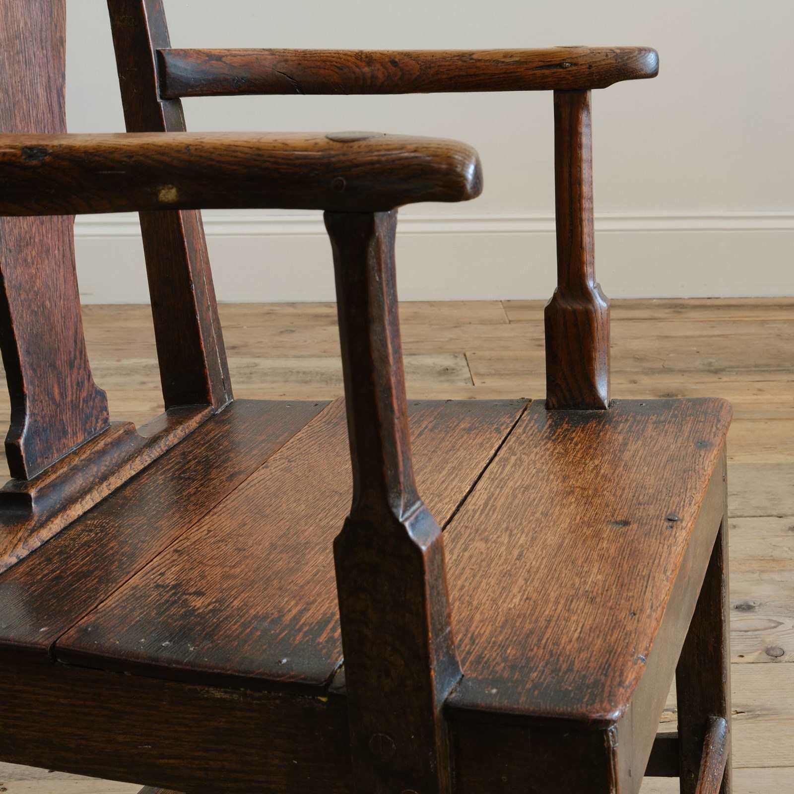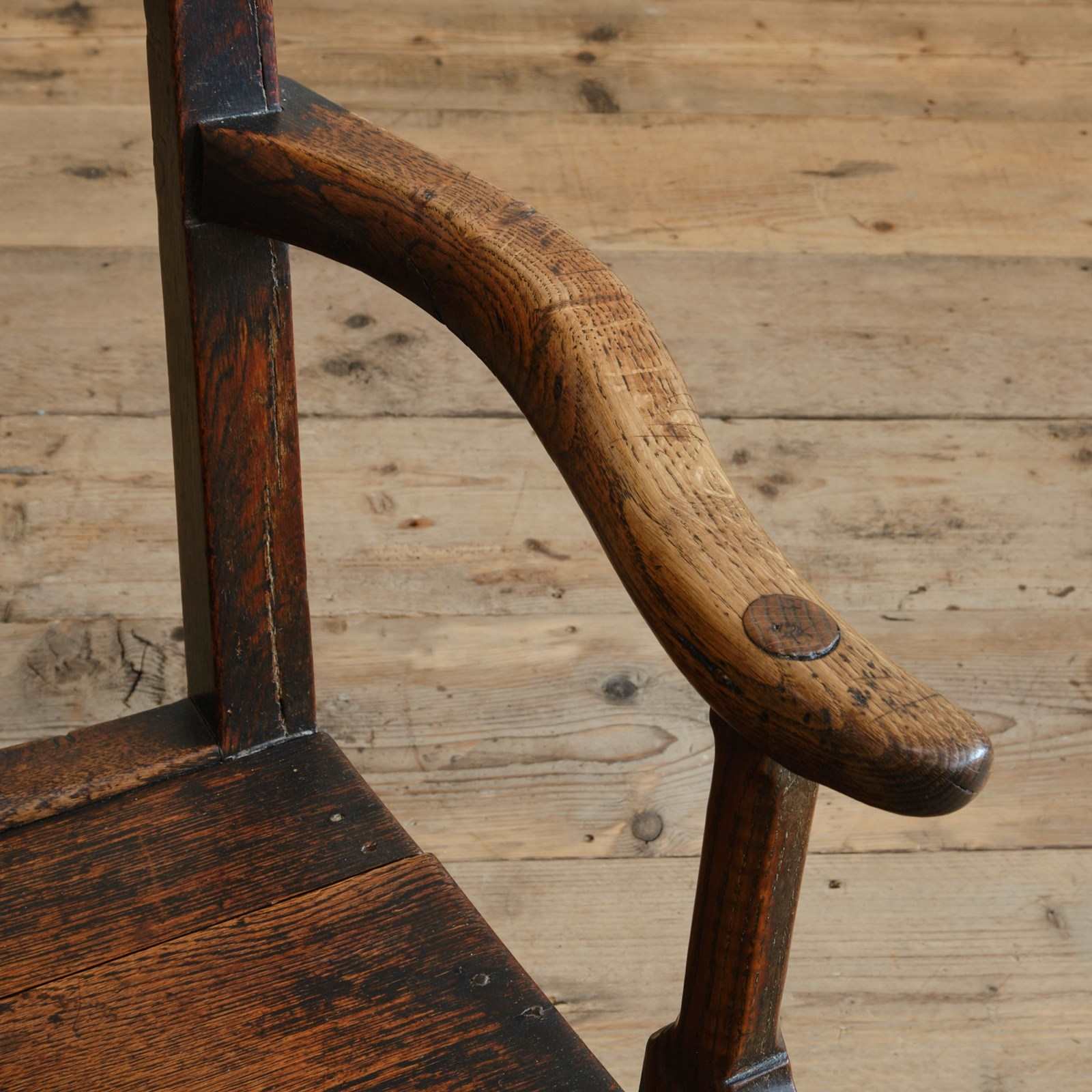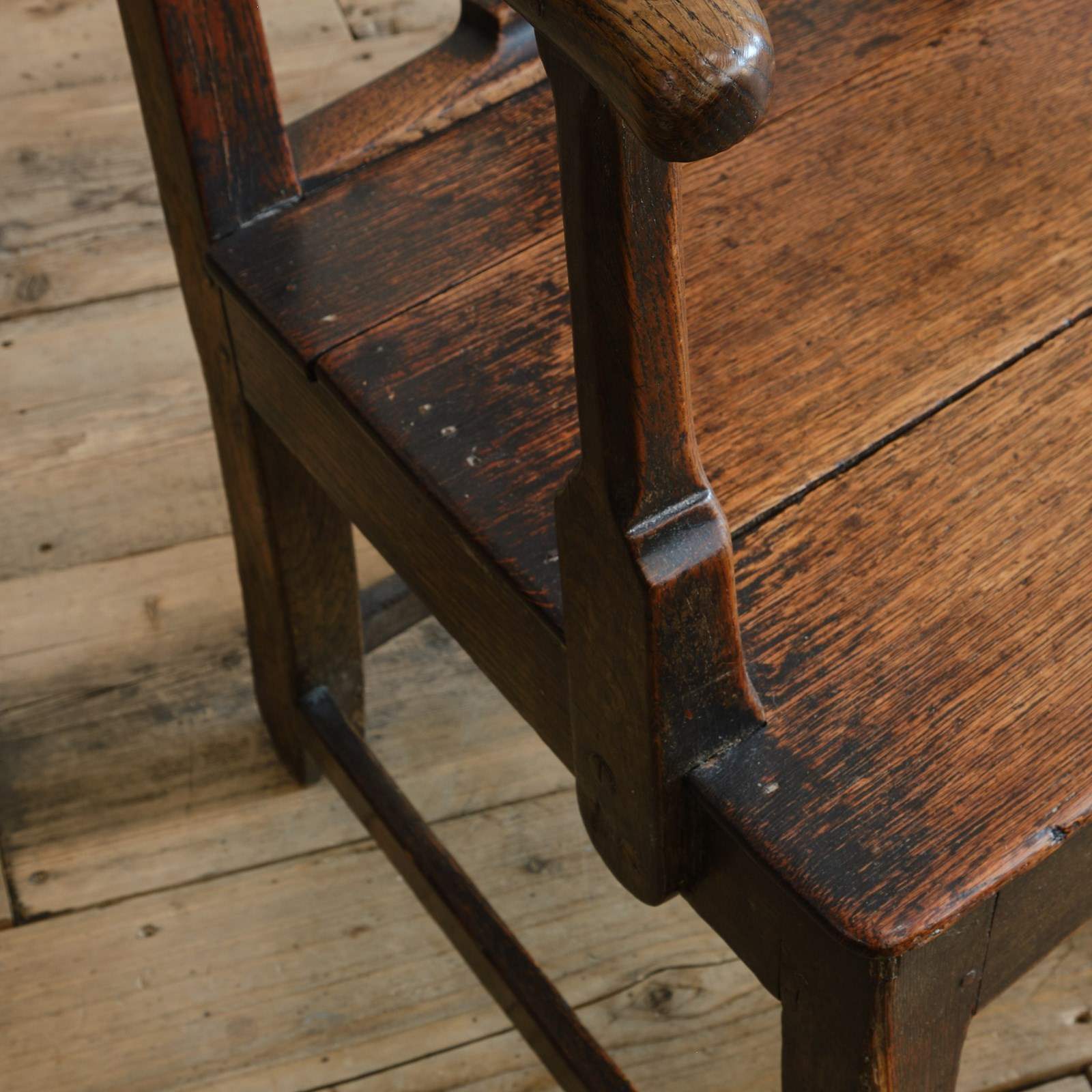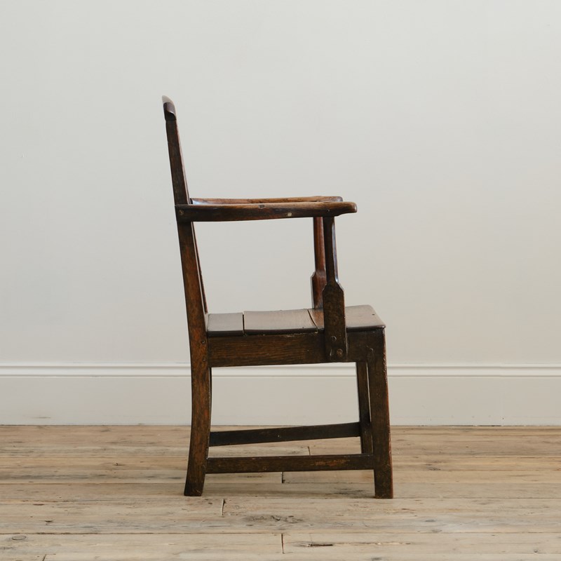 A nice and simple Georgian splat back armchair in oak with plenty of patina and remnants of its original painted finish.