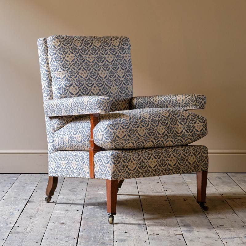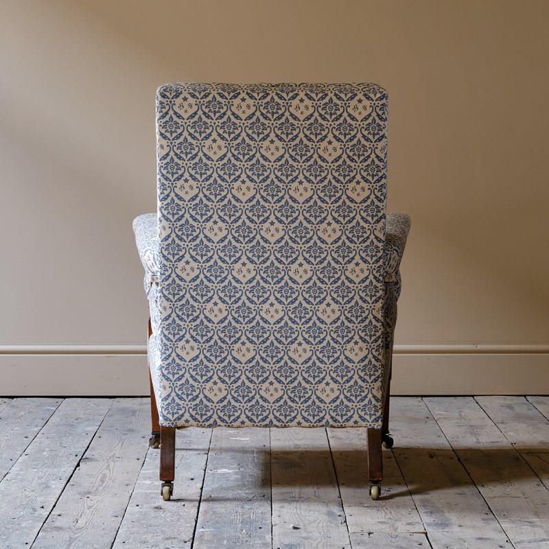 Fully restored from the frame up to a high standard with feather and down cushion. The whole chair has been covered in reproduction Howard cotton lining ready to use as is or for your choice of top covering.