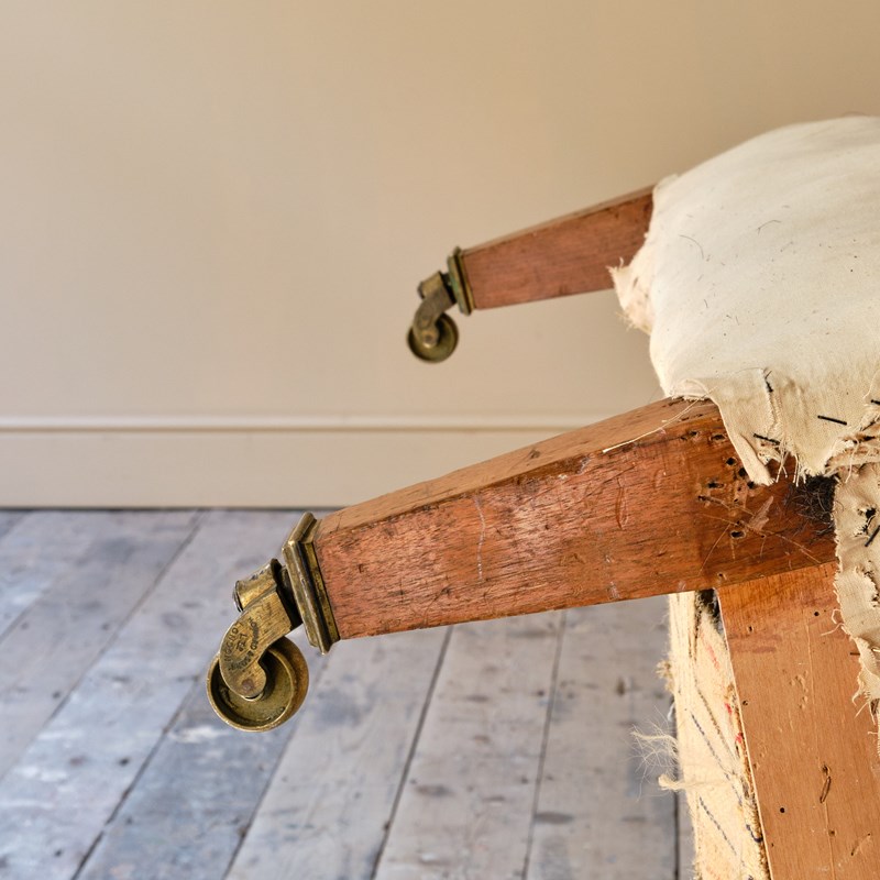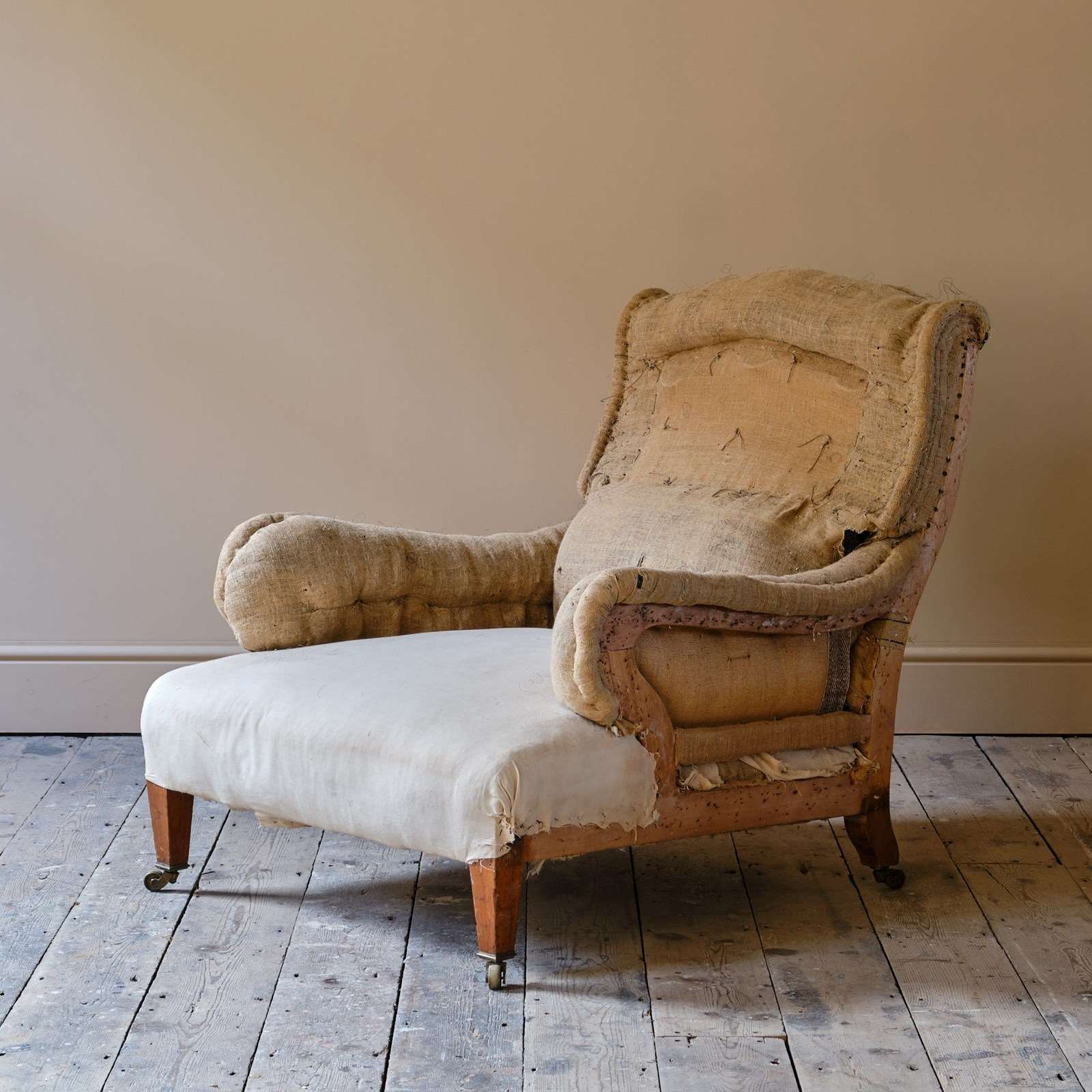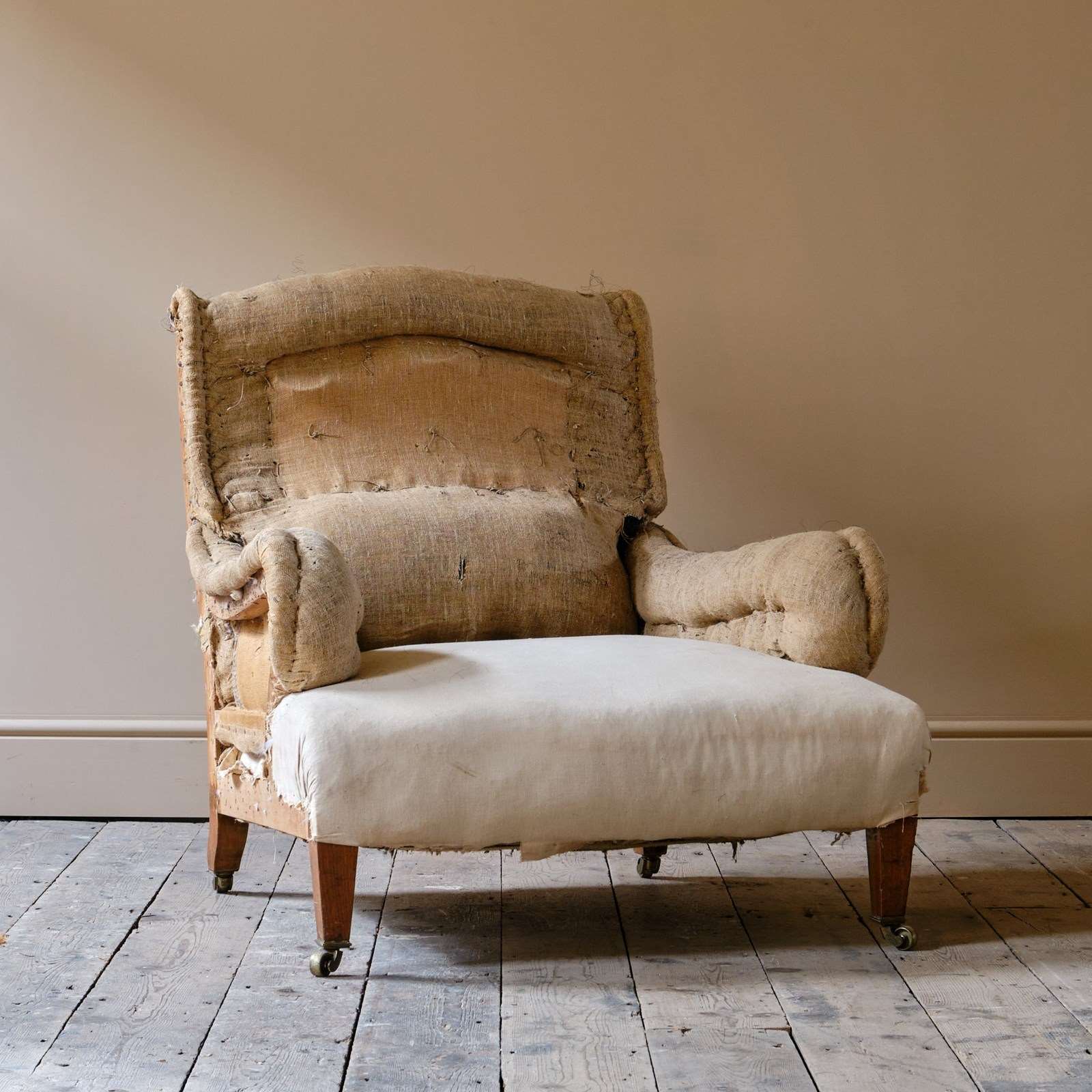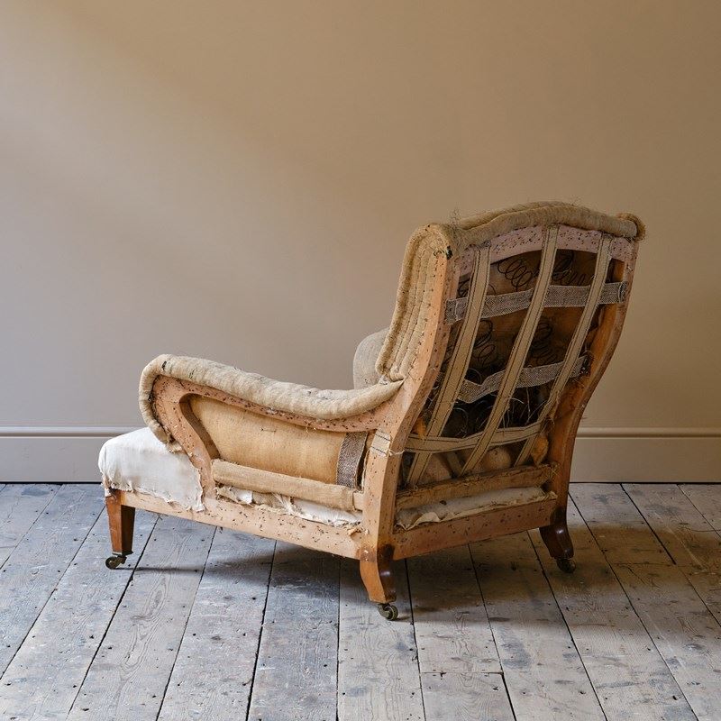 We can restore this chair with a number of different comfort options and we can supply Howard & Sons Monogram cotton lining.