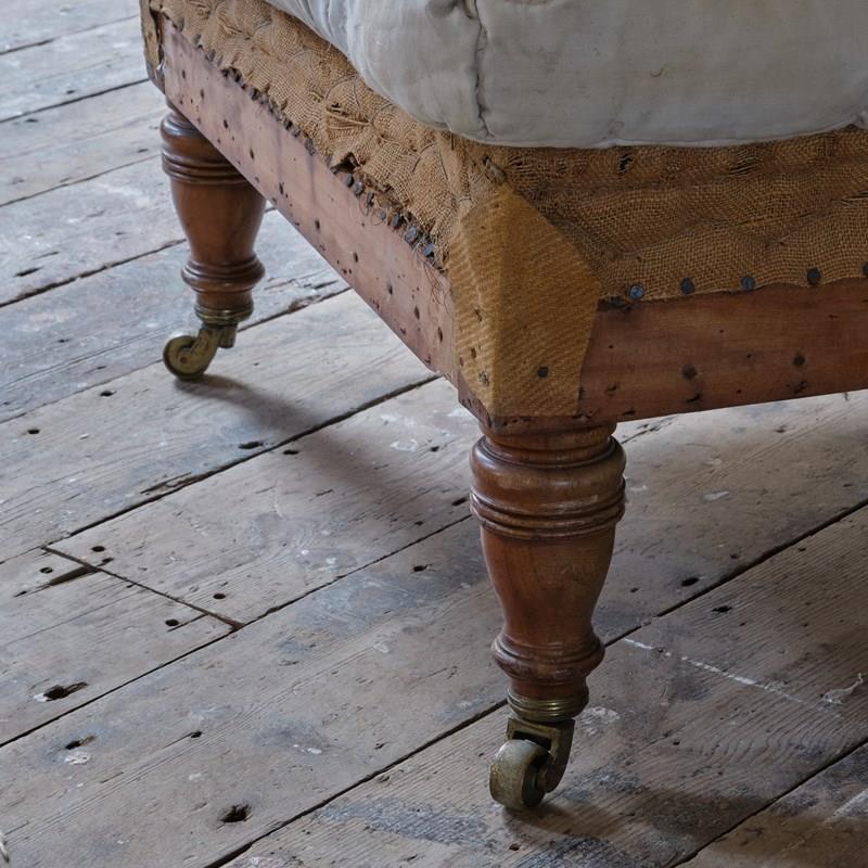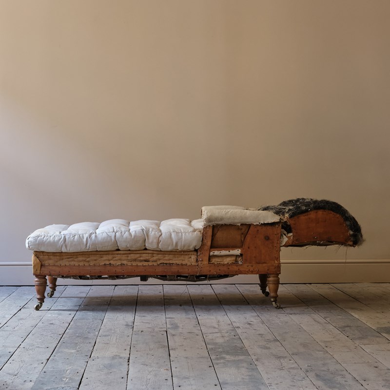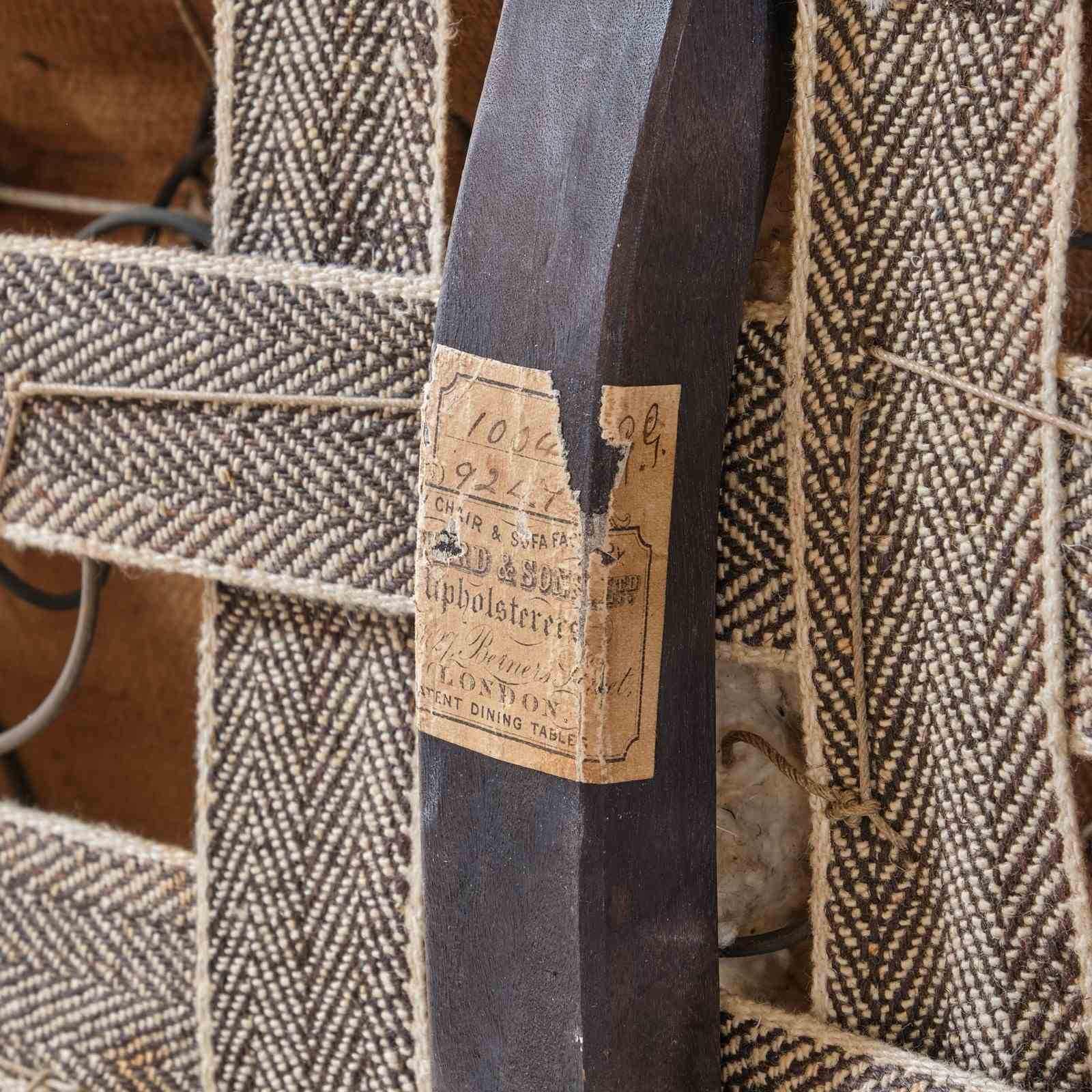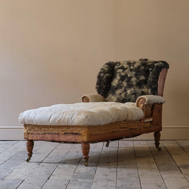 It retains its original horse hair innards to the back and wings. it also has the original down filled seat cushion and seat.