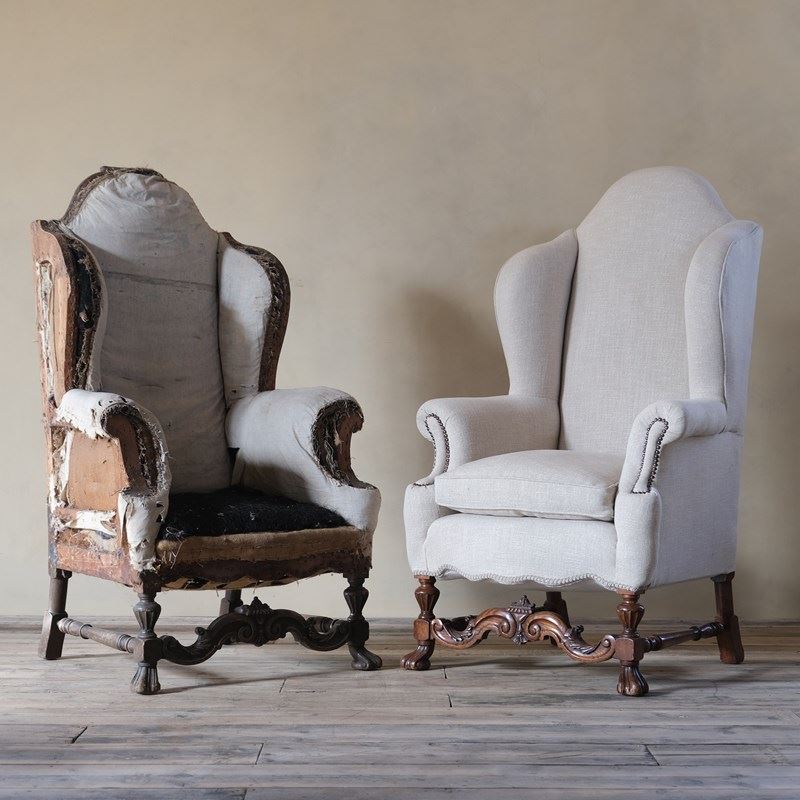 Both structurally in solid condition. The one in white linen is of recent upholstery and very much ready for use.