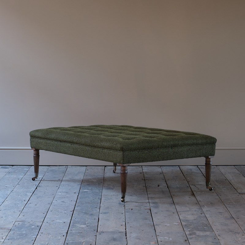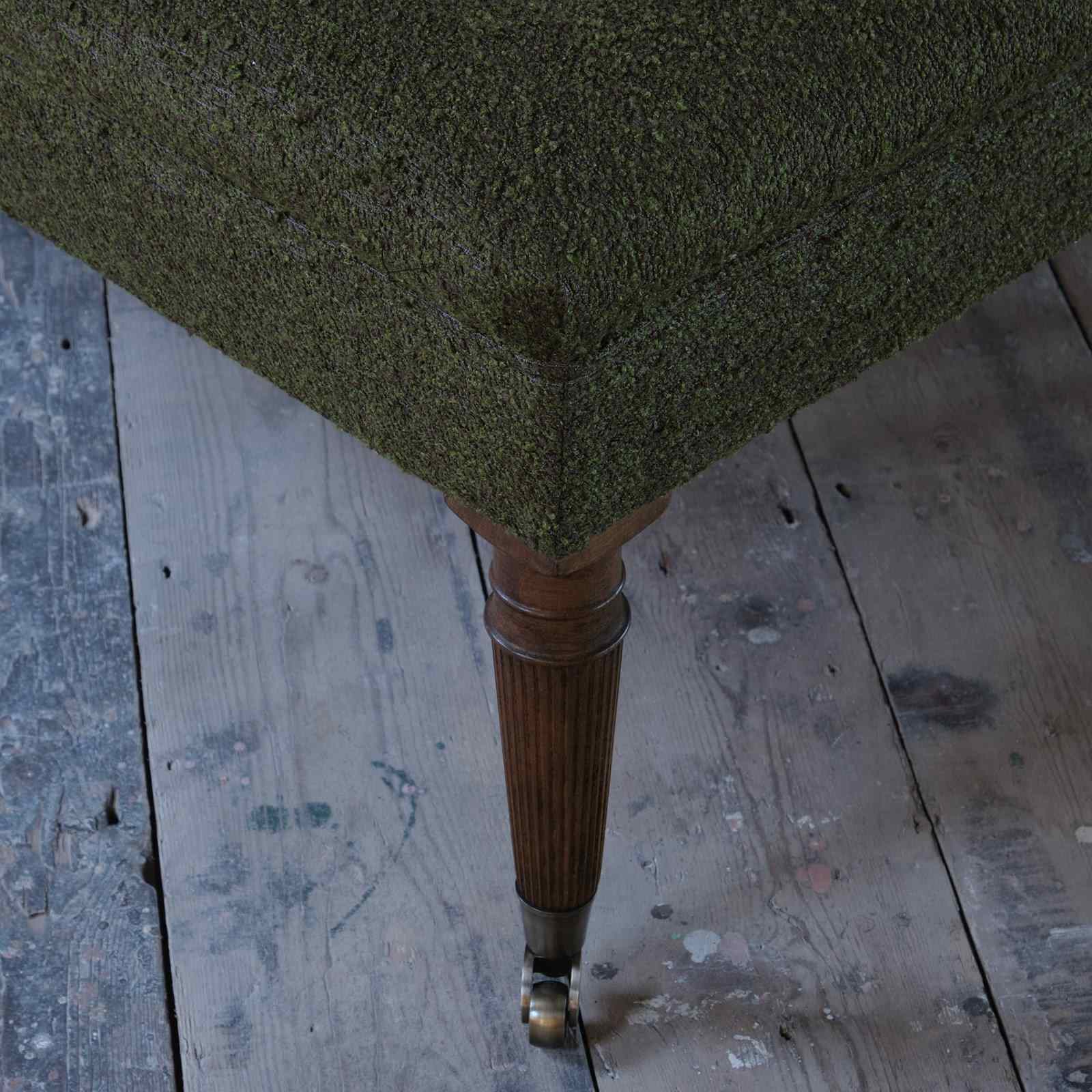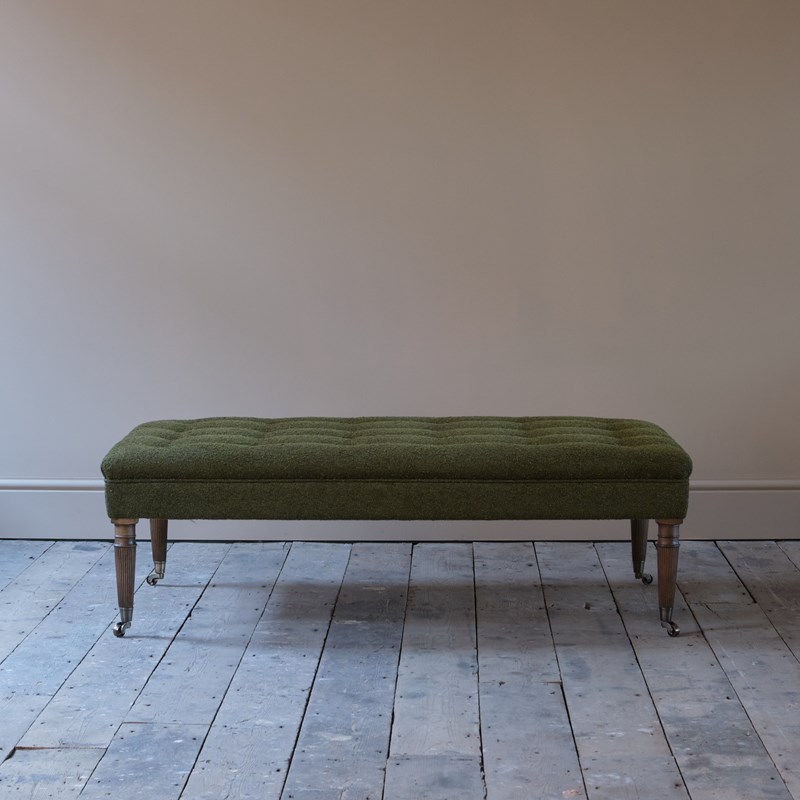 We also offer a bespoke service so please feel free to reach us via the 'Enquire' button and simply let us know the required size you'd like and we can help let you know how many meters you'll require. Meterage varies depending on if the fabric is plain or has a repeat pattern. The legs are interchangeable so if you don't like the ones in the images or there not right for your interior then we can help with that too and we work with a local wood turner so we can have legs turned to a design you may have previously seen.