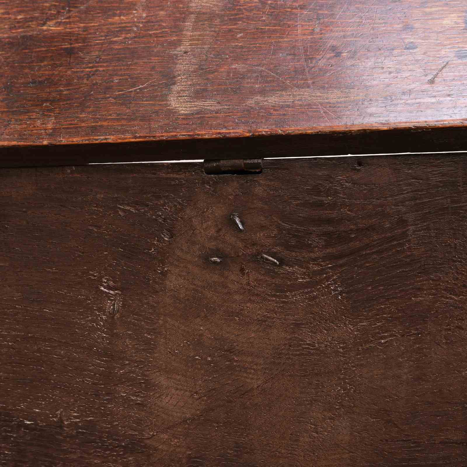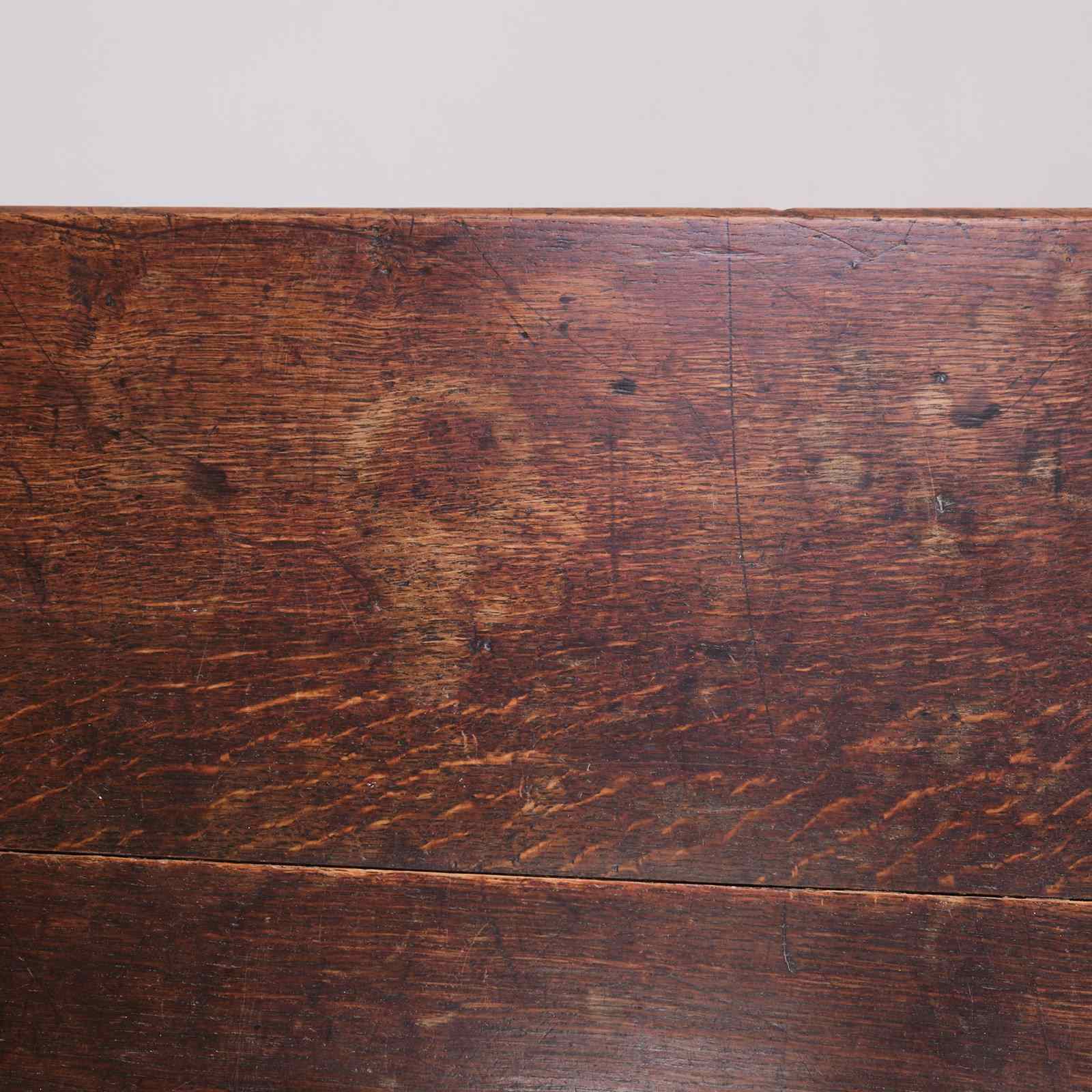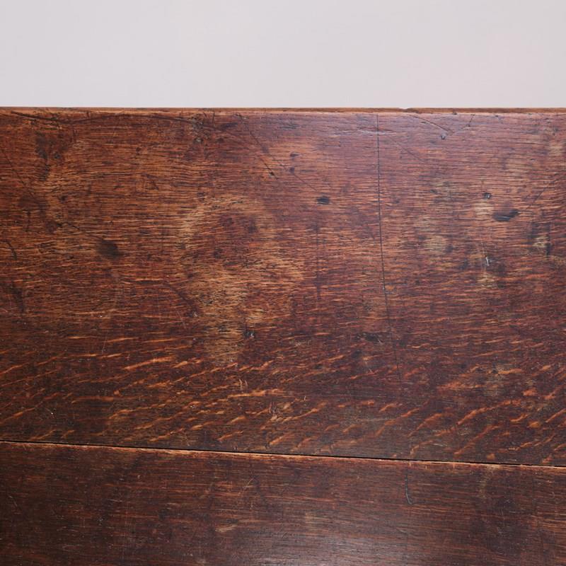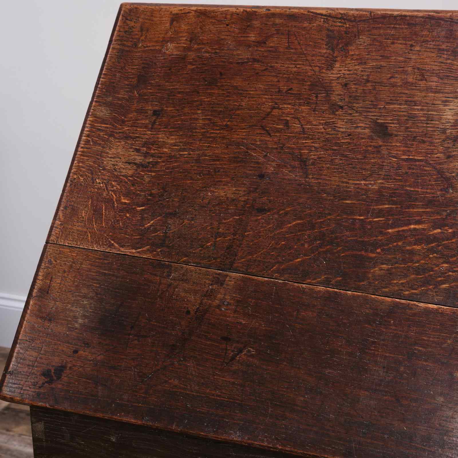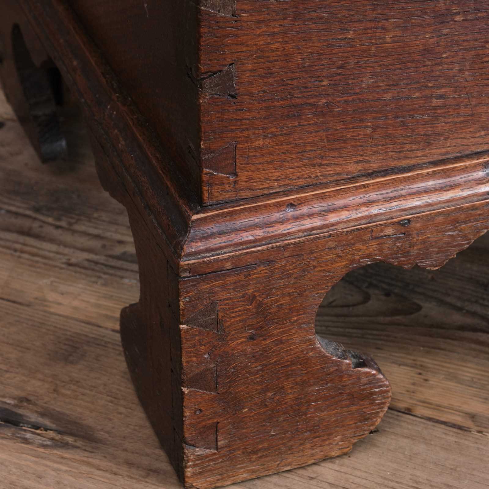 A large Georgian oak blanket box on bracket feet. Retaining its original hardware but lacking the original key.