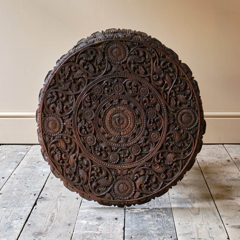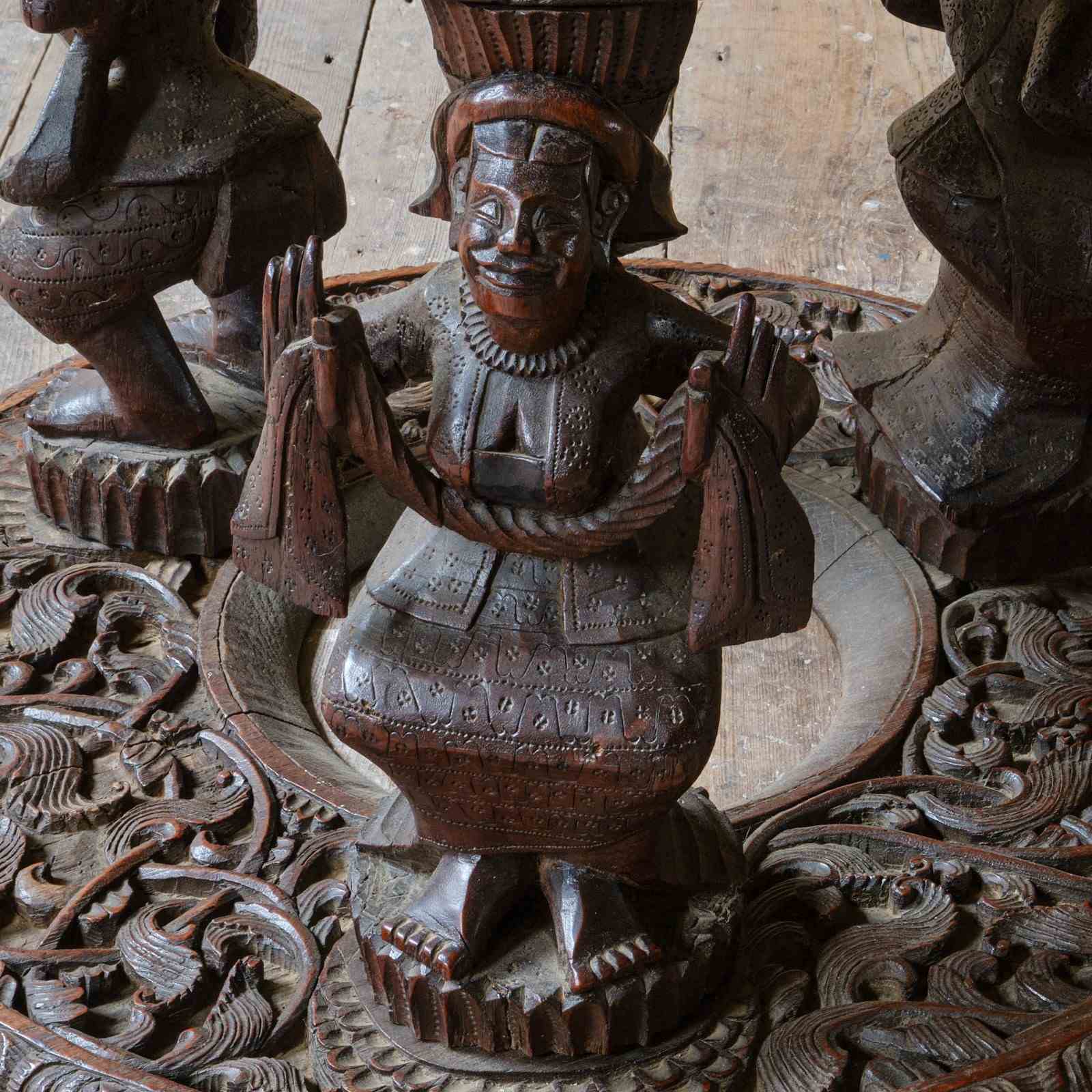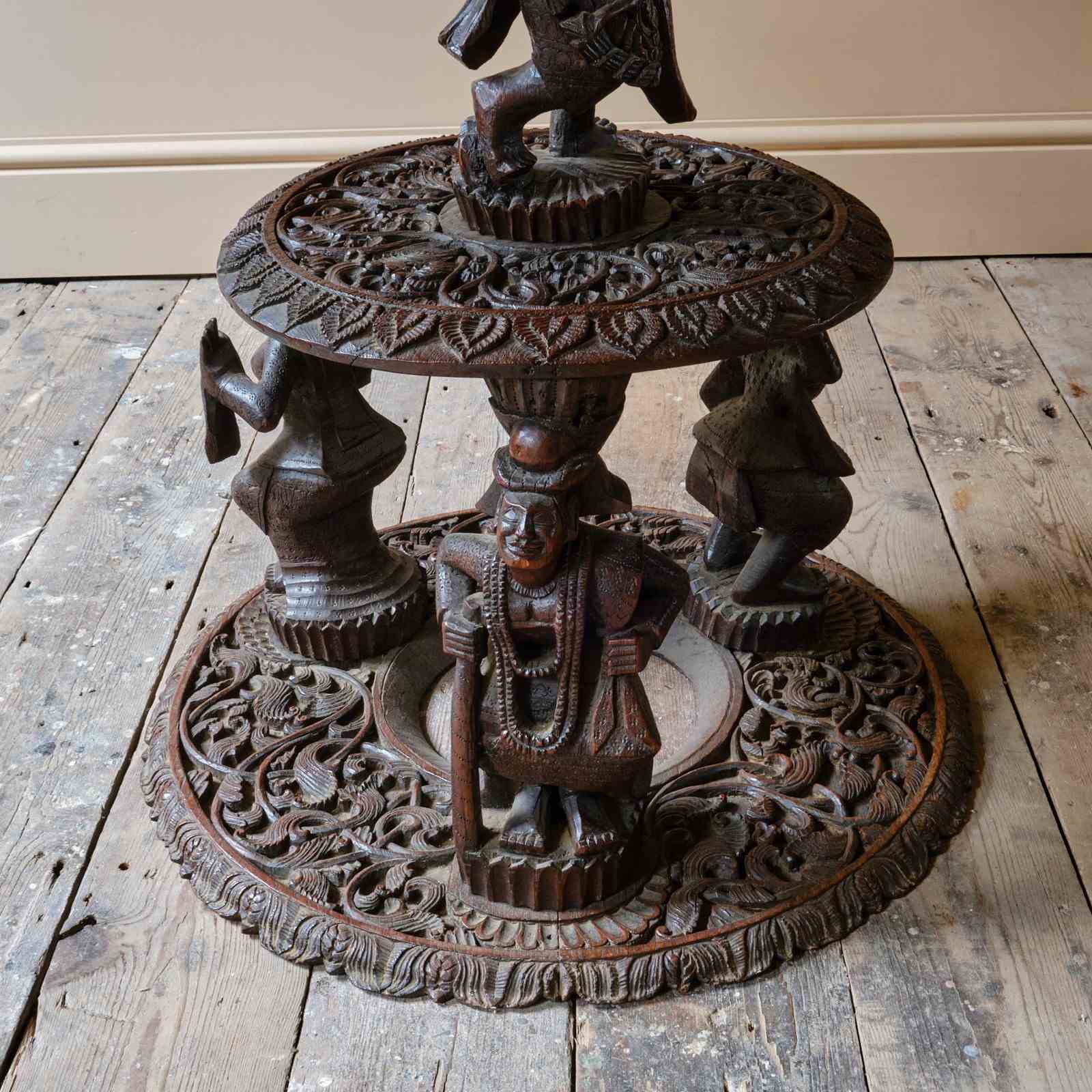 A profusely carved Burmese side table with nicely carved figure supports and decorative tops. A good example in good order.