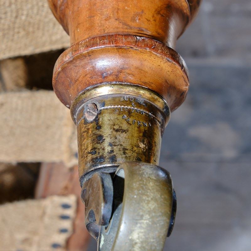 A mid 19th century shapely country house slipper chair by Howard and sons - London c1850. Raised on walnut legs and the original Cope & Collinson brass casters.