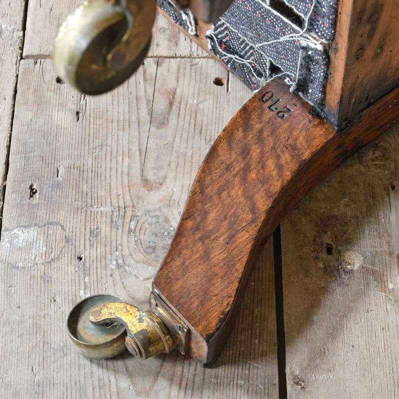 A mid 19th century prayer or side chair firmly attributed to Howard & Sons London, England c1840. Raised on walnut legs and brass casters.