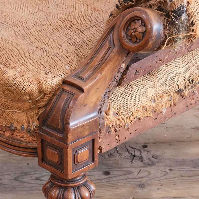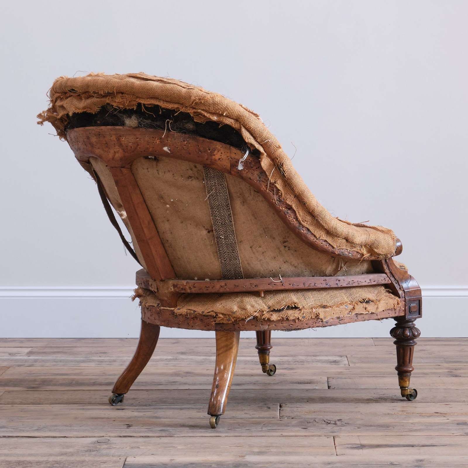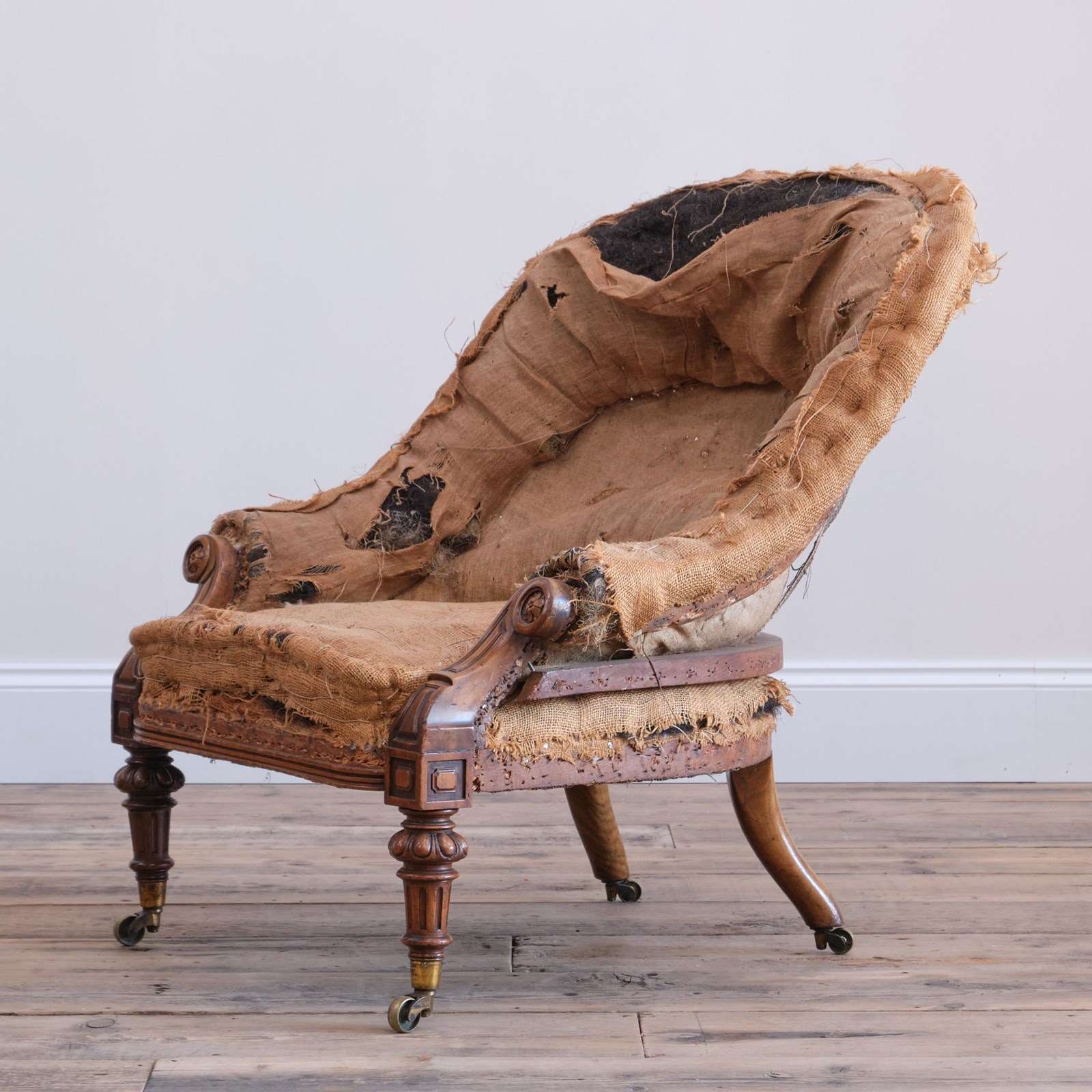 A superb quality mid 19th century armchair raised on turned and carved walnut legs and the original Cope & Collinson gilt brass cup casters.