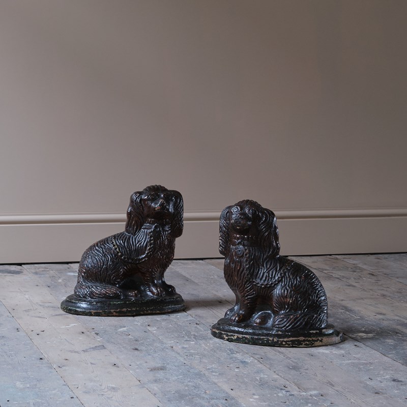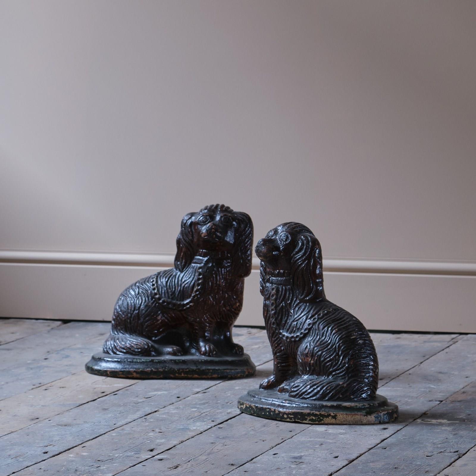 Pair Of English 19Th Century Salt Glazed Spaniels