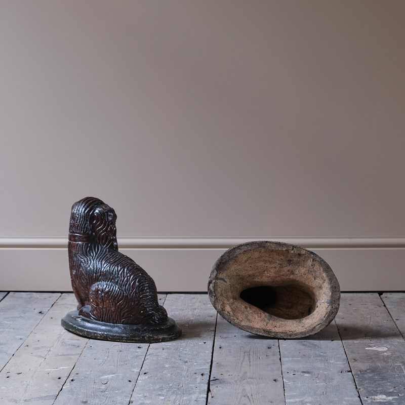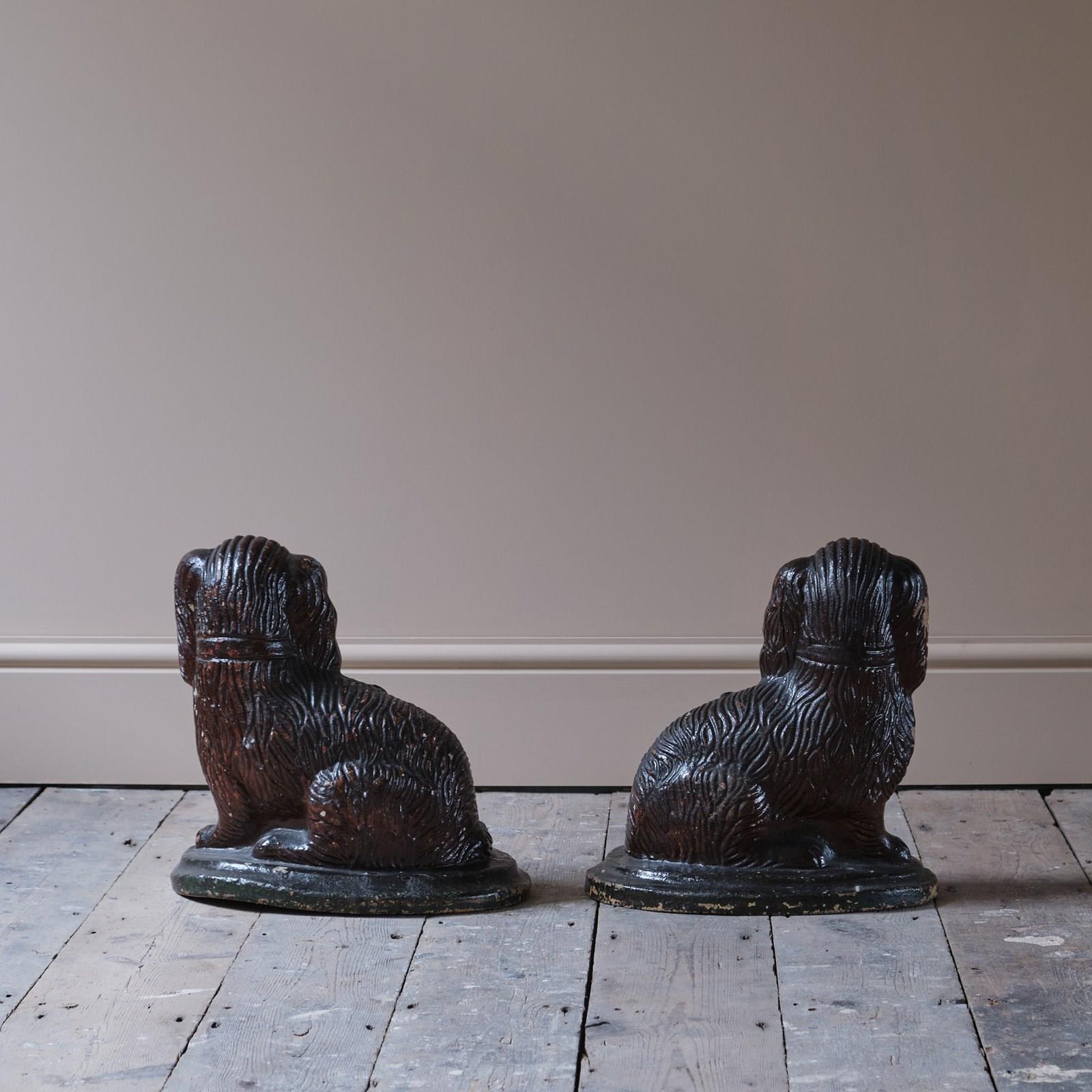A pair of 19th century brown salt glazed seated spaniels on raised green bases. English C mid 19th century.