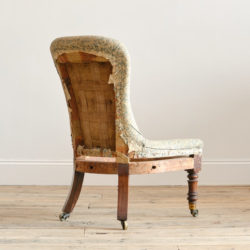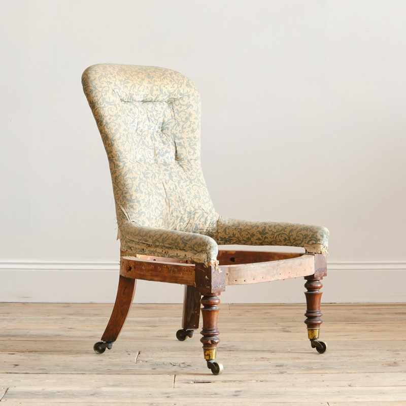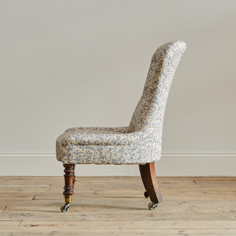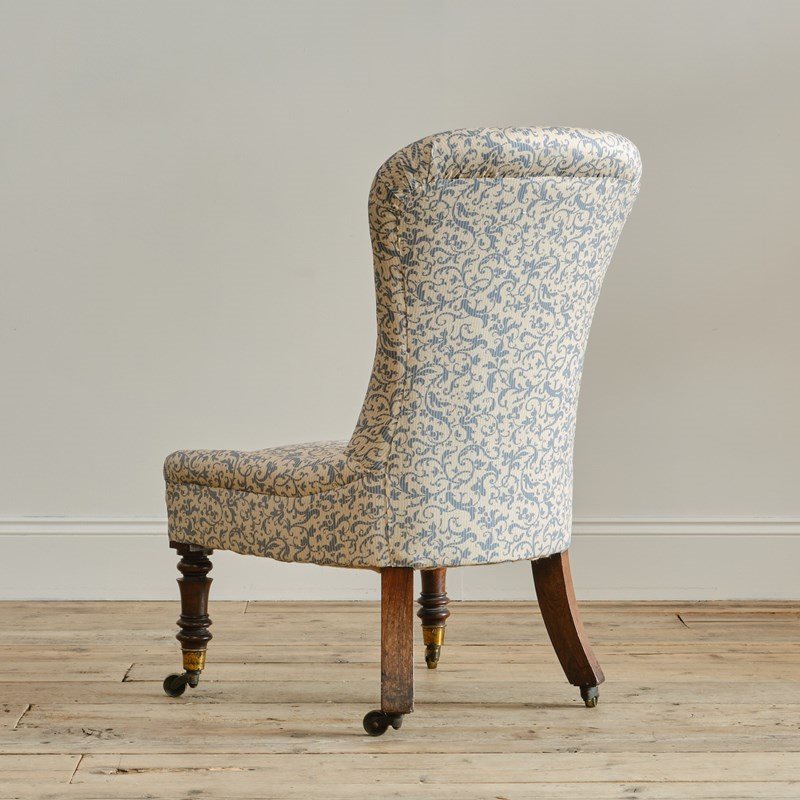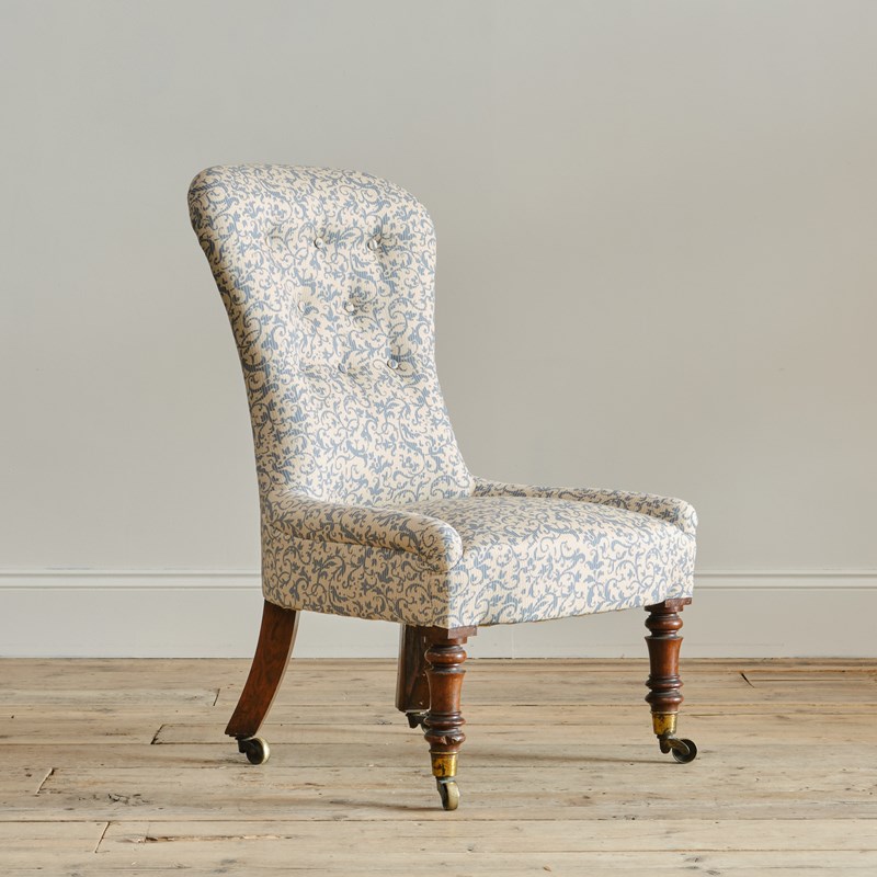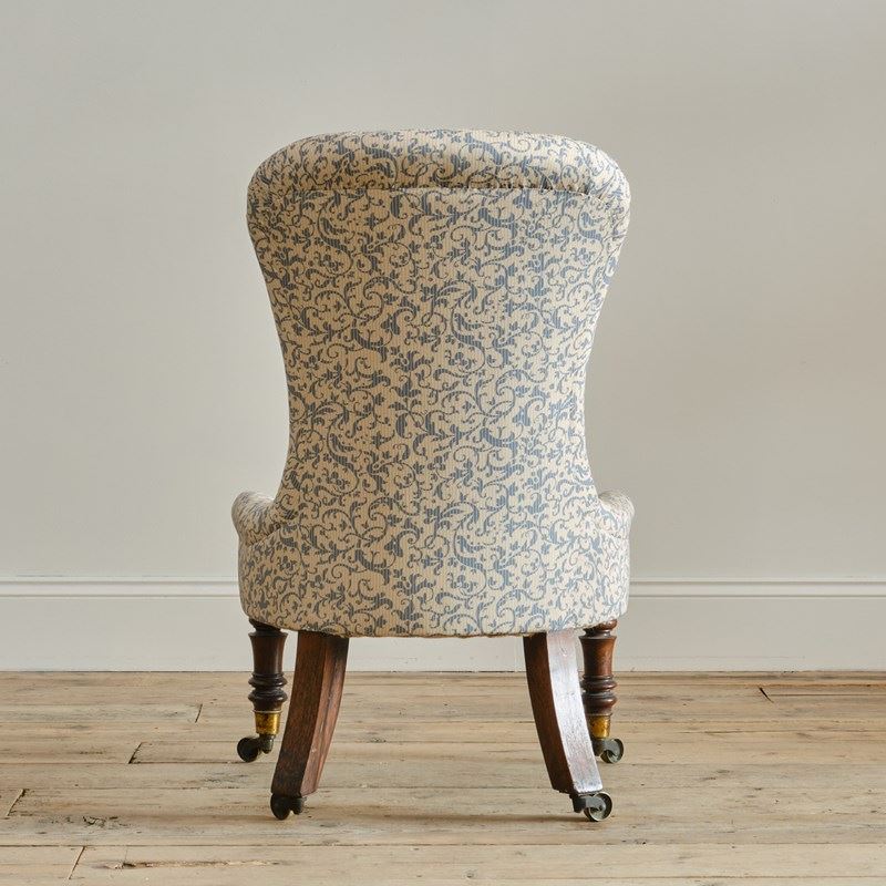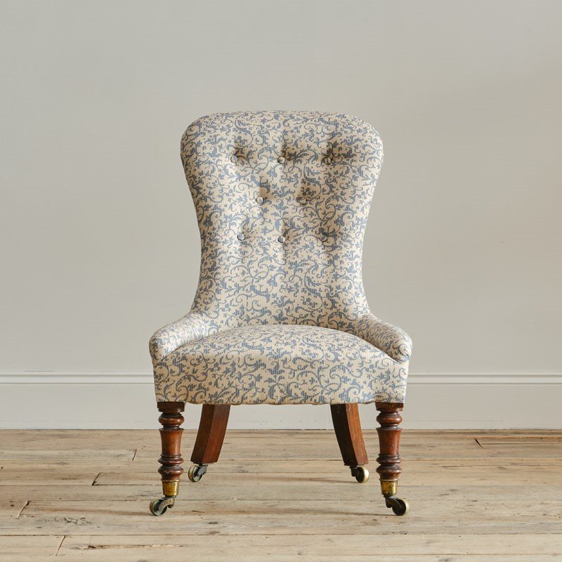 Newly upholstered in a Desired Effect reproduction of the original printed linen.