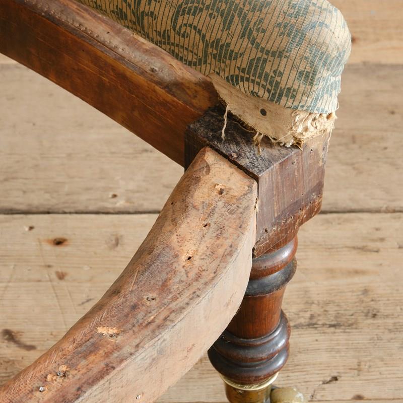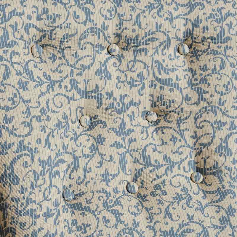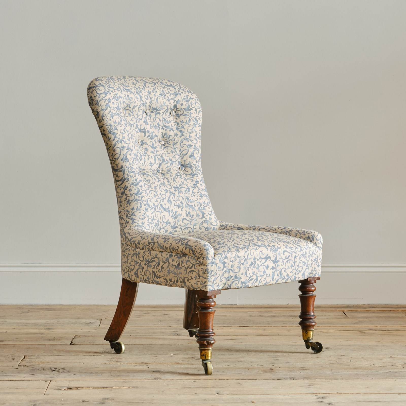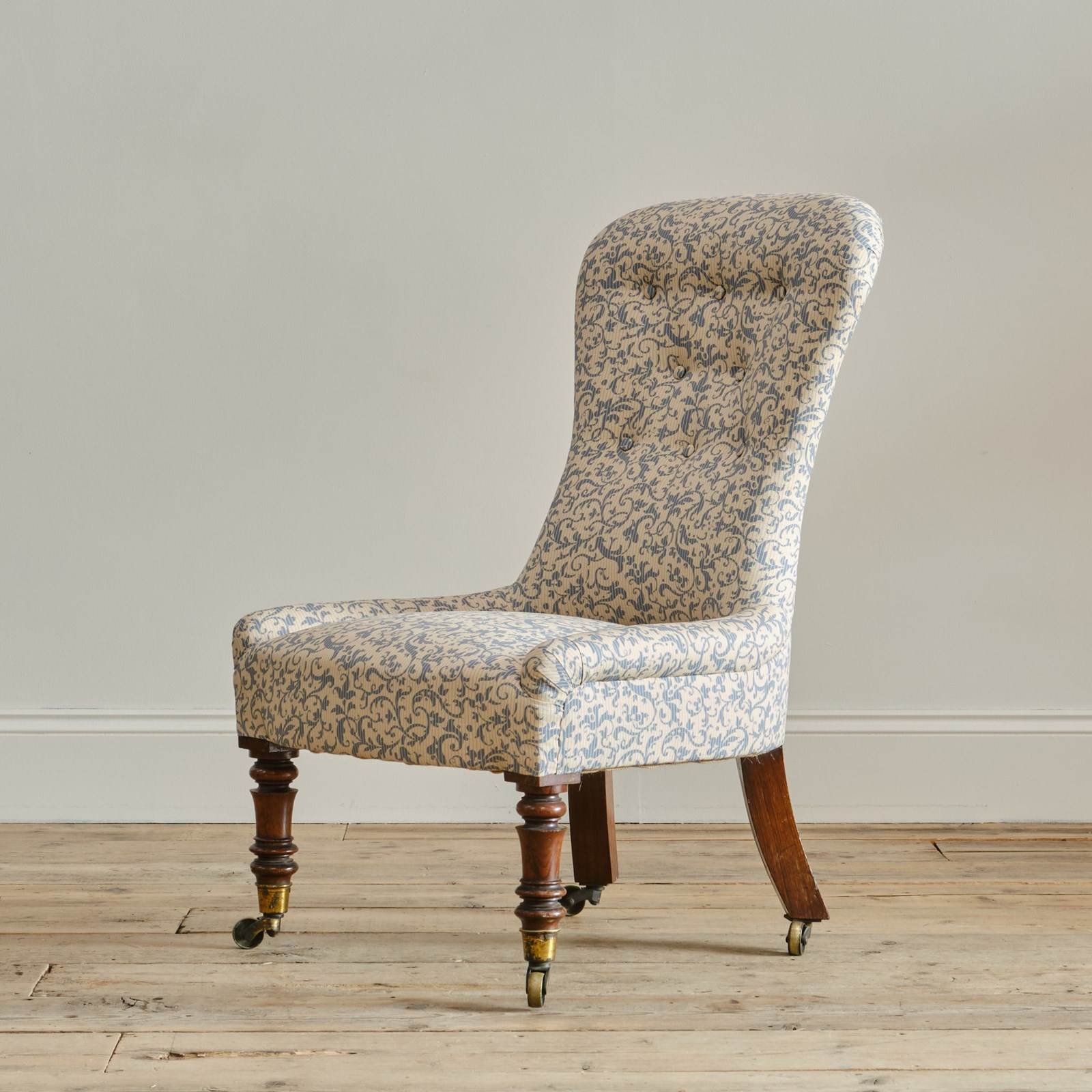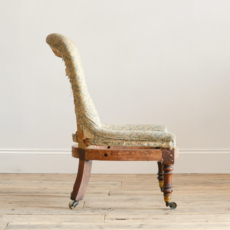 Newly upholstered in a Desired Effect reproduction of the original printed linen.