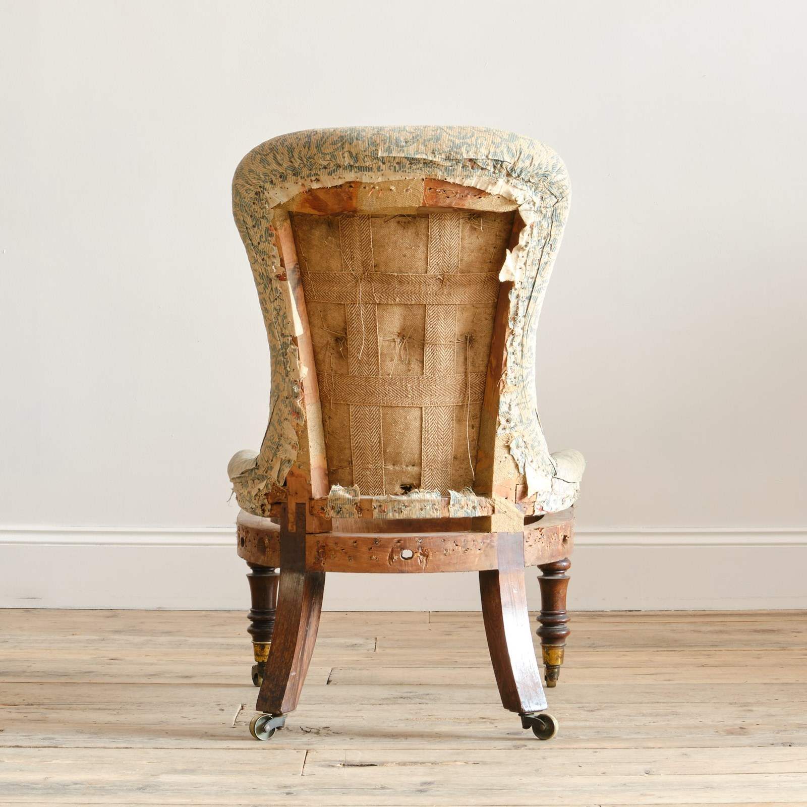 The elegant frame constructed in walnut and of superior quality. Retaining its original fillings and ticking to the back and sides.