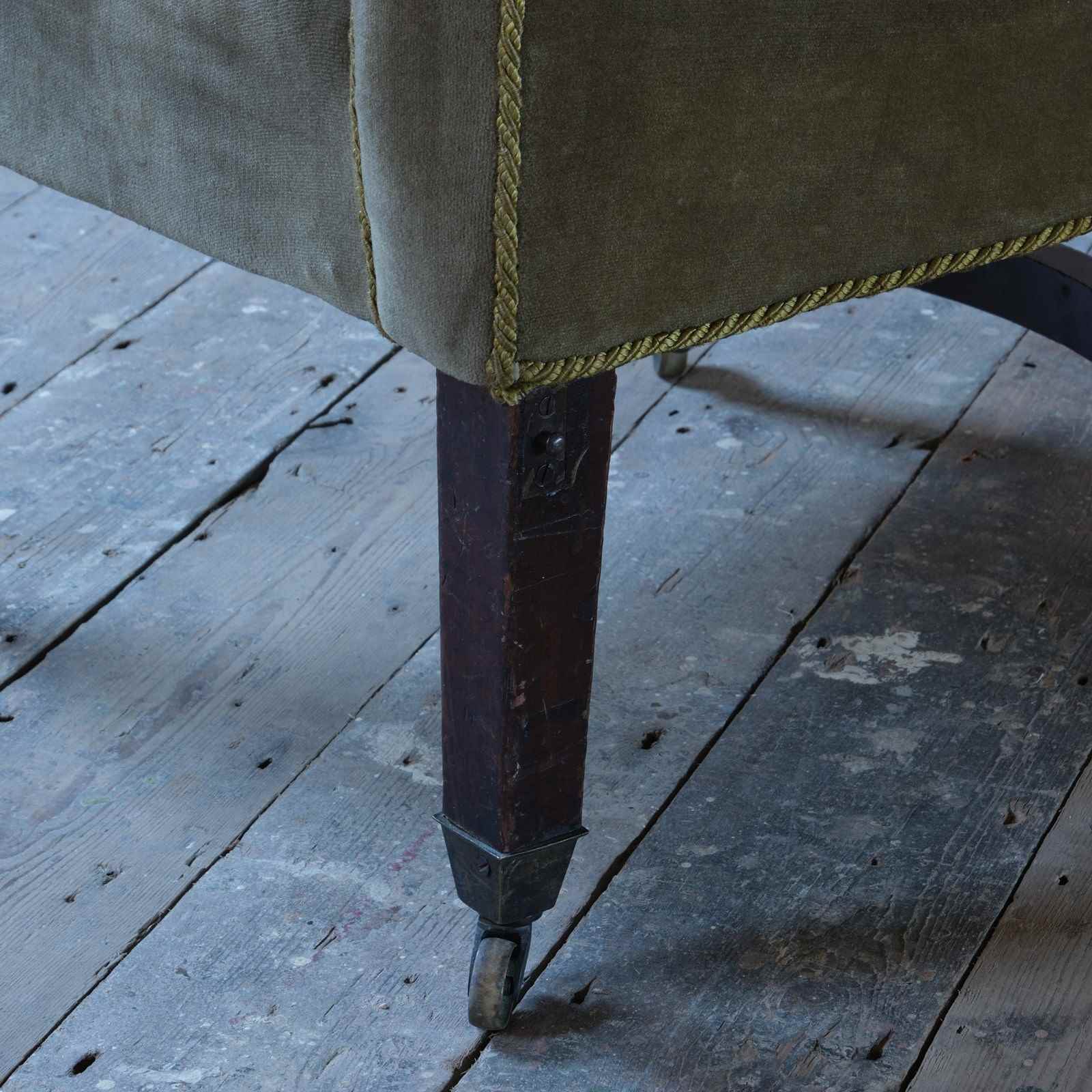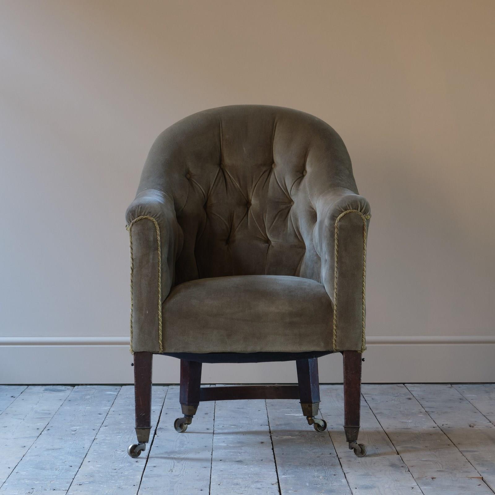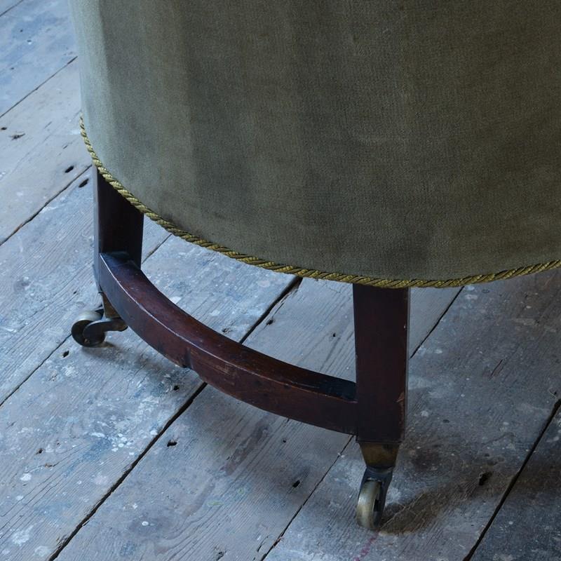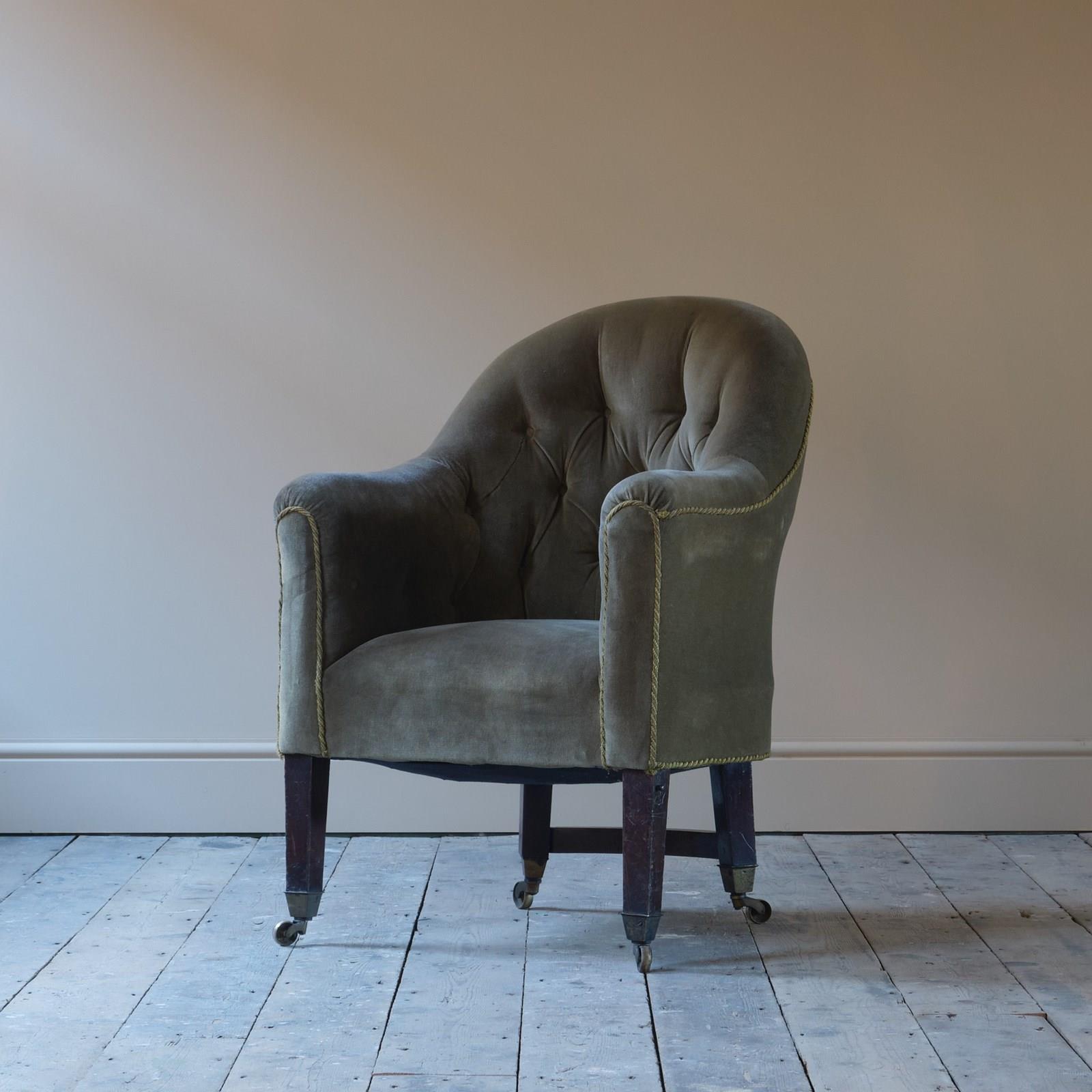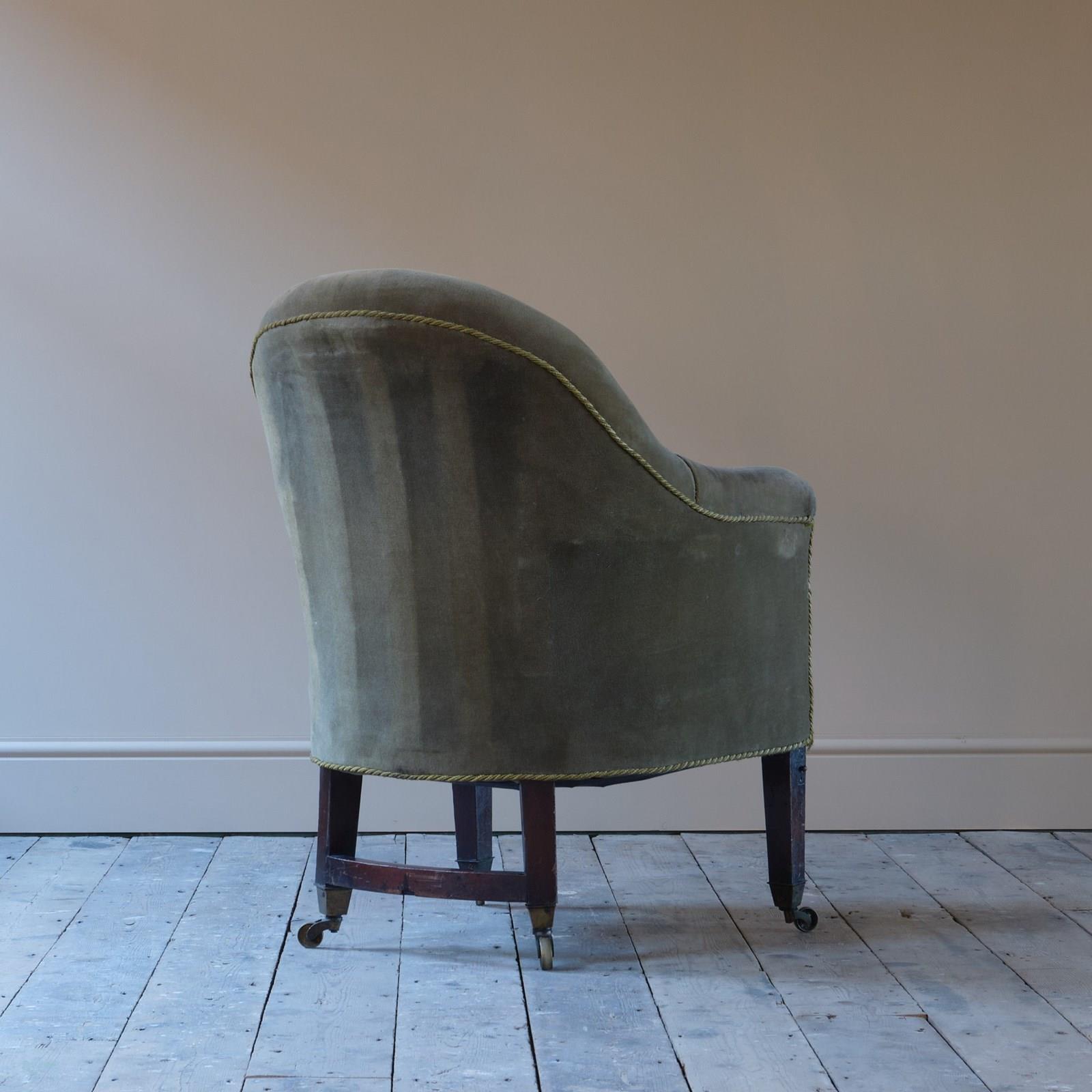 An early 19th century tub back library armchair. Raised on square tapered legs with brass casters. The rear back legs joined by a curved stretcher and both front legs have a bracket presumably for a now absent reading stand. English c1830.
