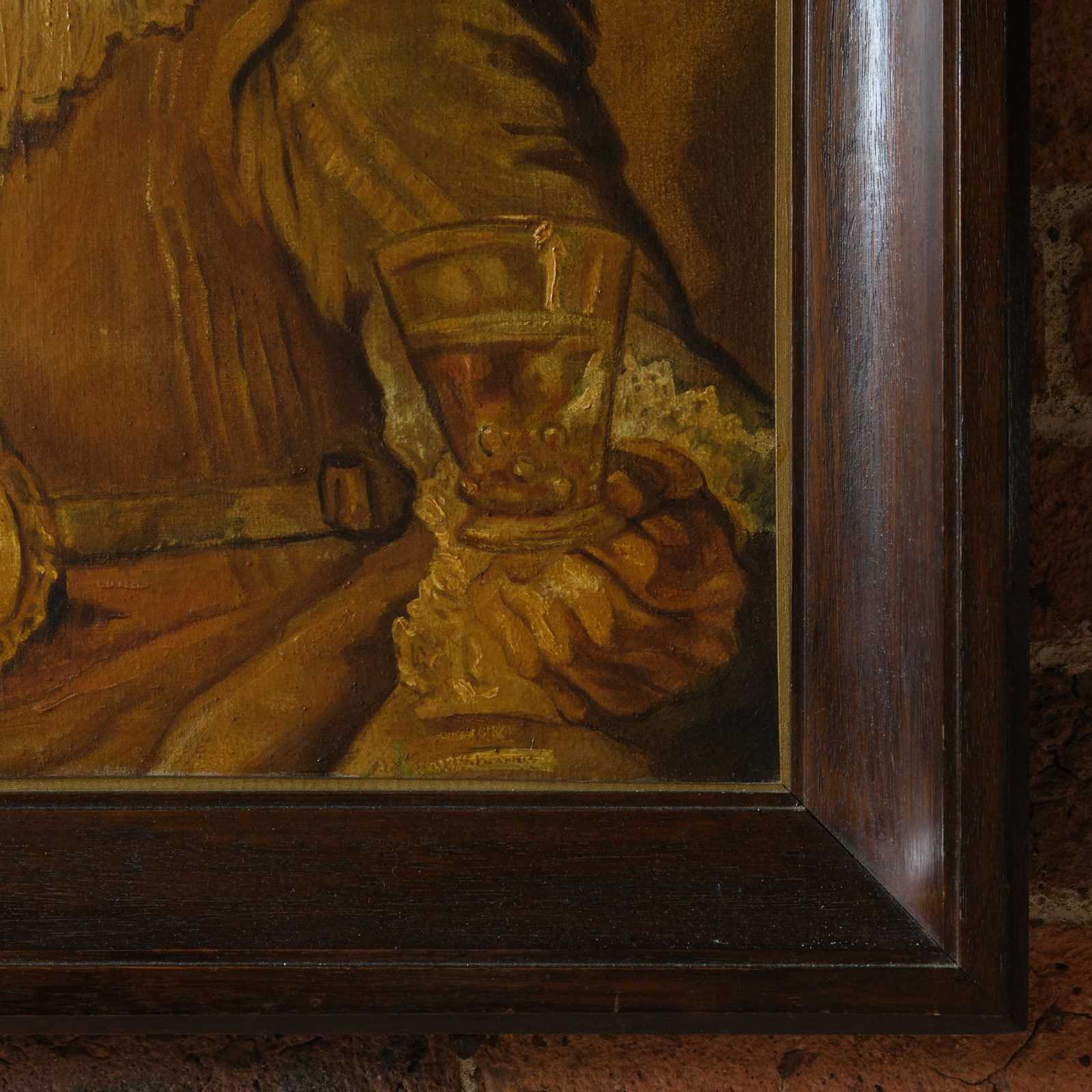 An early 20th - mid 20th century oil on canvas. 'The Merry Drinker'