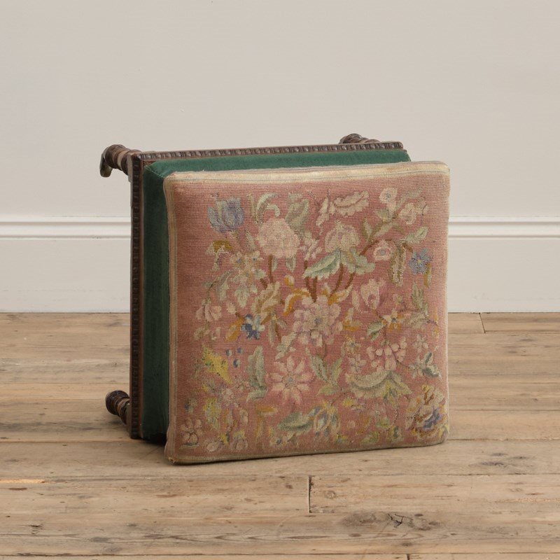 William IV Footstool In Simulated Rosewood And Needlework Top