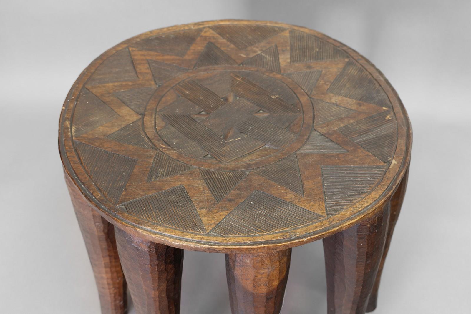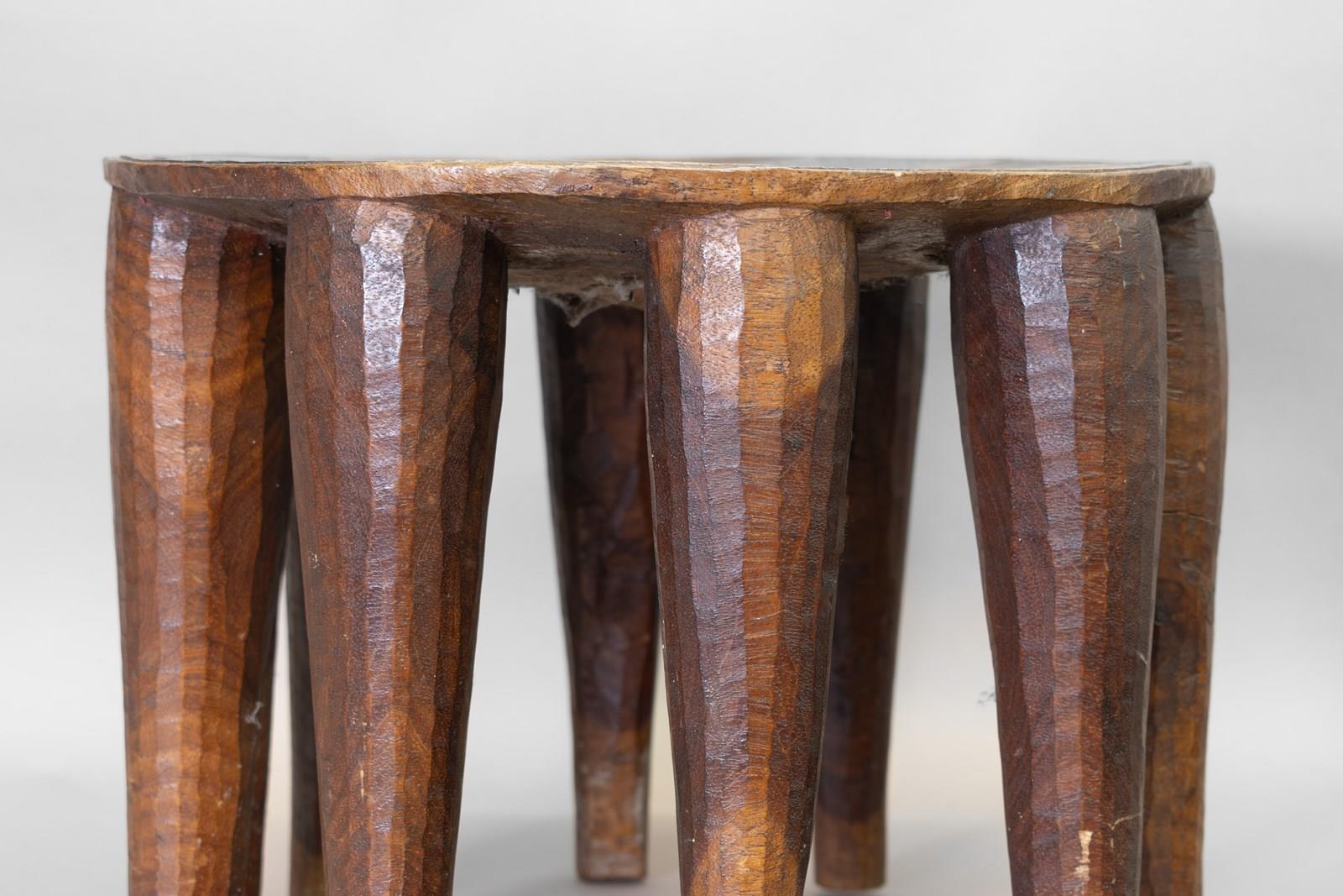 10 leg Nupe stool in solid African teak. Circa 1900.