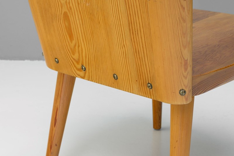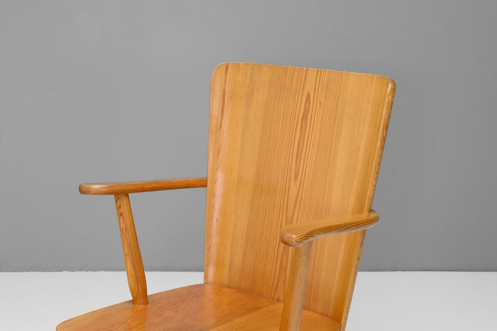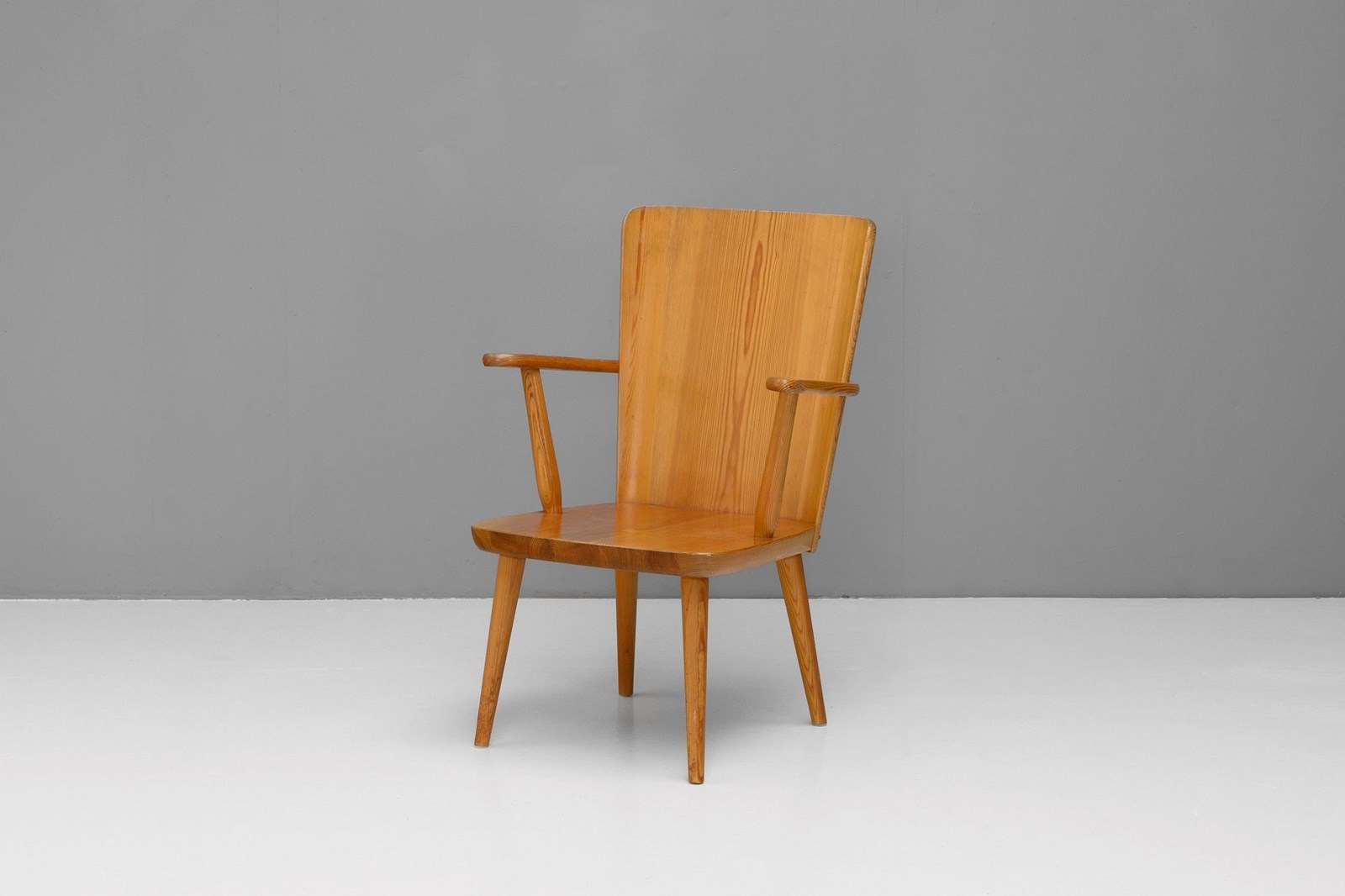 Solid pine armchair by Göran Malmvall. Great original condition. Sweden circa 1950.