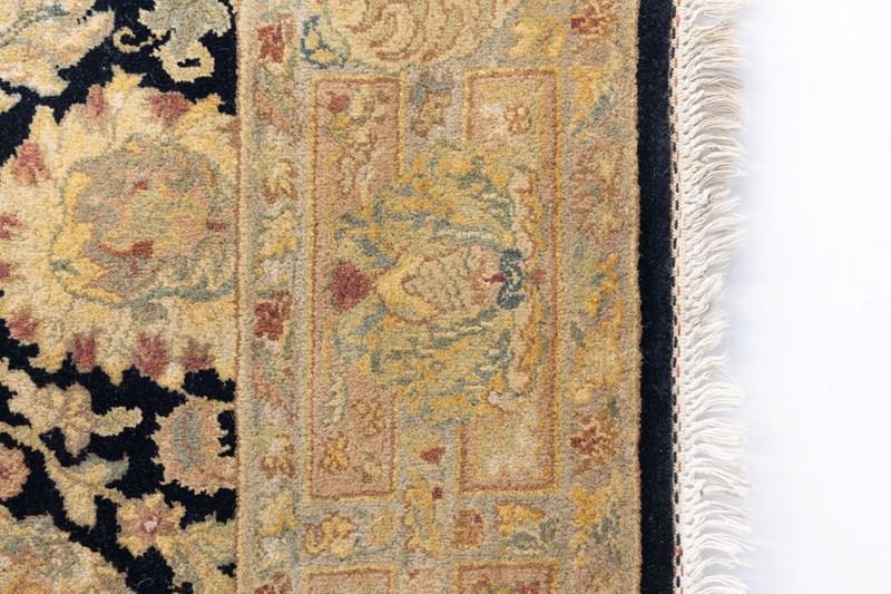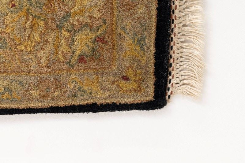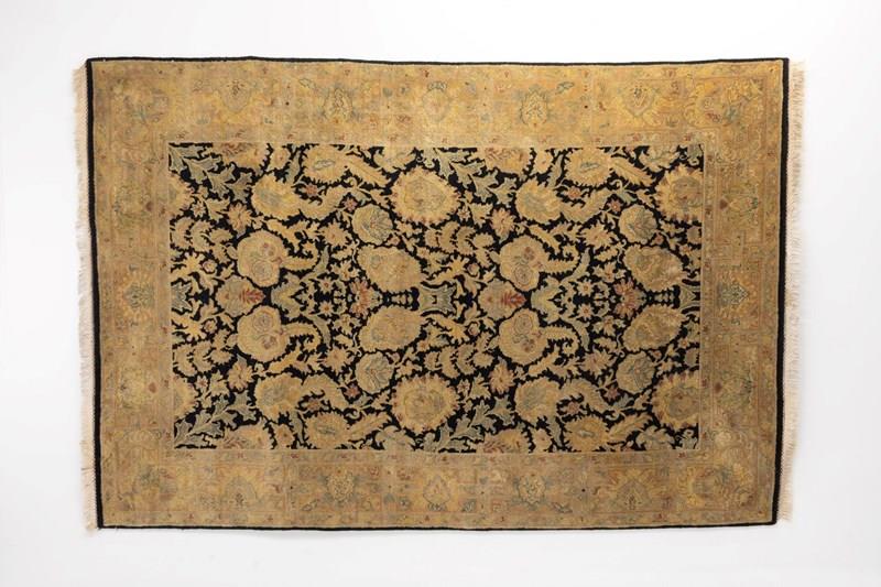 Vintage rug with a floral motif in black and gold wool and silk. Turkey circa 1950.