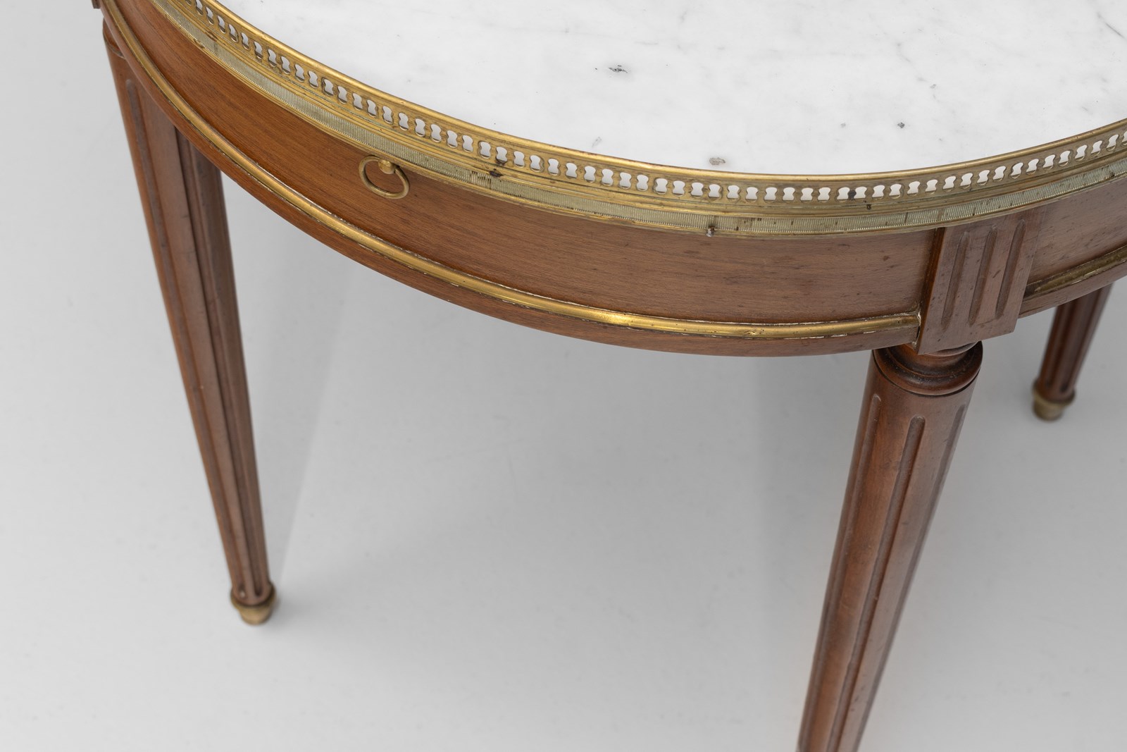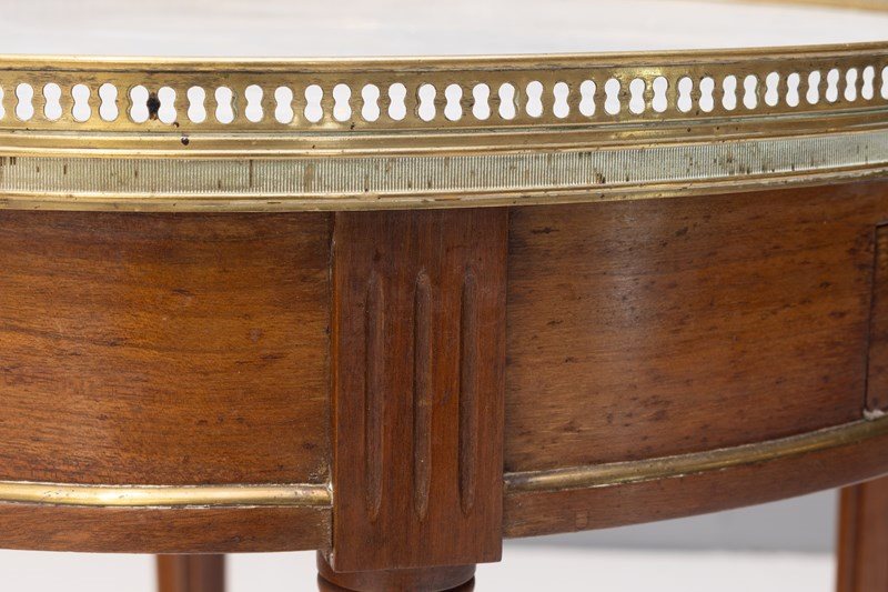 French marble topped mahogany games table with brass gallery. Circa 1900