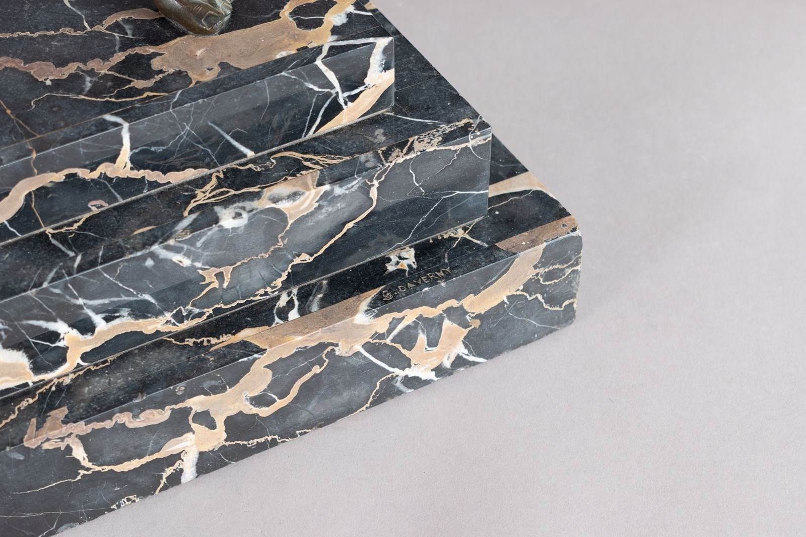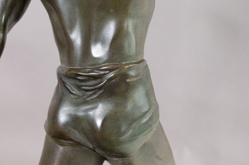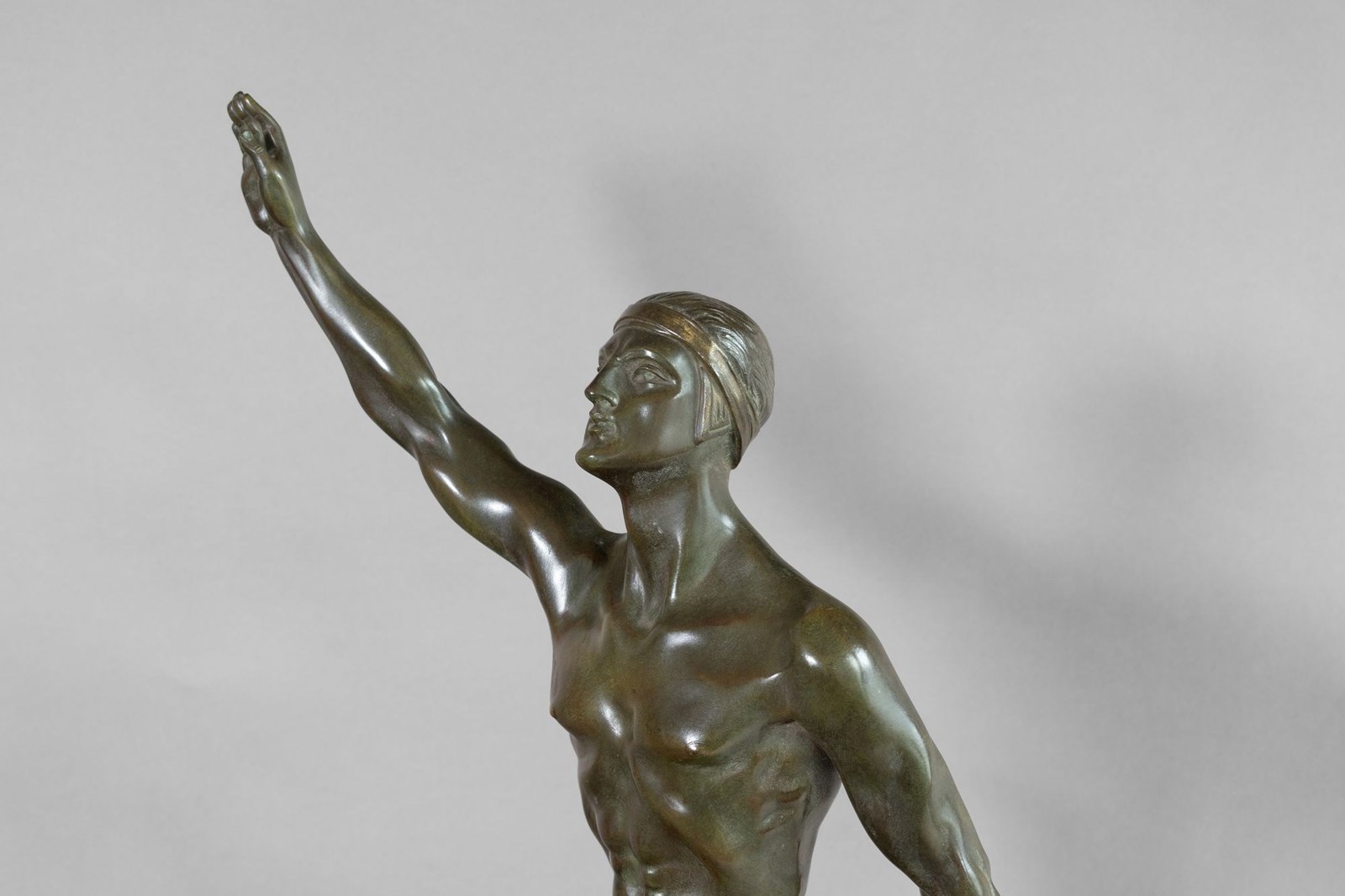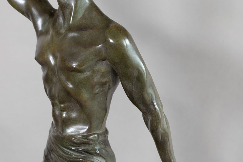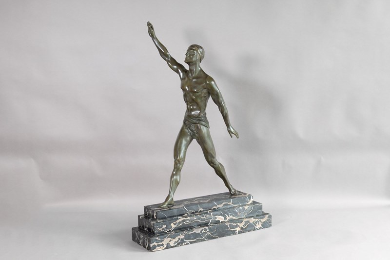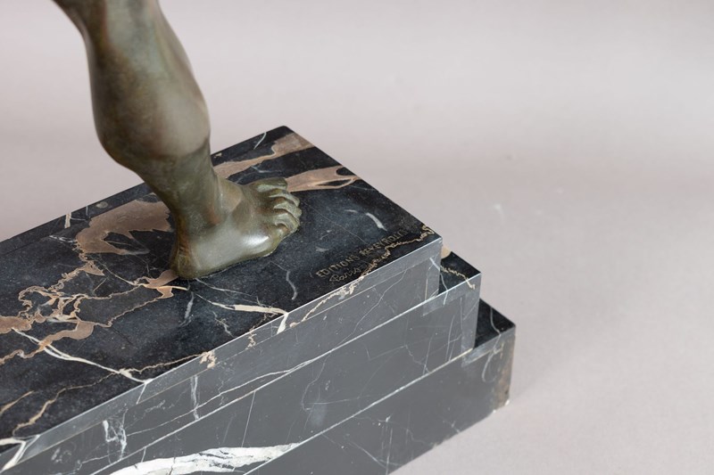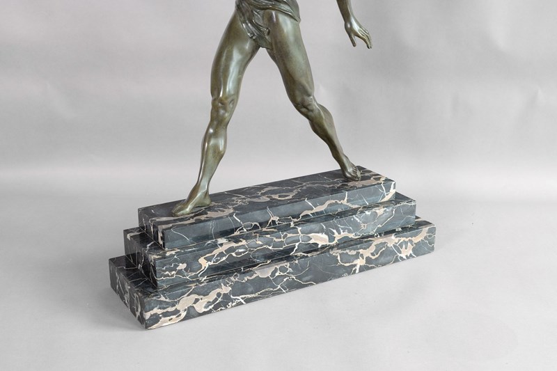 Large bronze model of an Olympian figure on a tiered marble base. Signed Editions Paris and G. Daverny. France circa 1930.