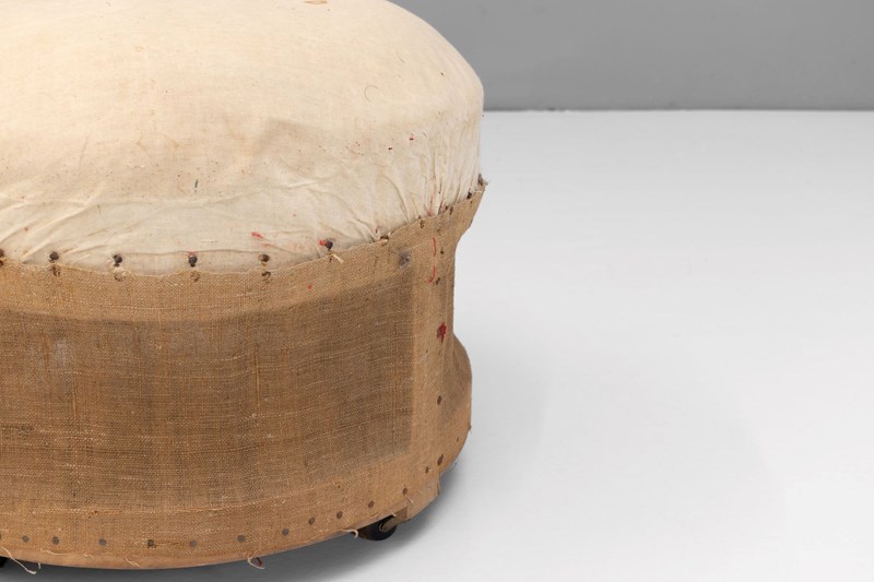Circular footstool on casters. Circa 1890.