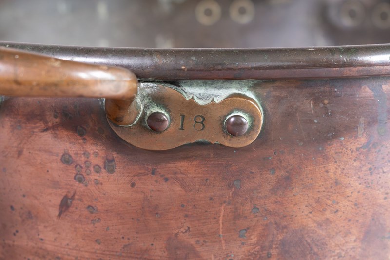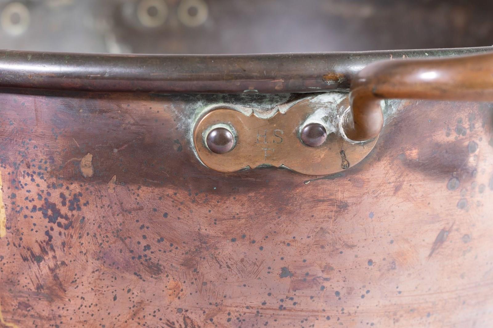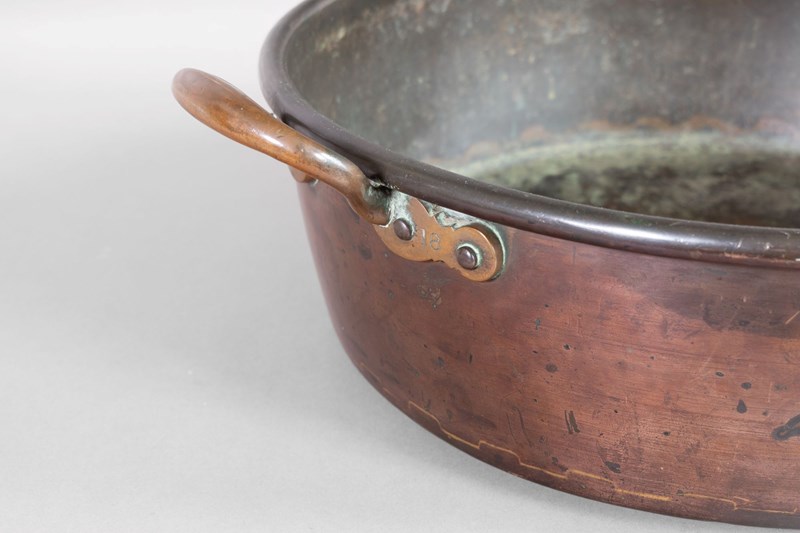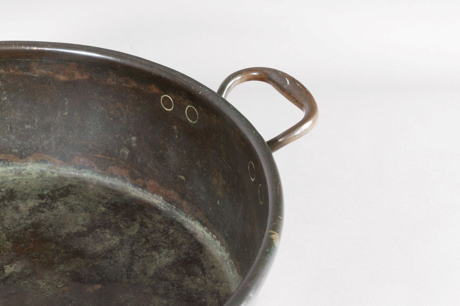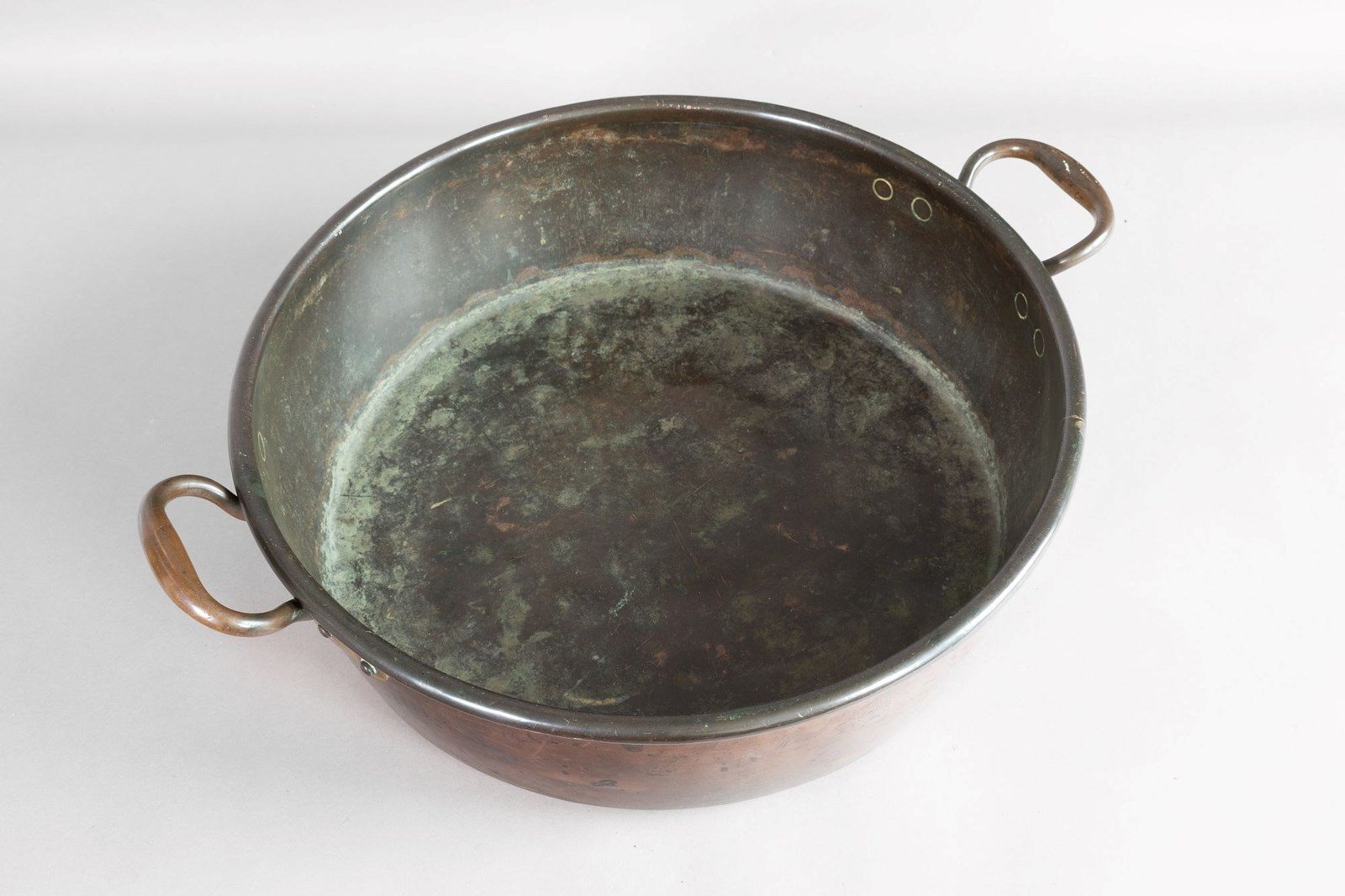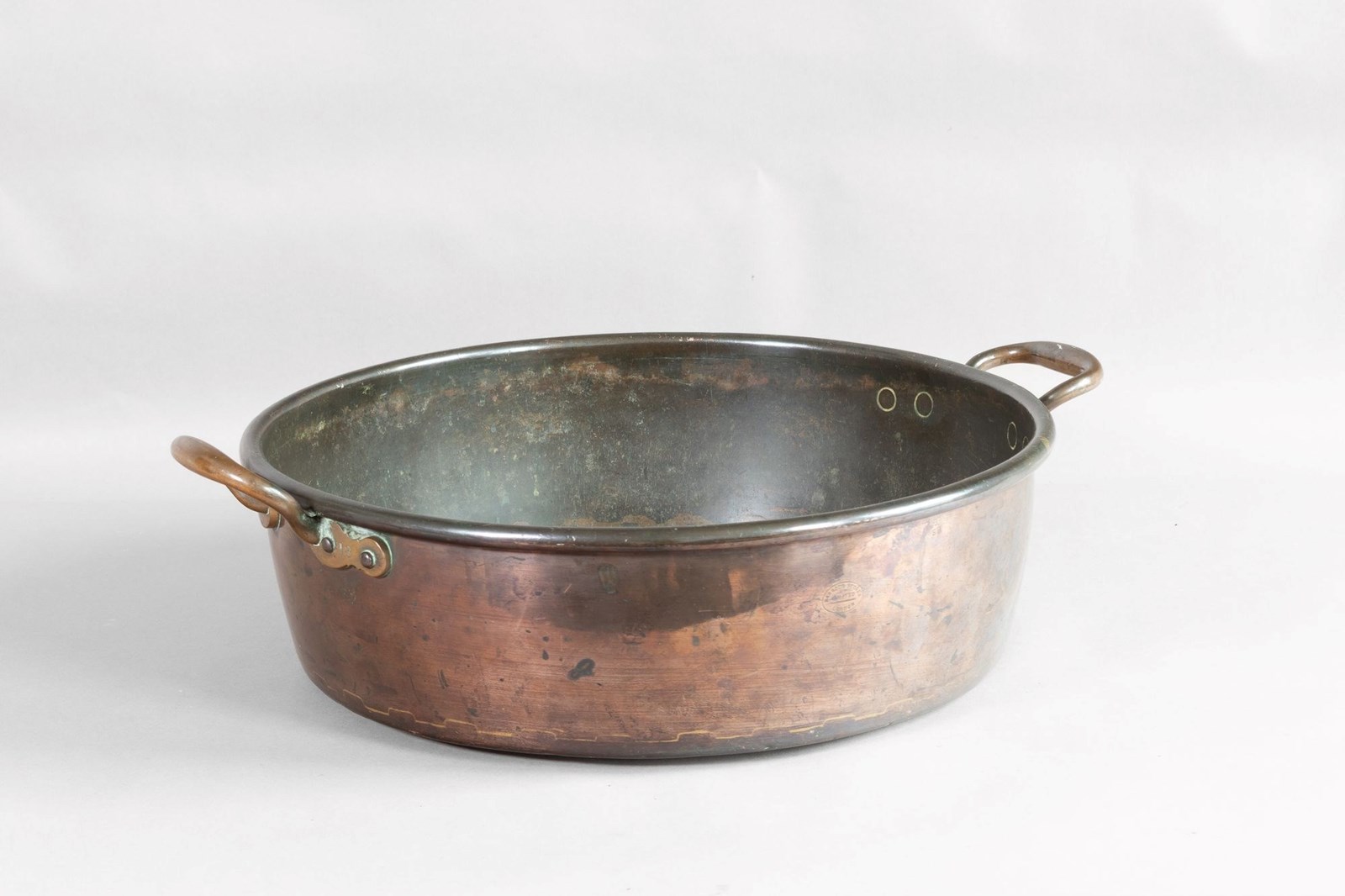 Large copper bowl with two brass carrying handles. Circa 1850.