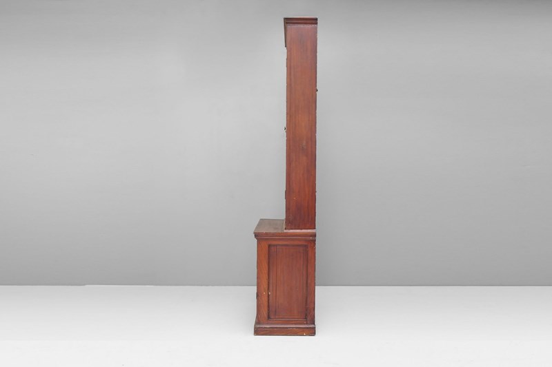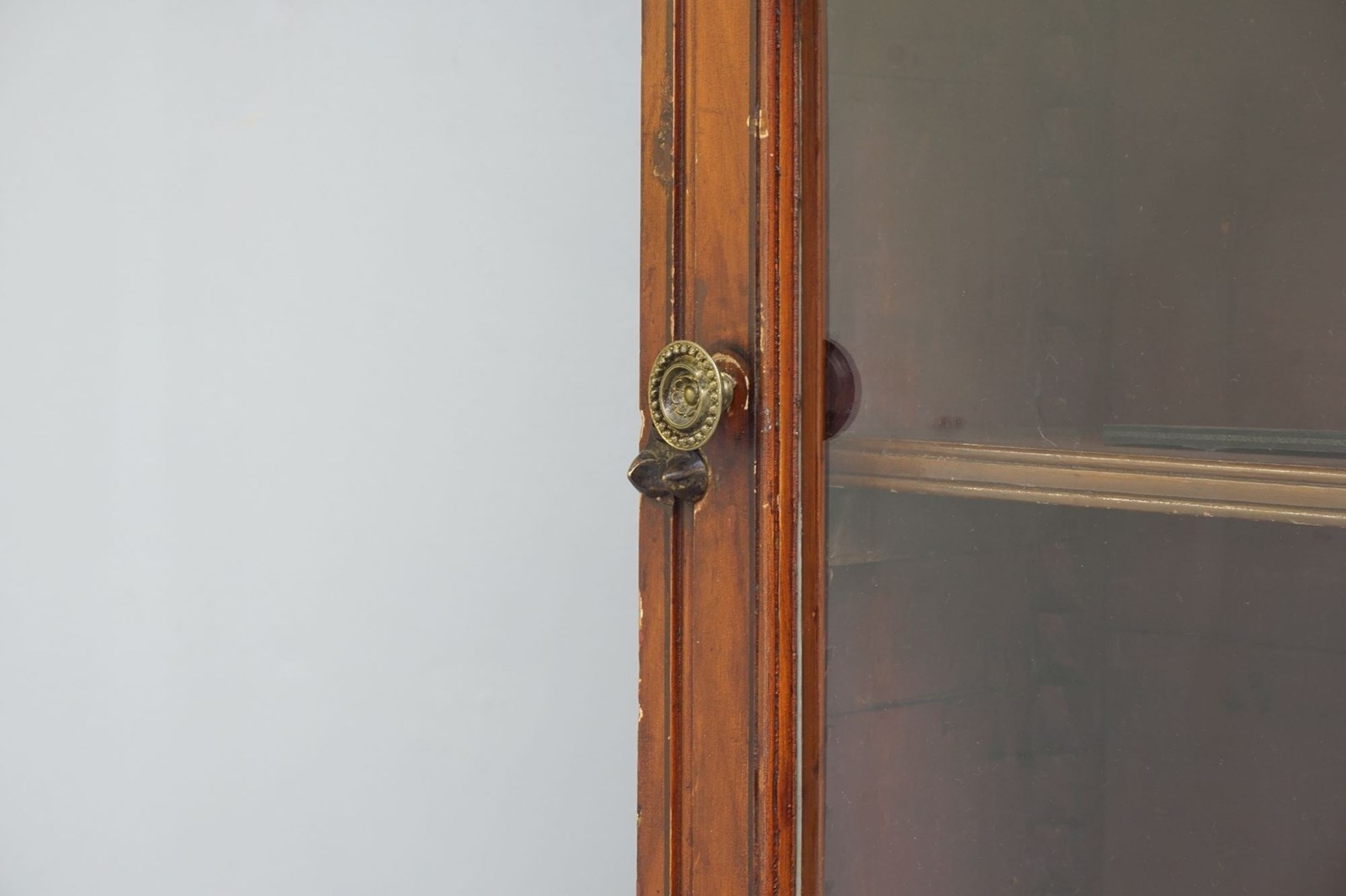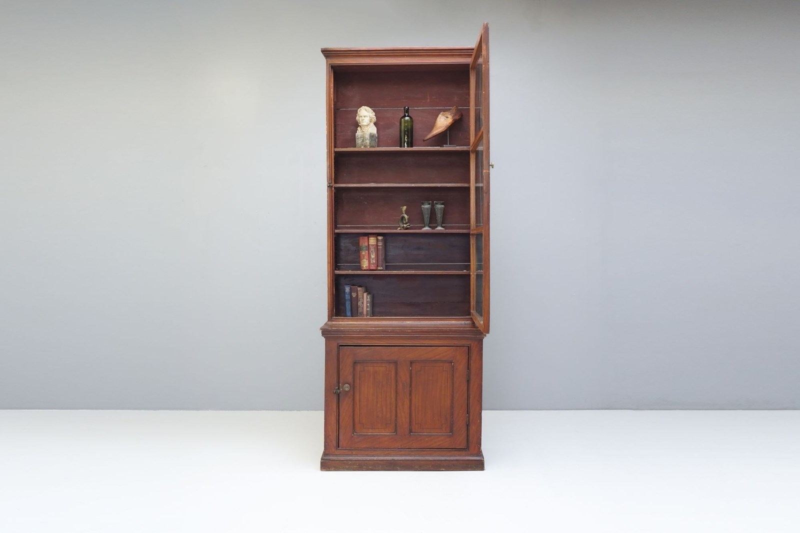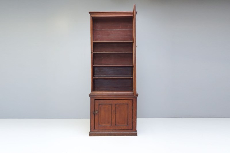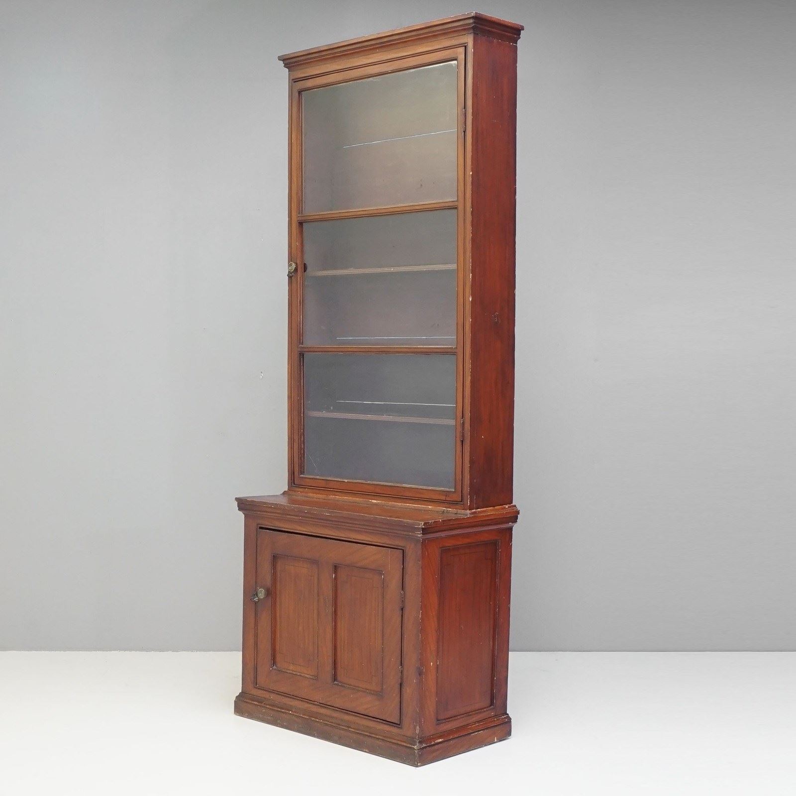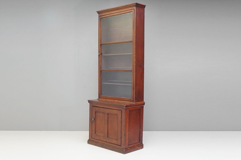 Cupboard base with single door glazed bookcase top in original paint finish.