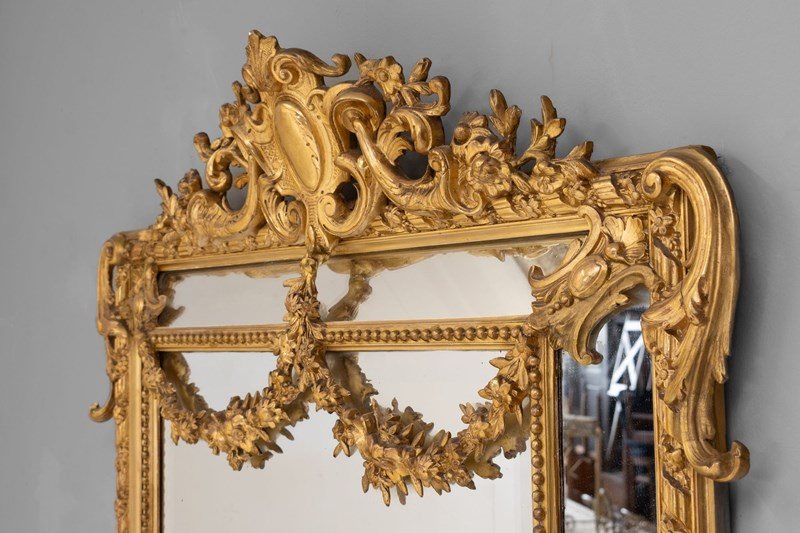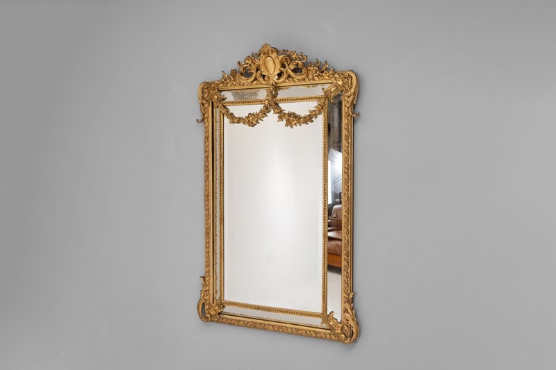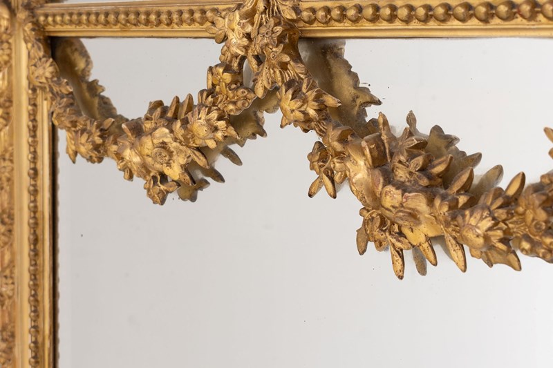 Cushion mirror with gilded frame and swag decoration. France circa 1890.