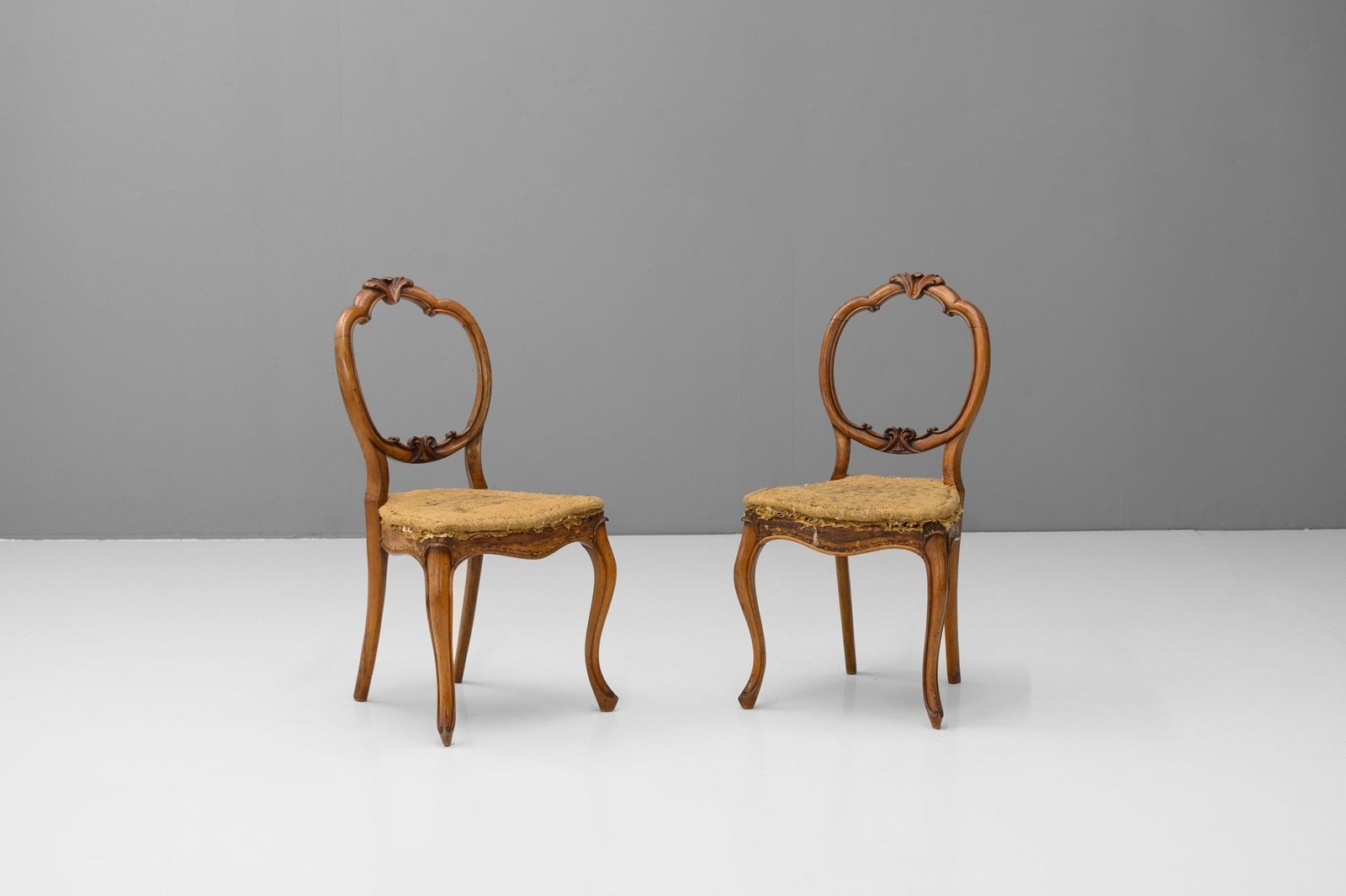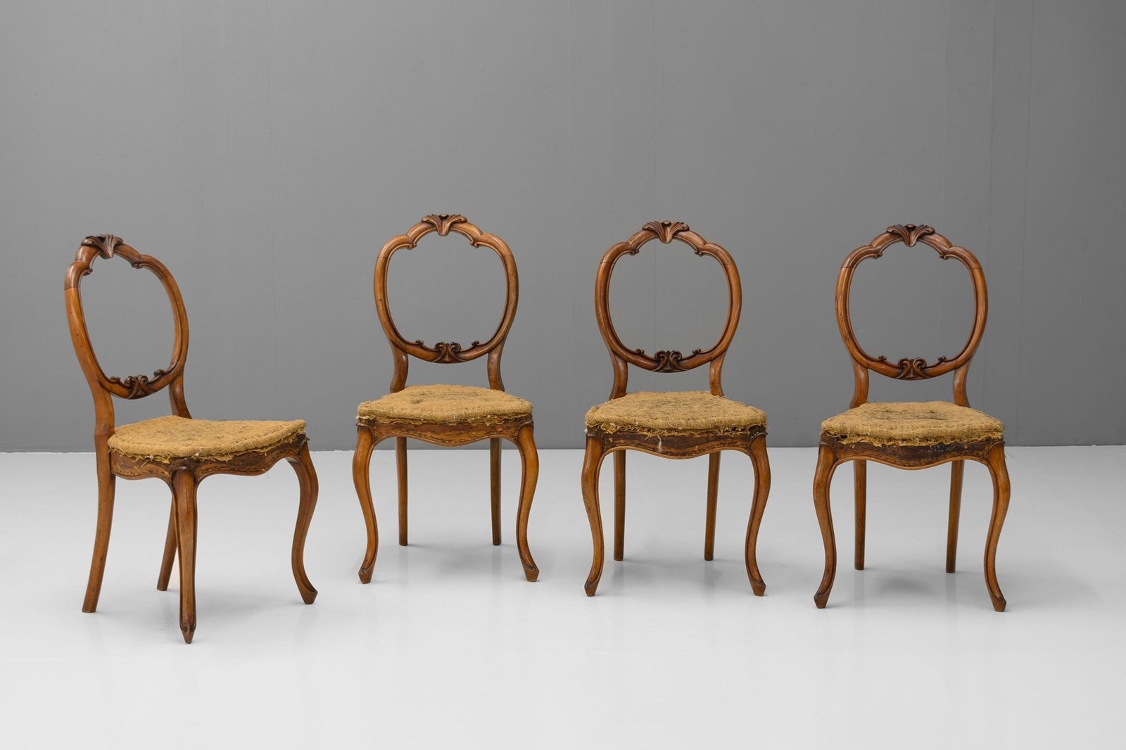 Four walnut side chairs on cabriole legs. Circa 1880.