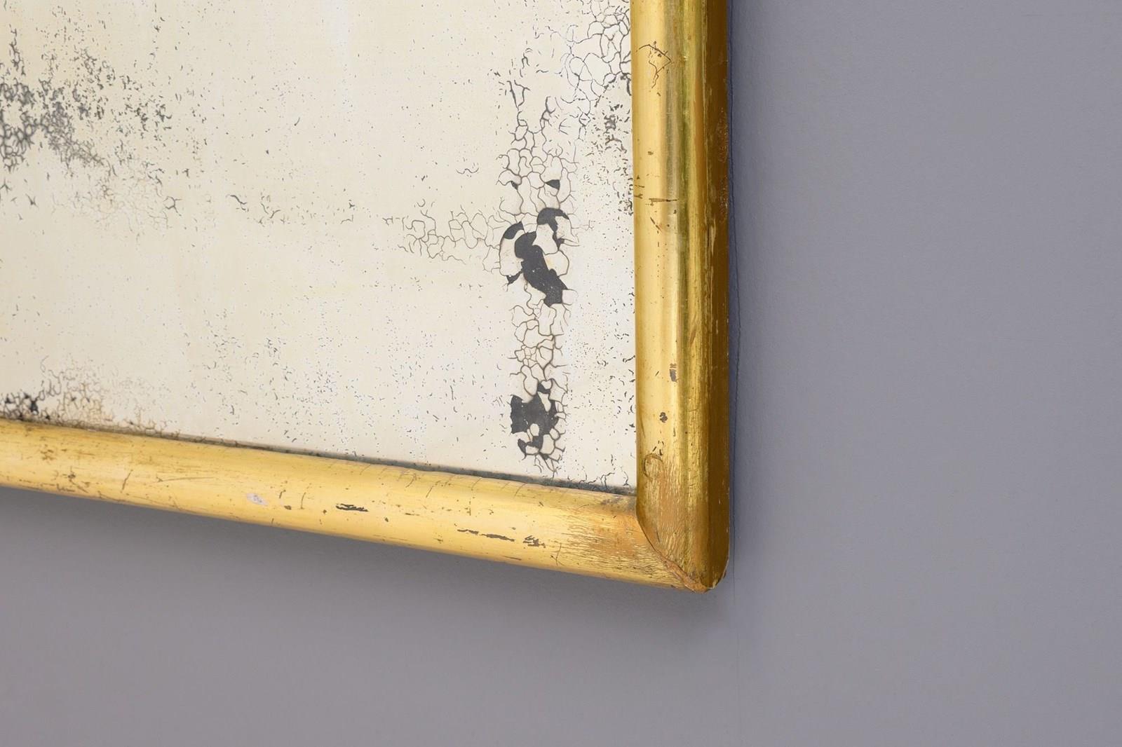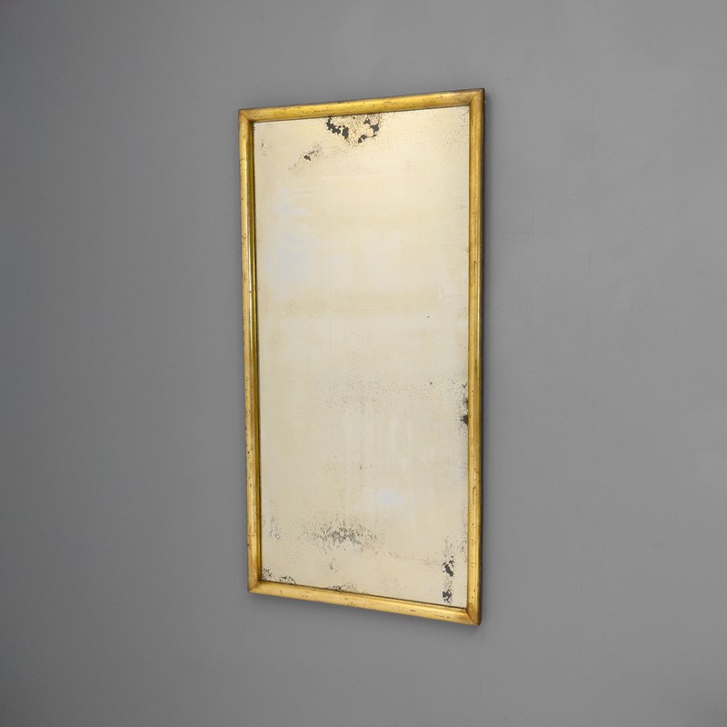 French bistro mirror with gilded beaded frame and original foxed glass mirror plate ( 2 x scratches to glass ).