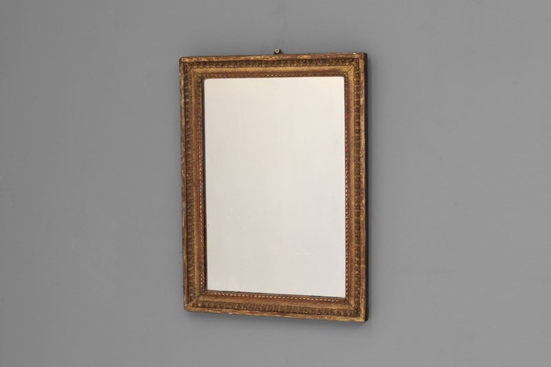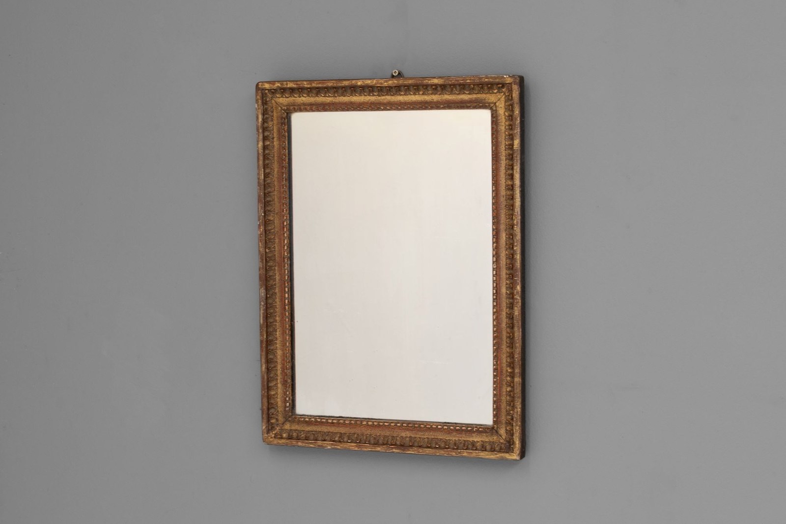 Small rectangular portrait / landscape mirror with aged mirror plate. Circa 1870.