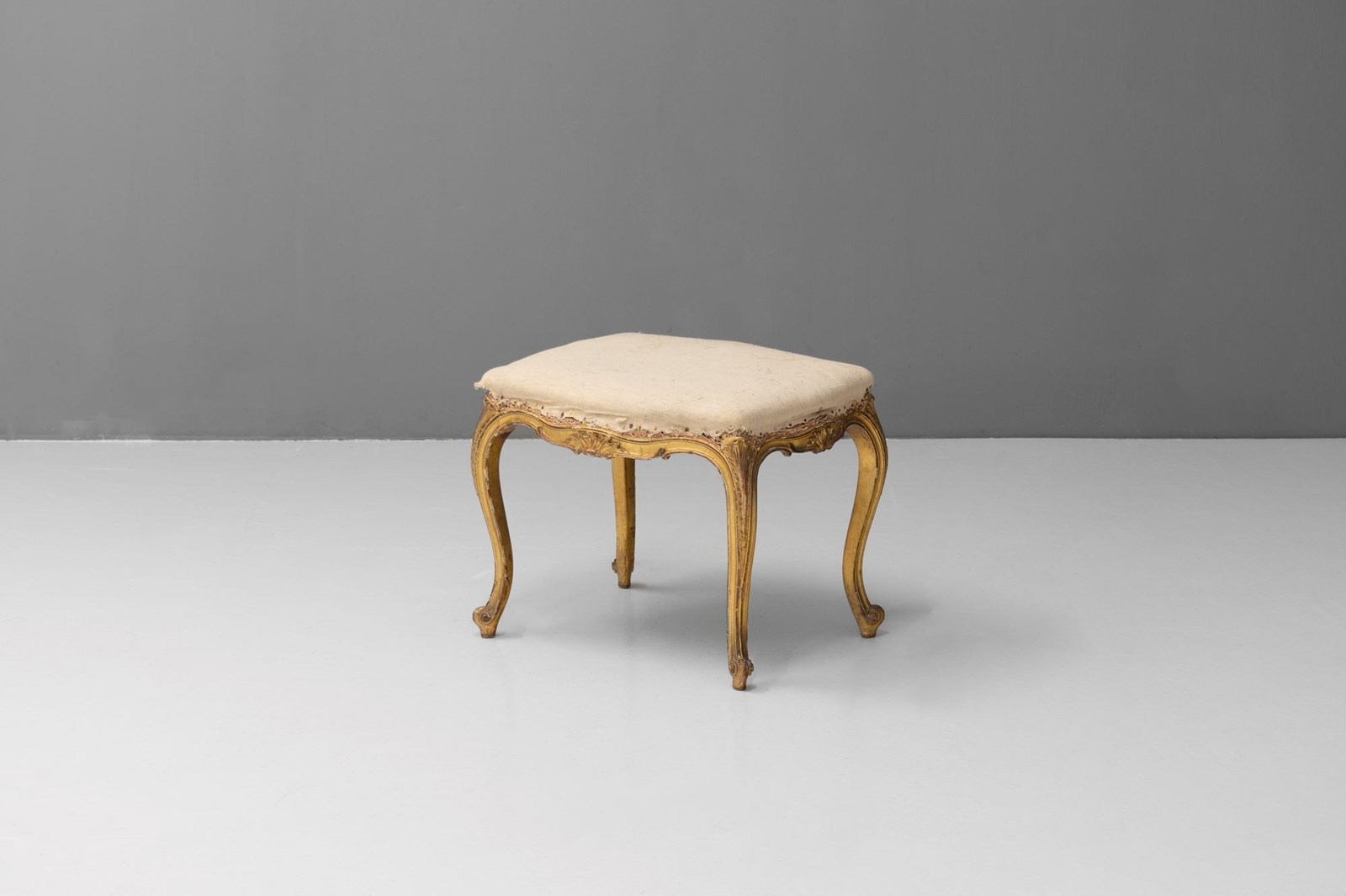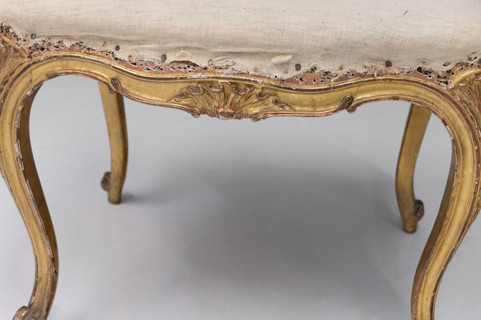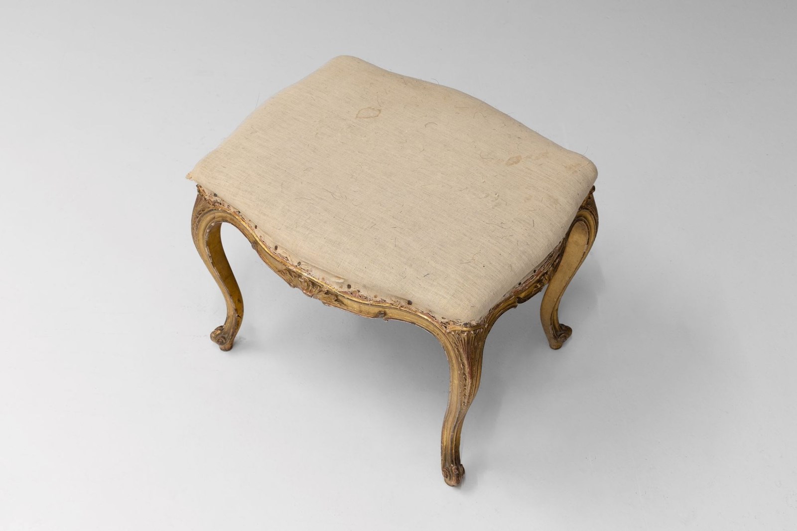 Cabriole leg French stool with original gilded finish. Circa 1880