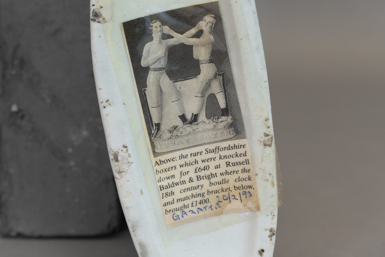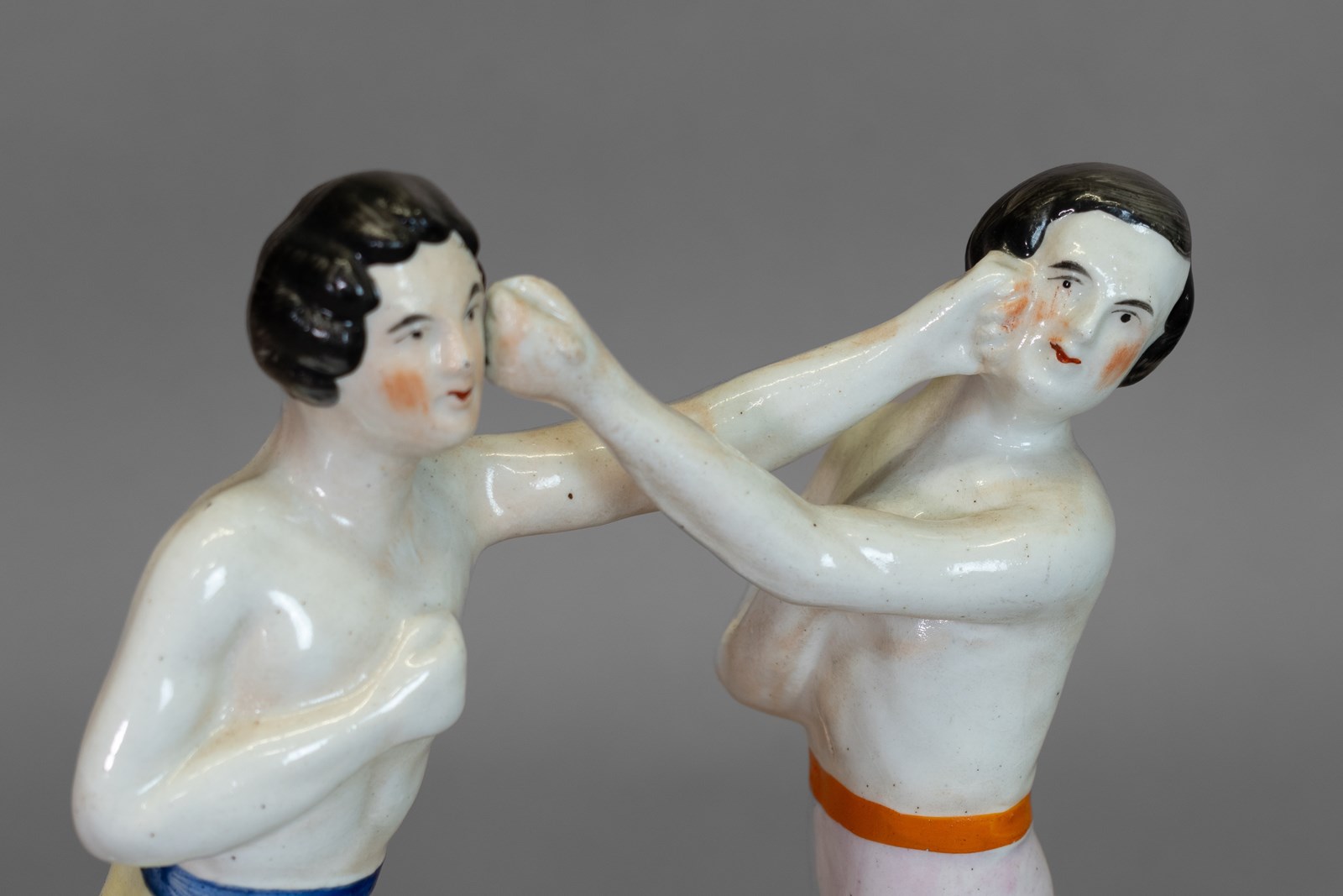 19th-century ceramic Staffordshire figure "The Boxers", depicting the famous bare-knuckle boxing match between American John Heenan and English champion Tom Sayers. Circa 1860.