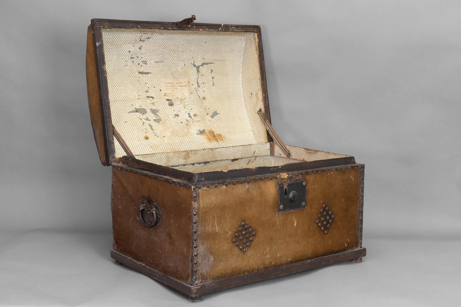 Hide covered dome topped trunk. Manufactured by Alfred T. Morris. Circa 1890.