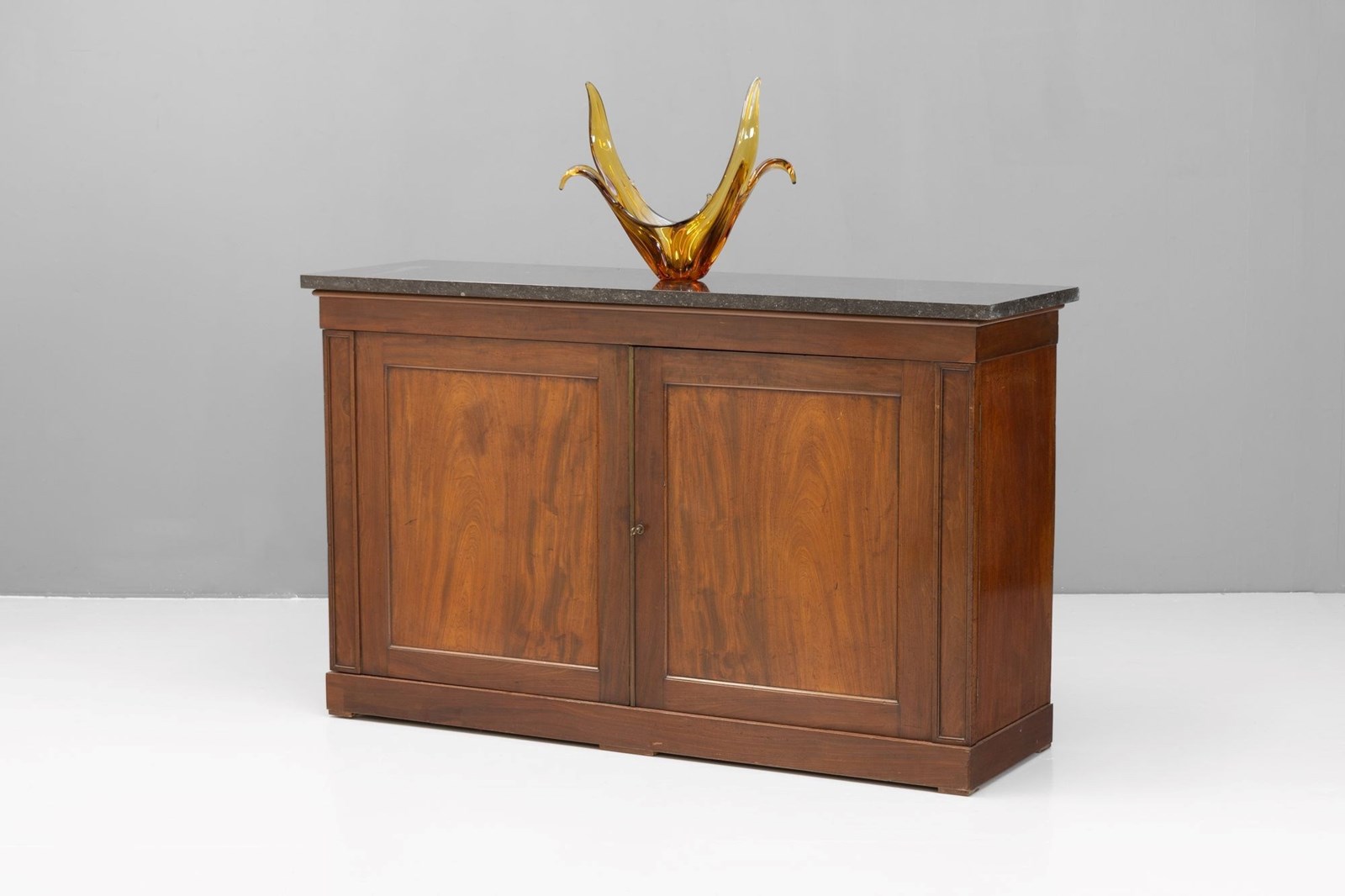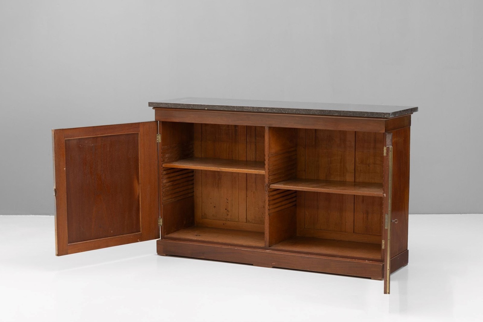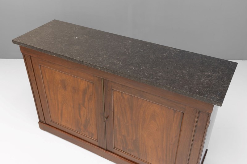 Two door mahogany cupboard base with adjustable shelves and granite top. Circa 1840.