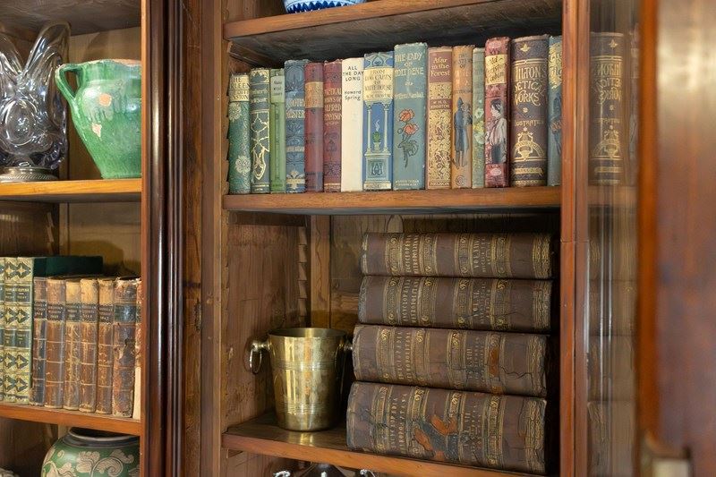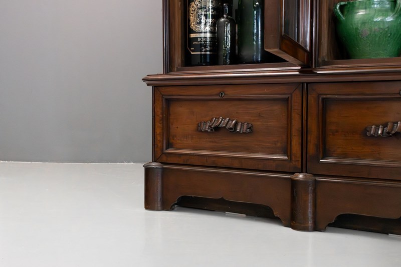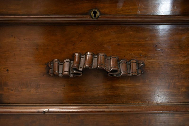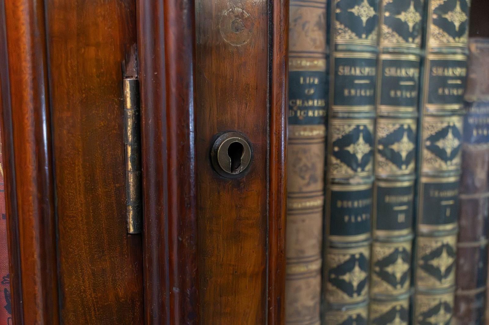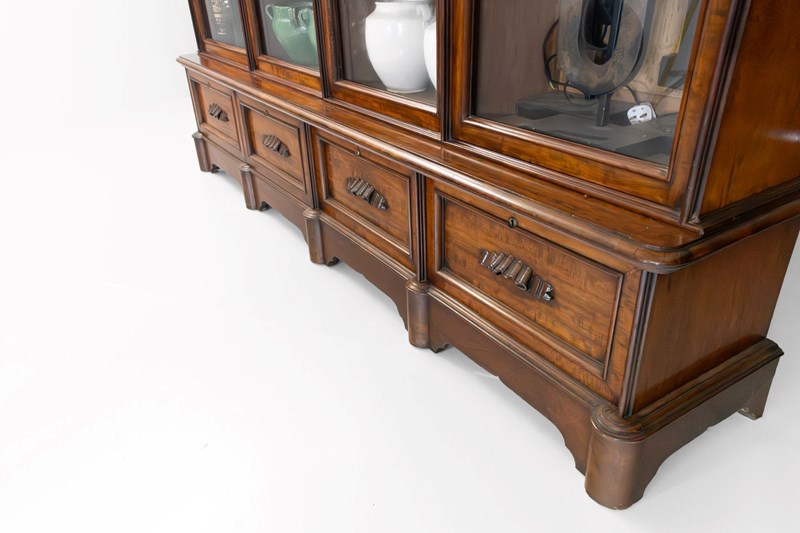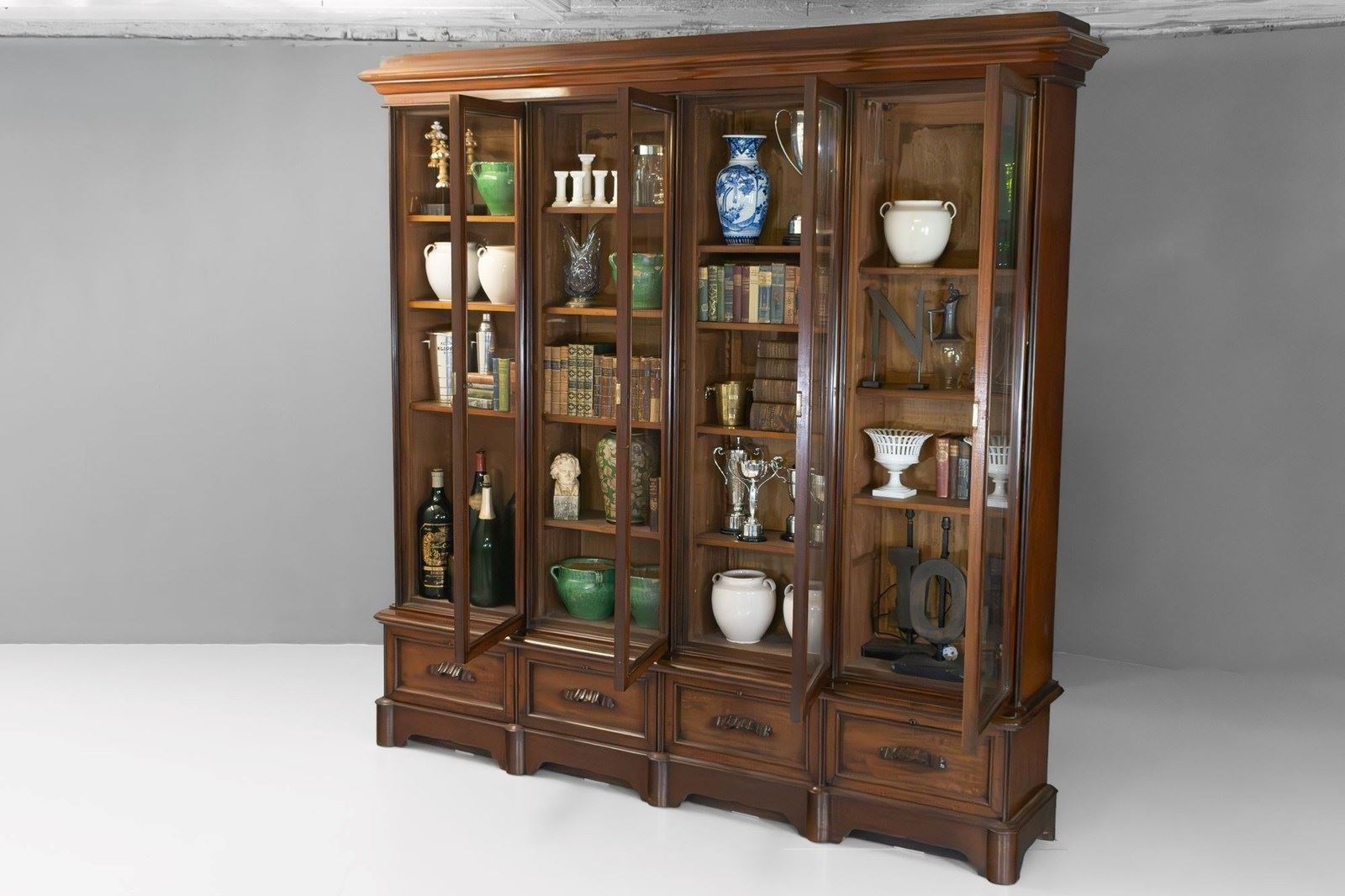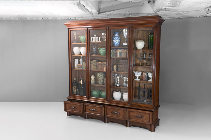 Four door mahogany library bookcase on four drawer base. Circa 1870.