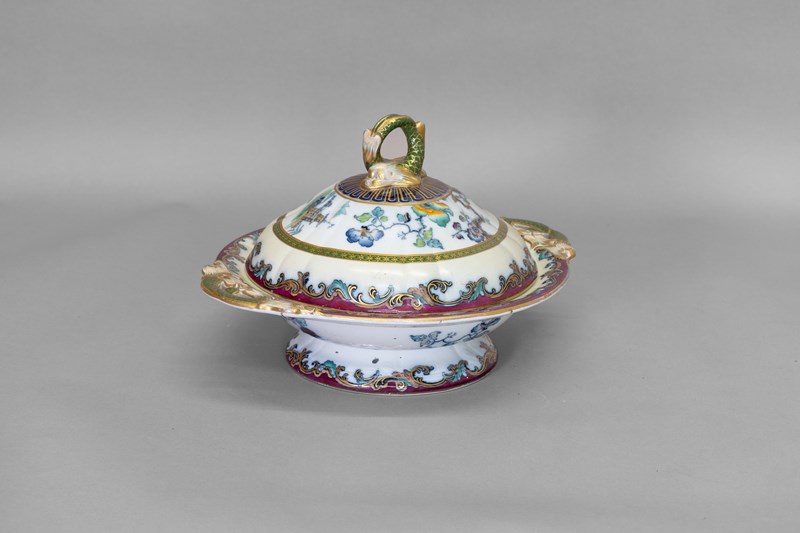 Ironstone dish and cover in Indian Tree pattern. Circa 1860