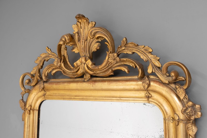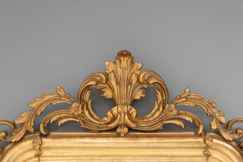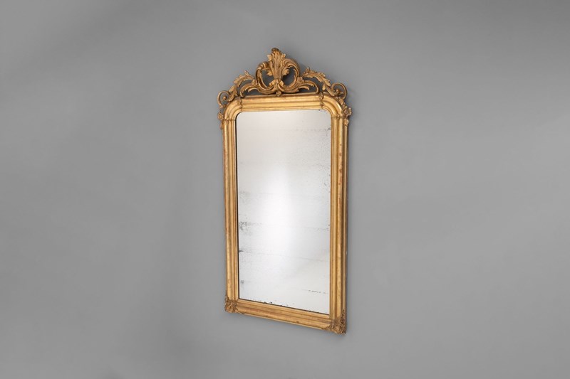 Large Louis Philipe style mirror with crested top and original plate. France circa 1870.