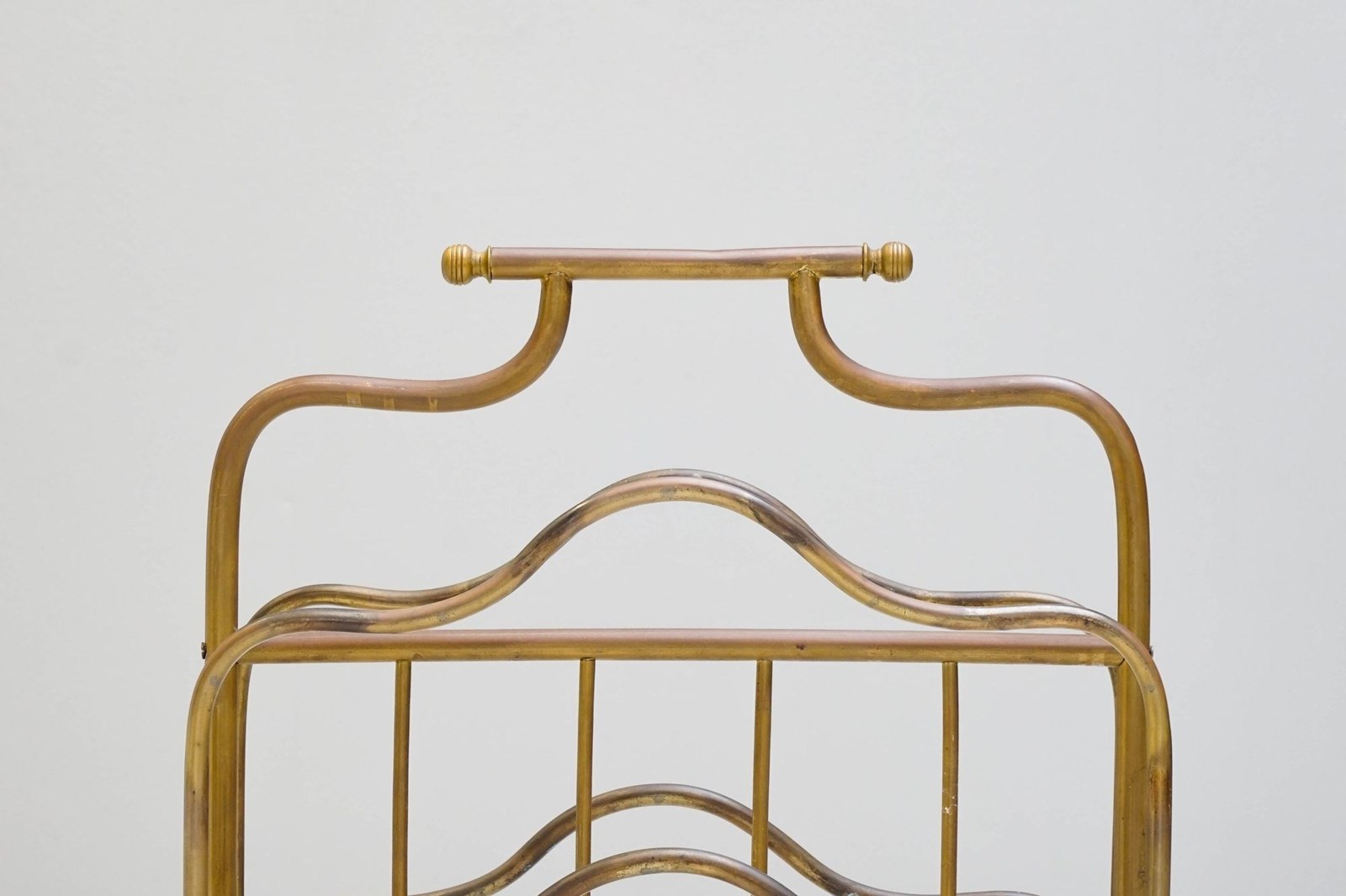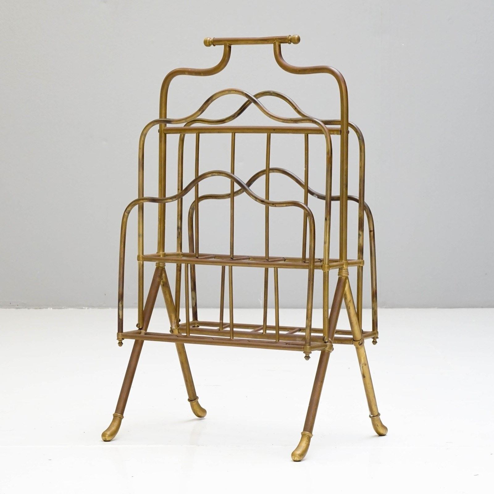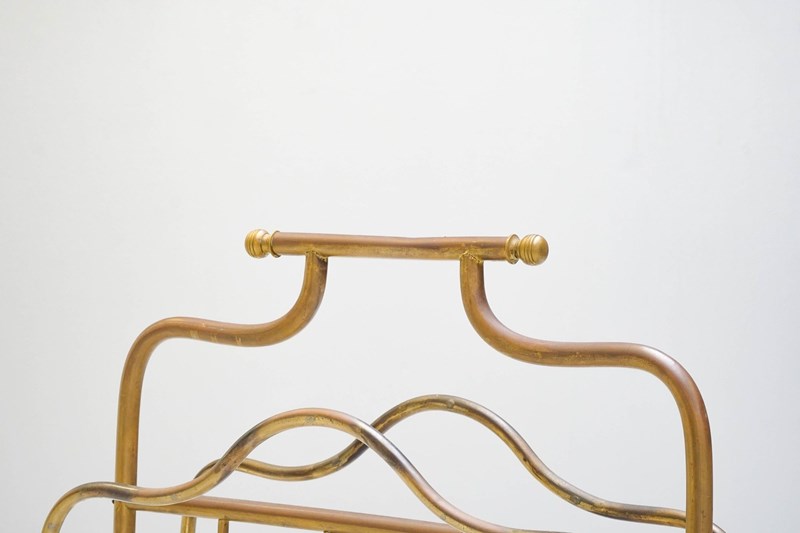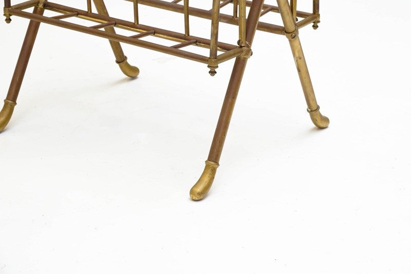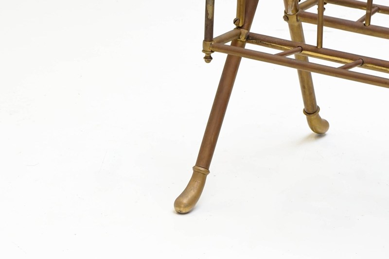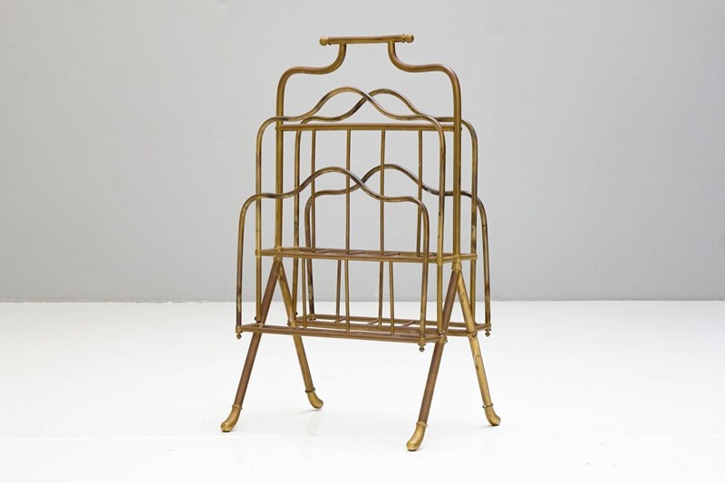Floor standing brass magazine rack.