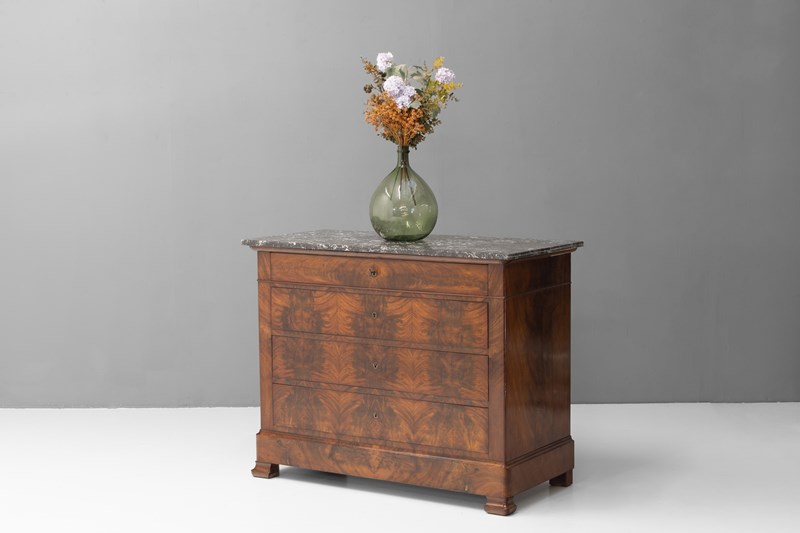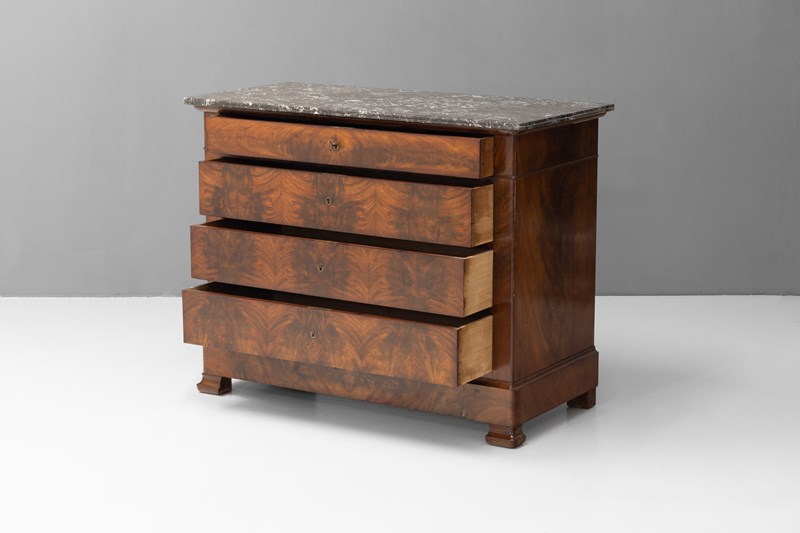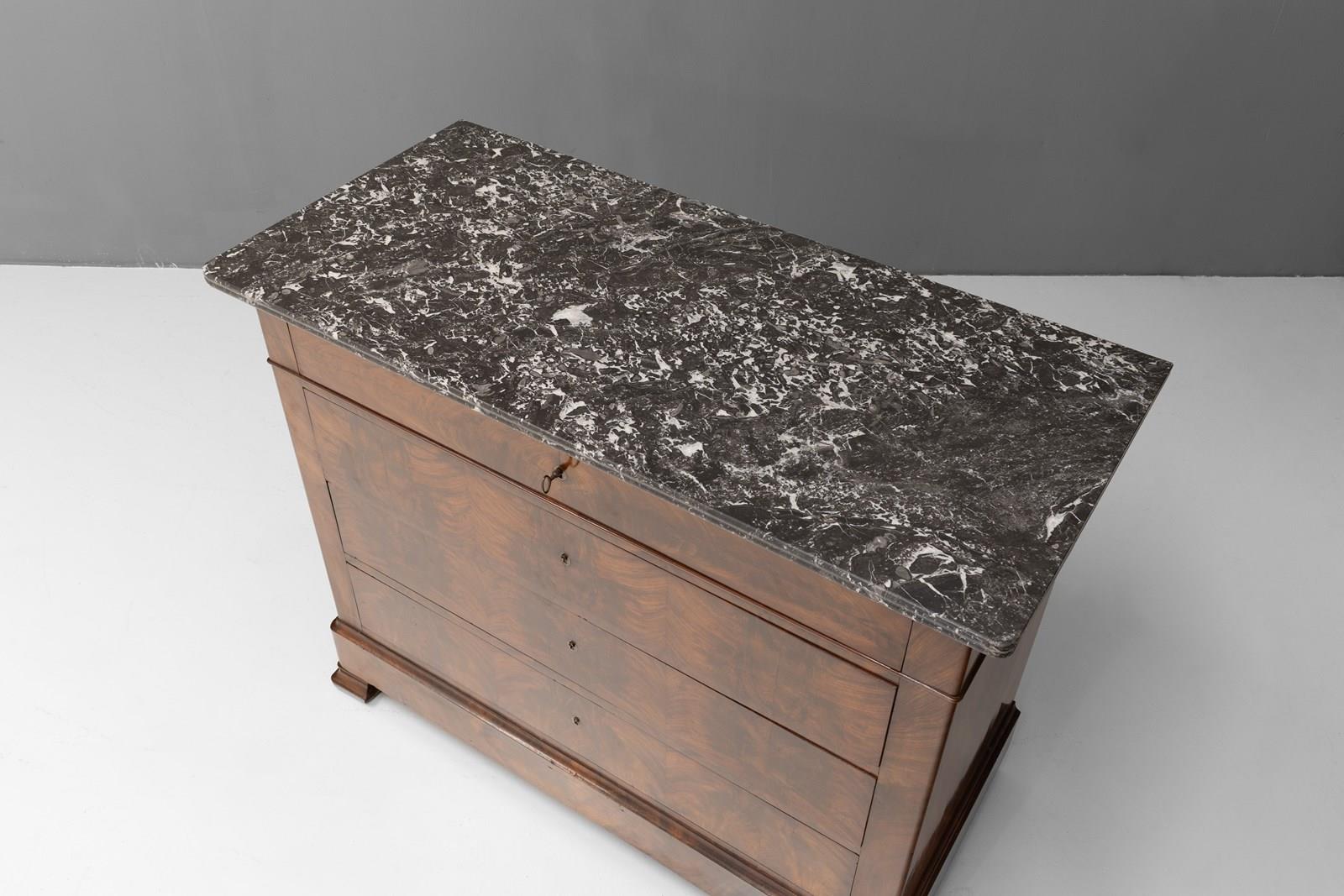 Mahogany Louis Philipe style French commode with marble top. Circa 1880.